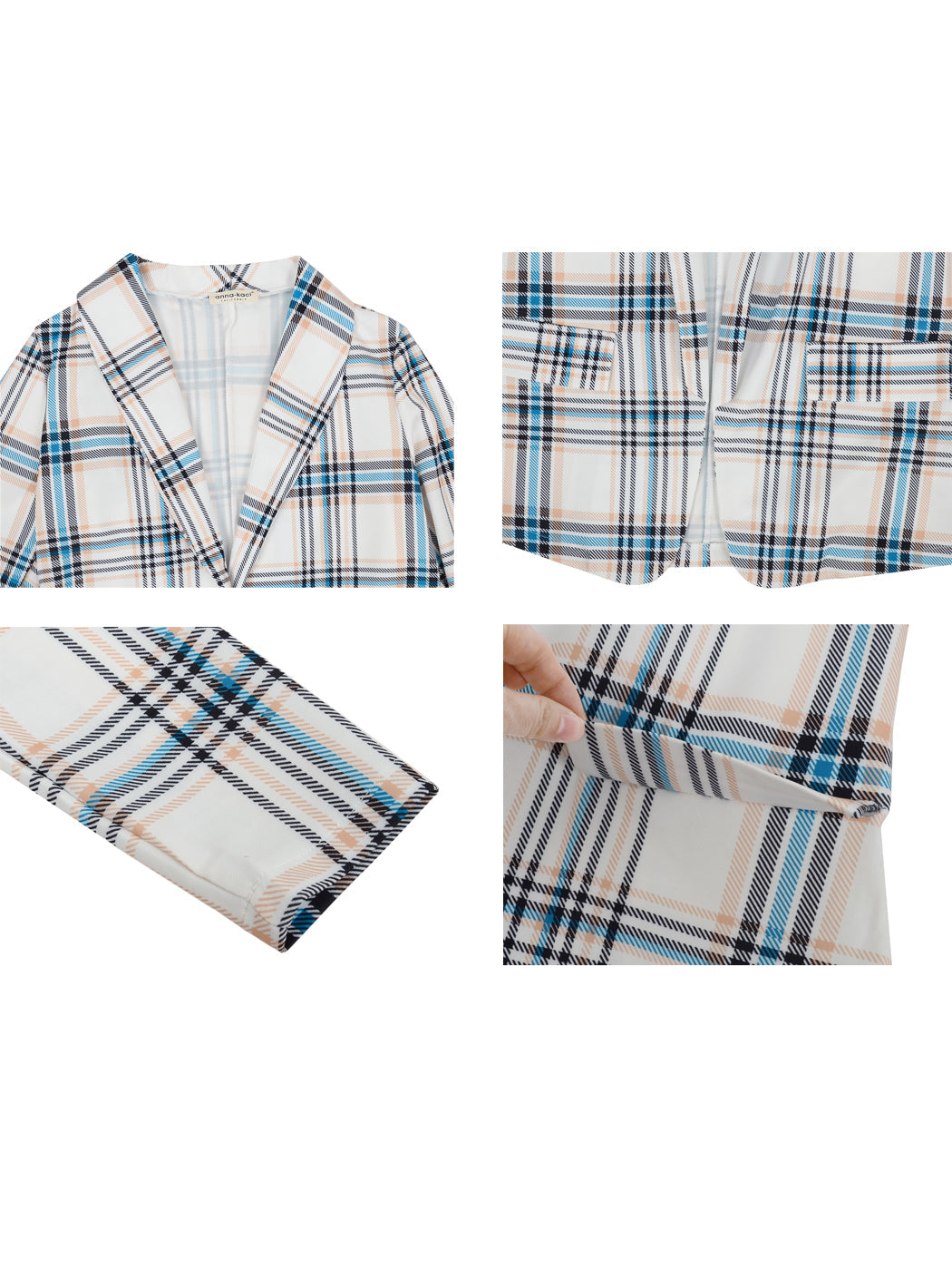 Anna-Kaci Women's Open Front Plaid Blazer Coat Jacket Long Sleeve Mock Front Pockets Formal Work Attire