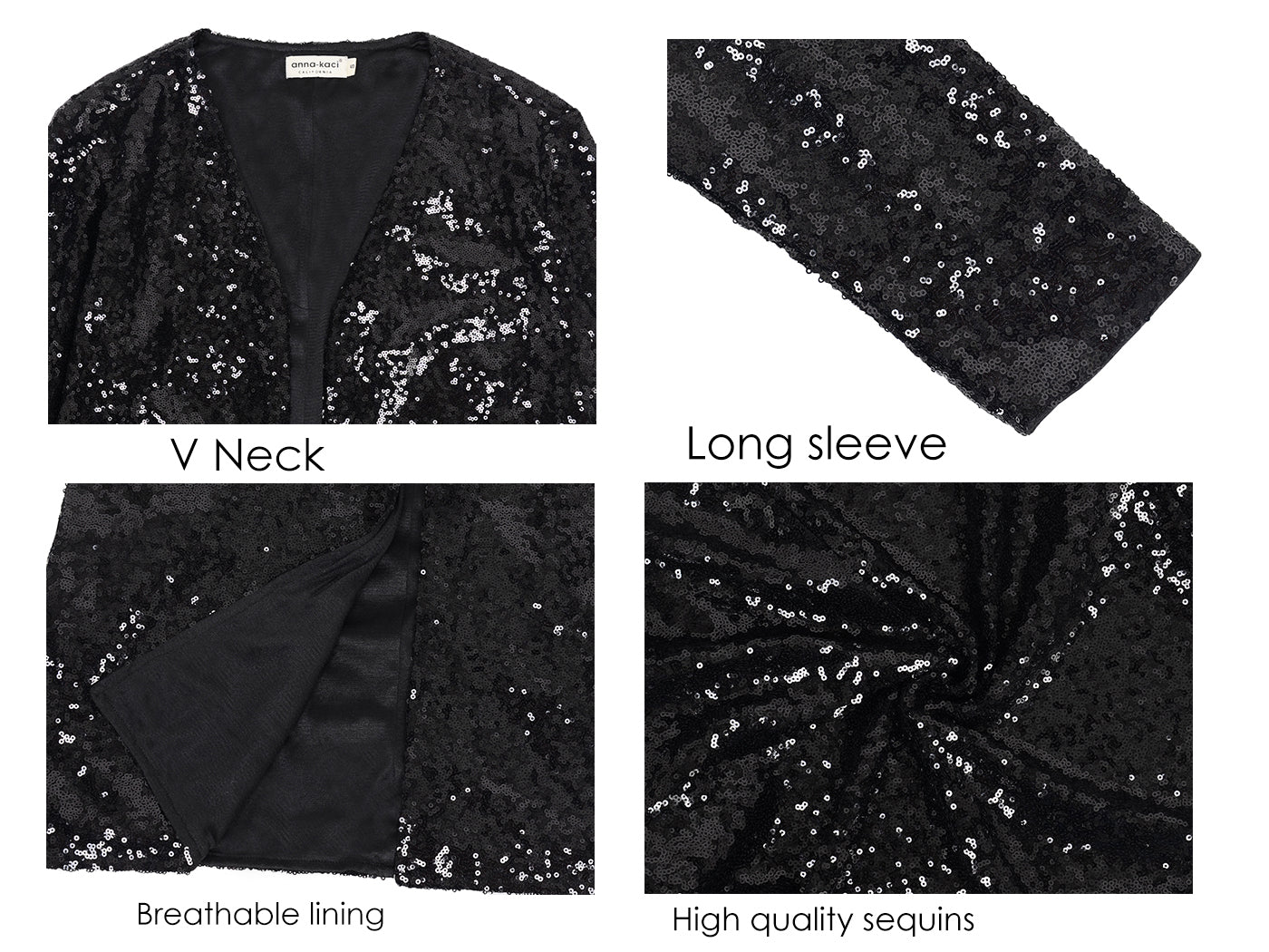 Anna-Kaci Women's Sequin Jacket Open Front Coat Blazer Party Cocktail Outerwear Cardigan