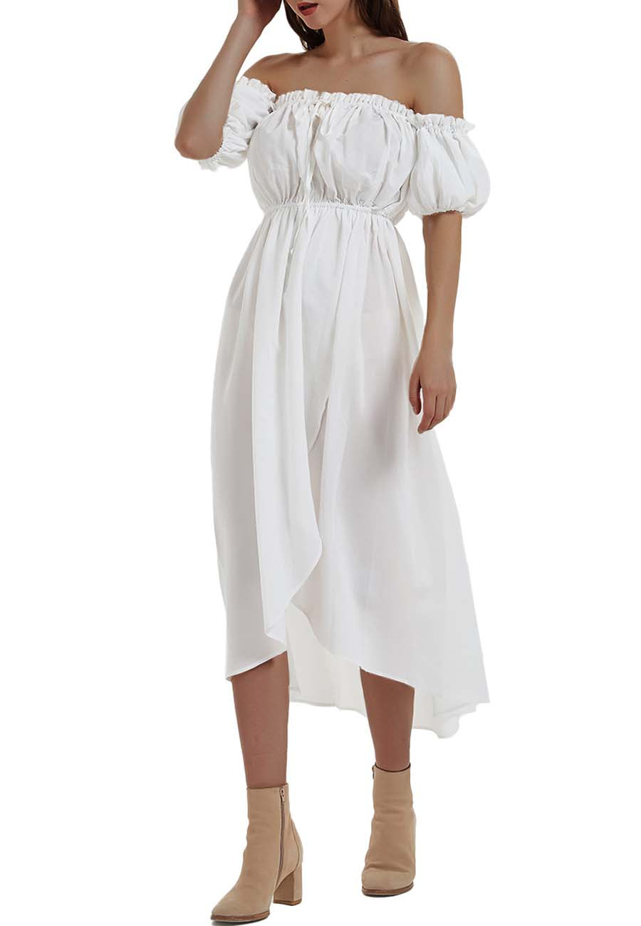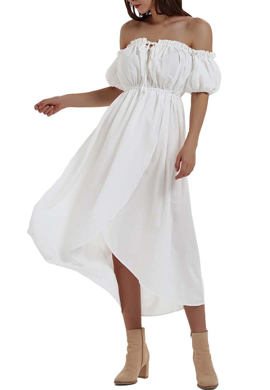 Anna-Kaci Women White Summer Fall Renaissance Dresses Casual Boho Lantern Sleeve Off Shoulder Fairy Long Dress