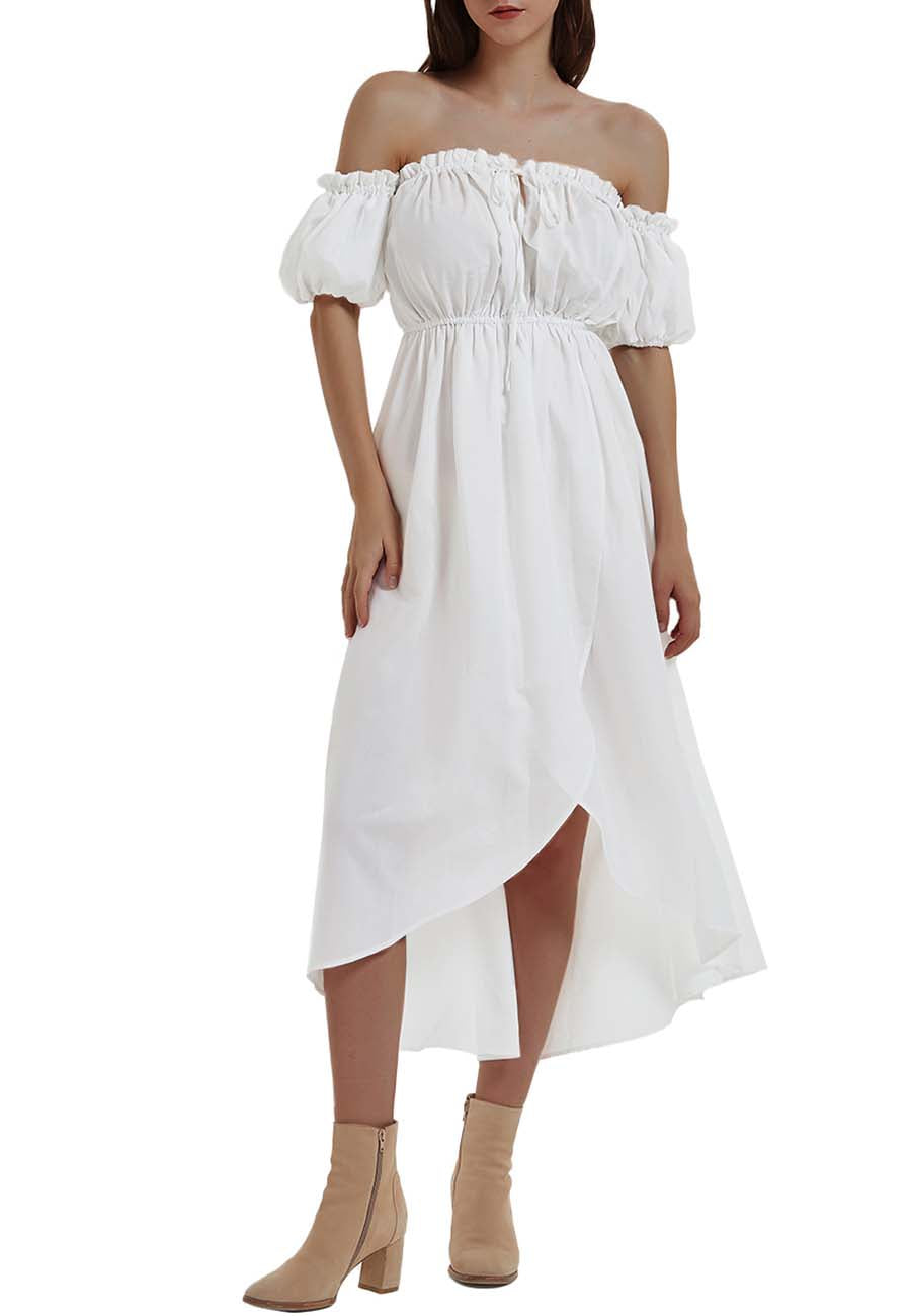 - Anna-Kaci Women White Summer Fall Renaissance Dresses Casual Boho Lantern Sleeve Off Shoulder Fairy Long Dress.Located in beautiful California, Anna-Kaci is a trendy modern fashion company dedicated to bringing high quality apparel to women at an affordable price.