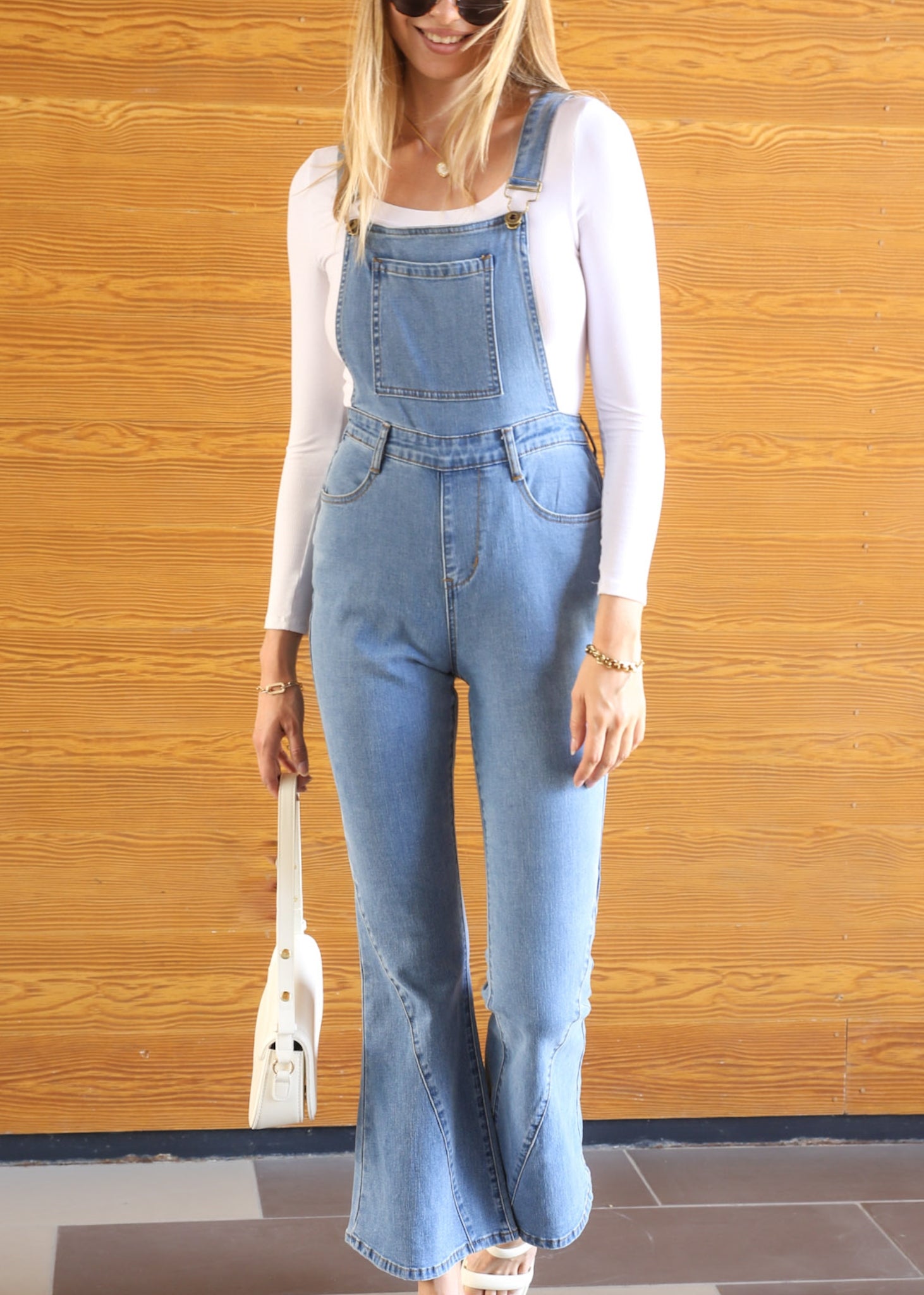 - Elevate your denim game with our Women's Flare Overalls Jumpsuits. These fashion denim jumpsuit overalls are the perfect combination of style and comfort.