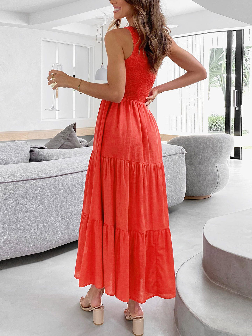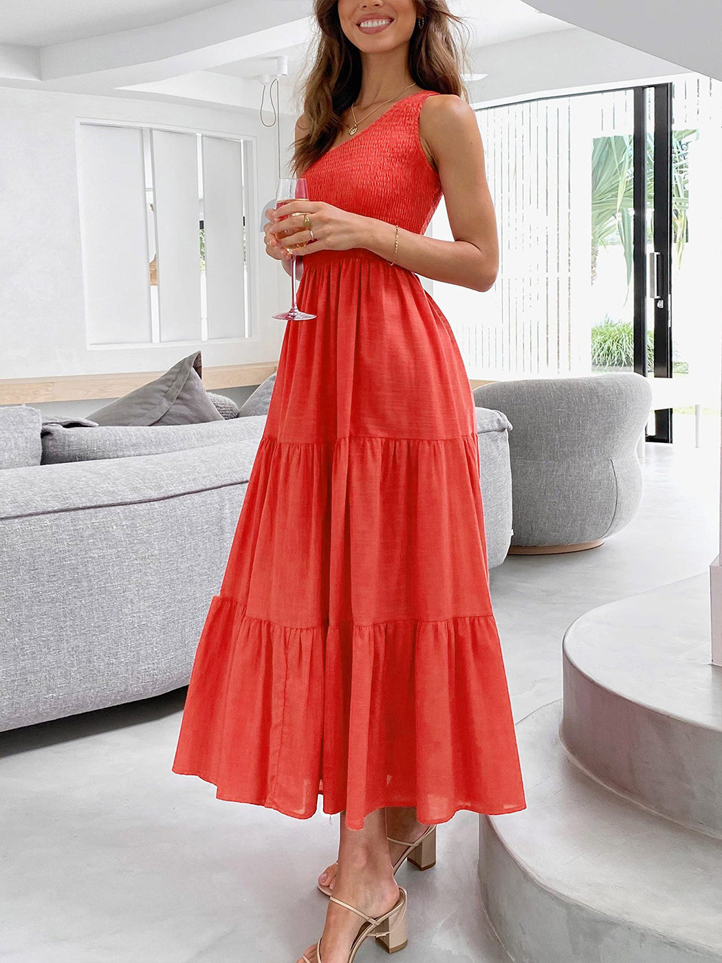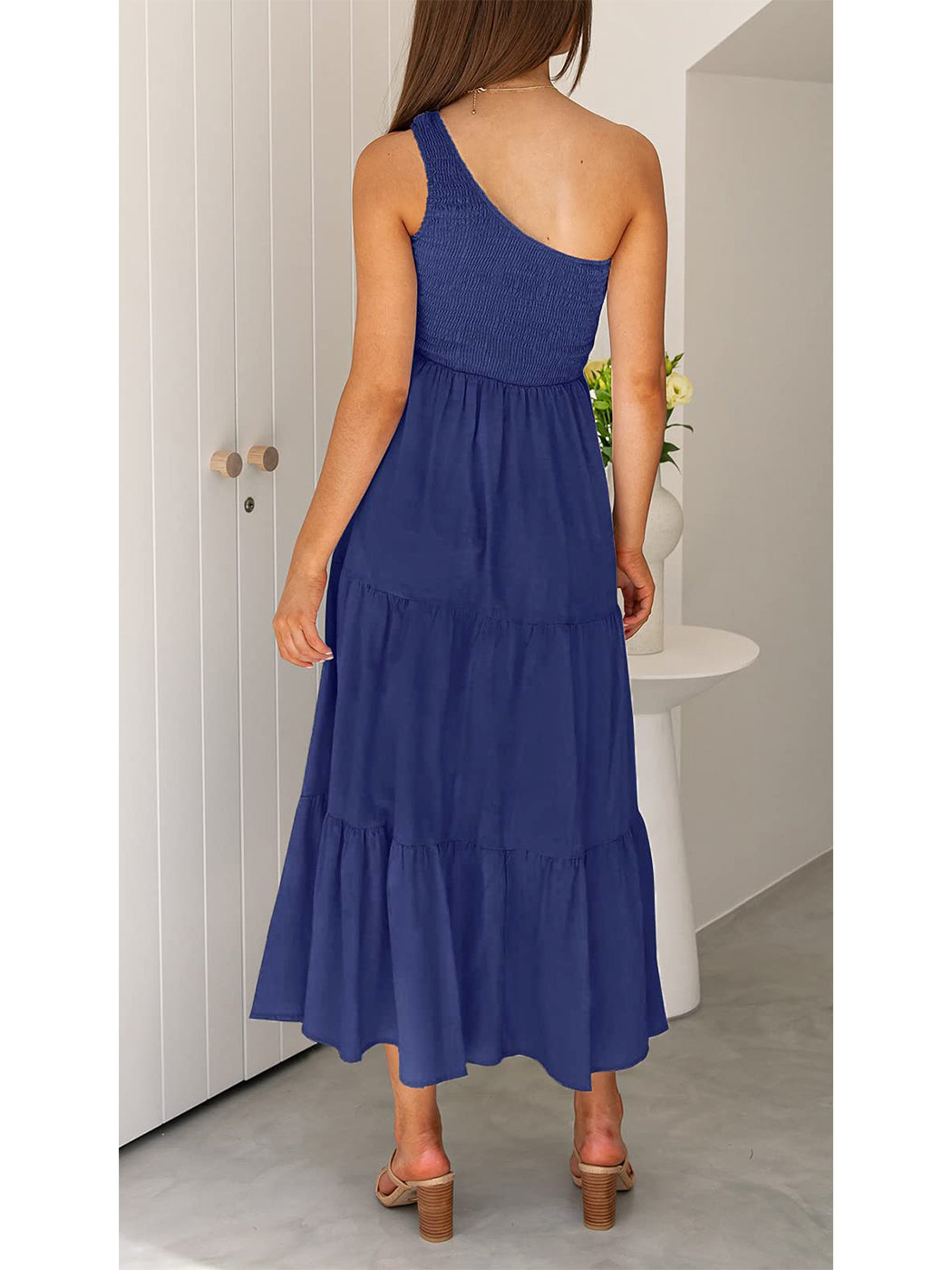 Anna-Kaci Women Boho Summer One Shoulder Sleeveless Smocked Flowy Tiered Beach Party Maxi Dress