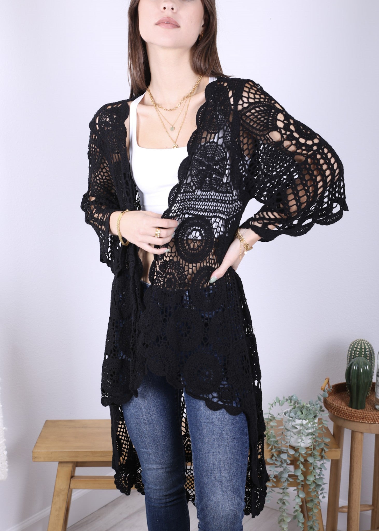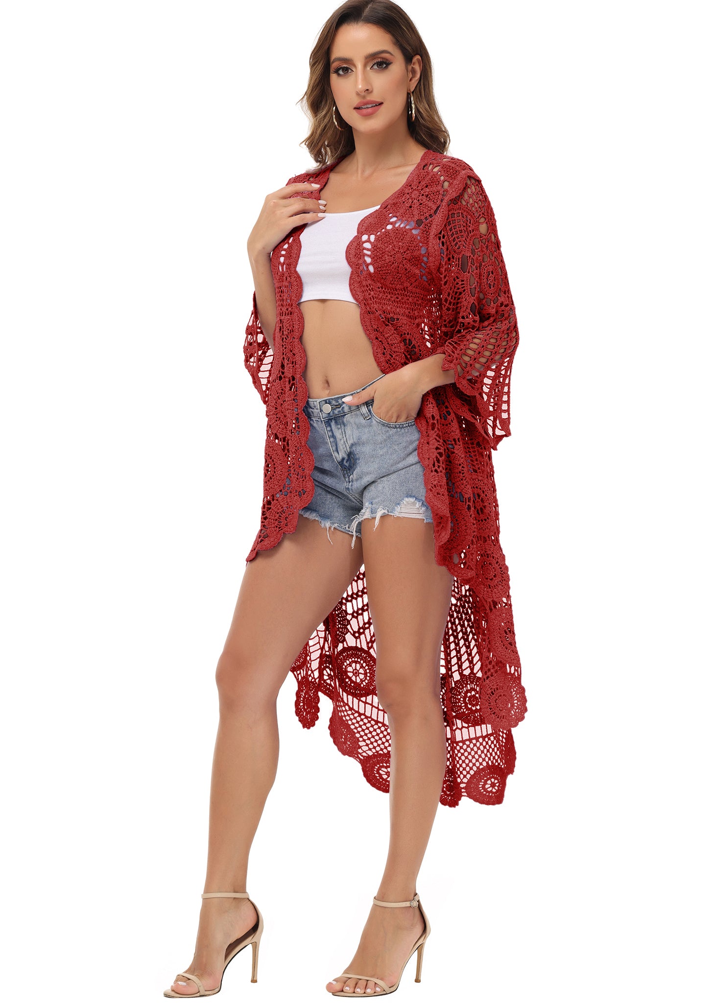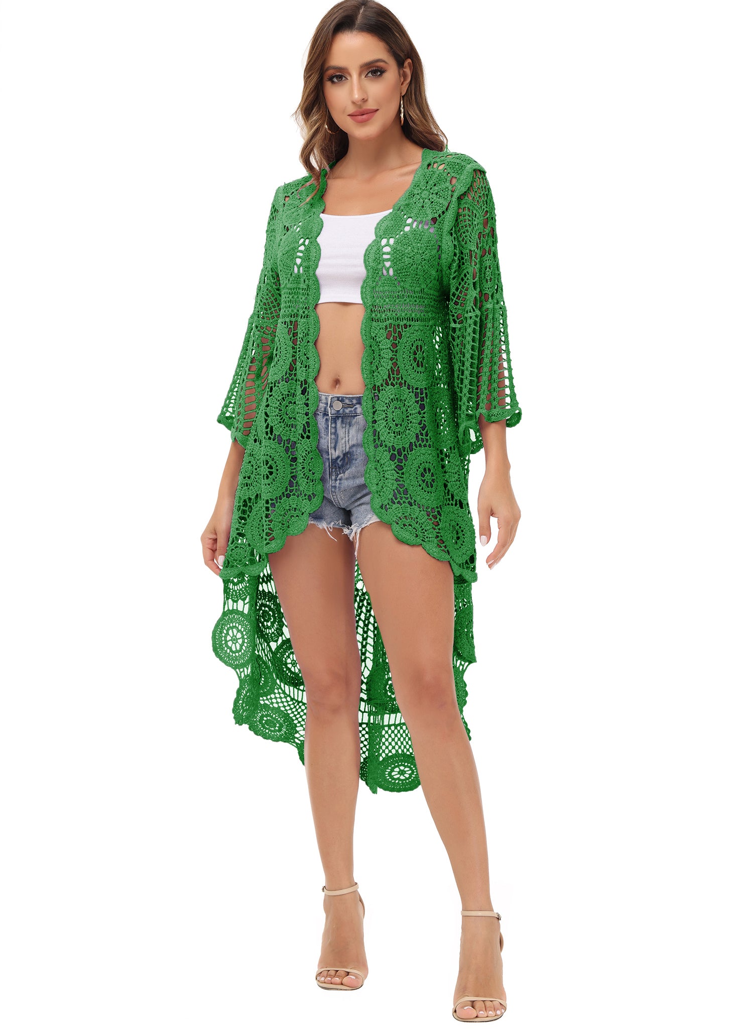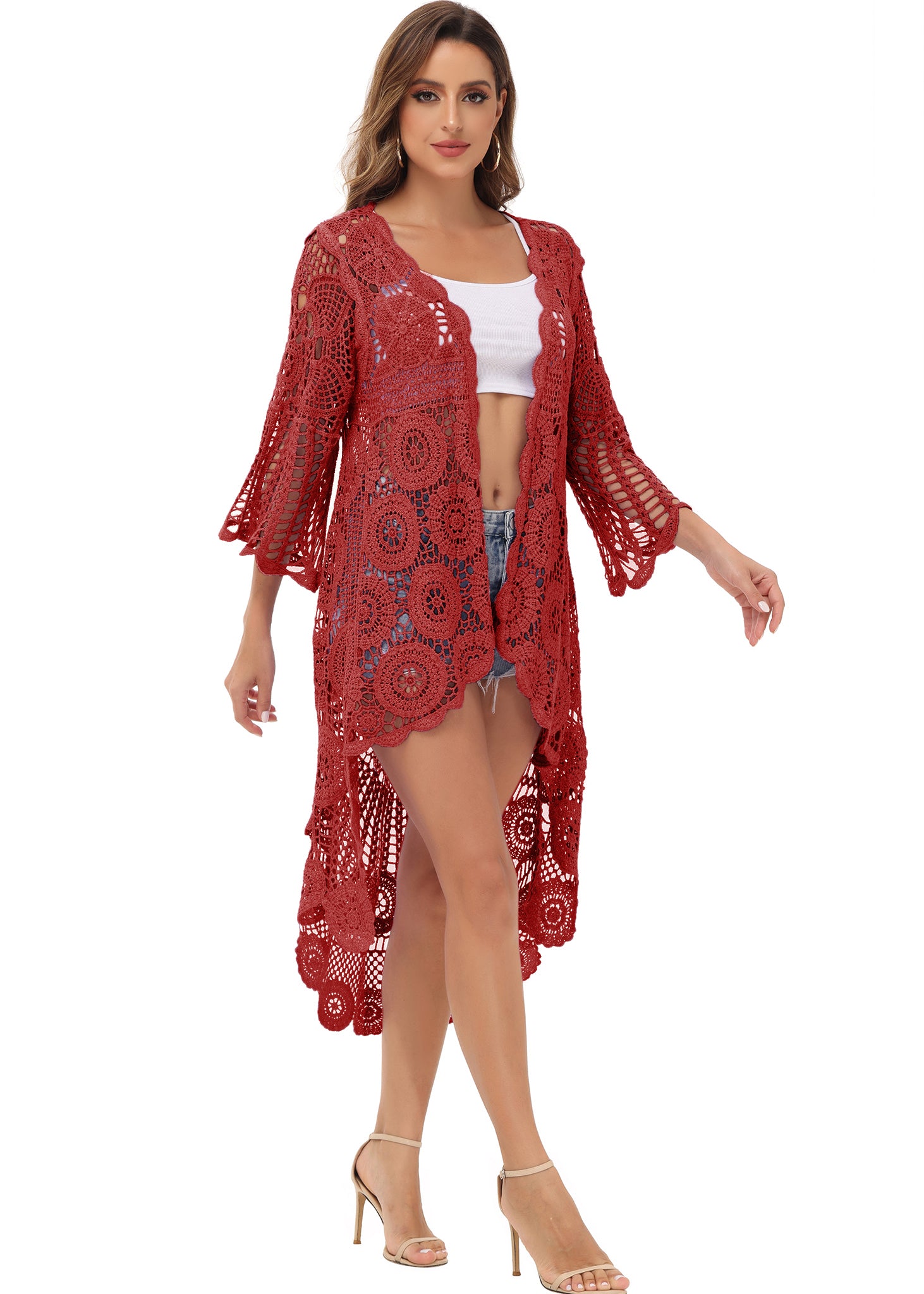 - UNIQUE DESIGN -- Lightweight open front short sleeve cover up cardigan featuring cut out flower lace design.This bohemian, floral detailed style cardigan featuring an asymmetric hem design, large arm cutouts and loose oversized fit is flattering for all body types.