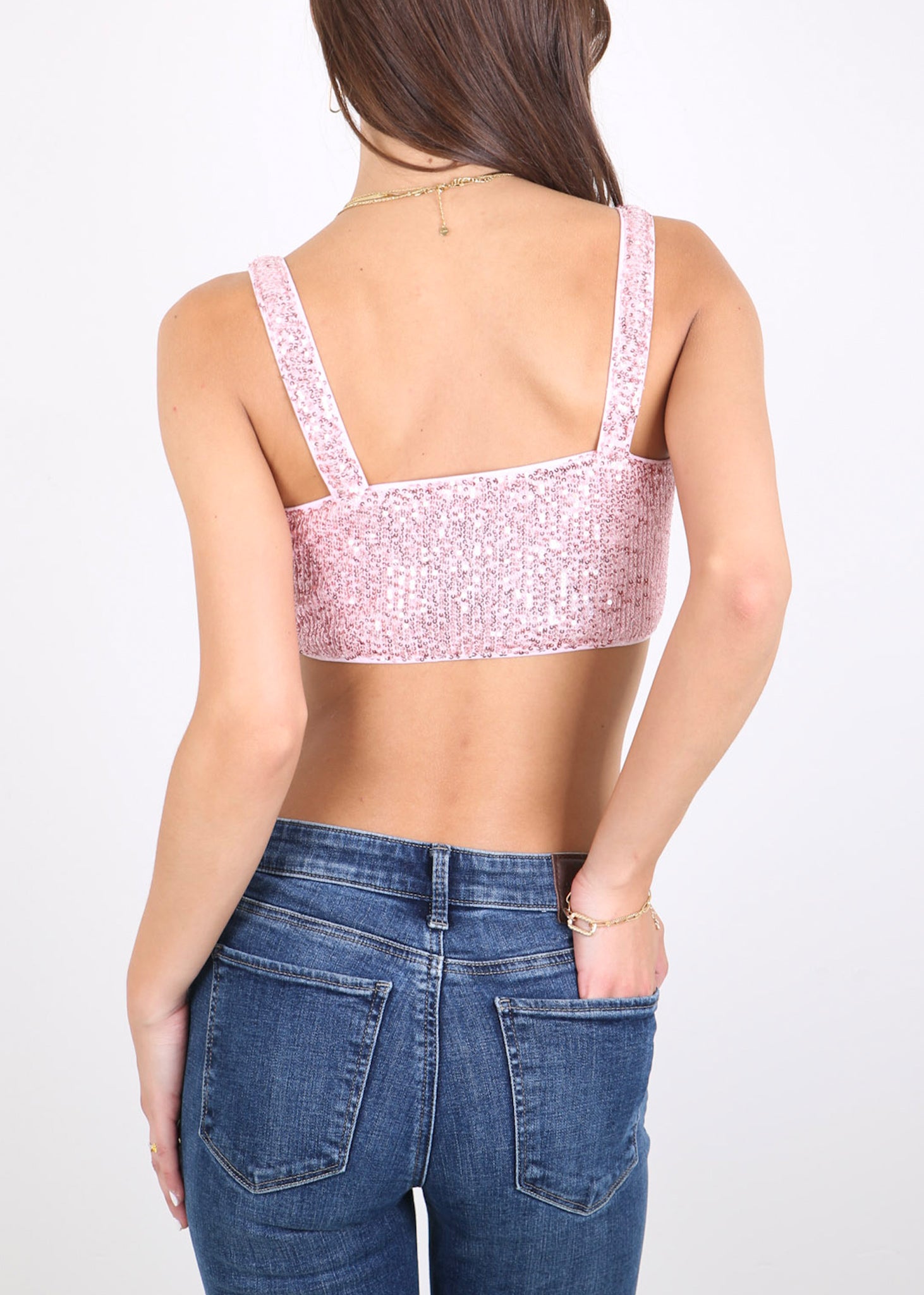 Anna-Kaci Women Stretchy Sequins Fashion Crop Top Square Neck Wide Strap Sparkling Party Tube Tops