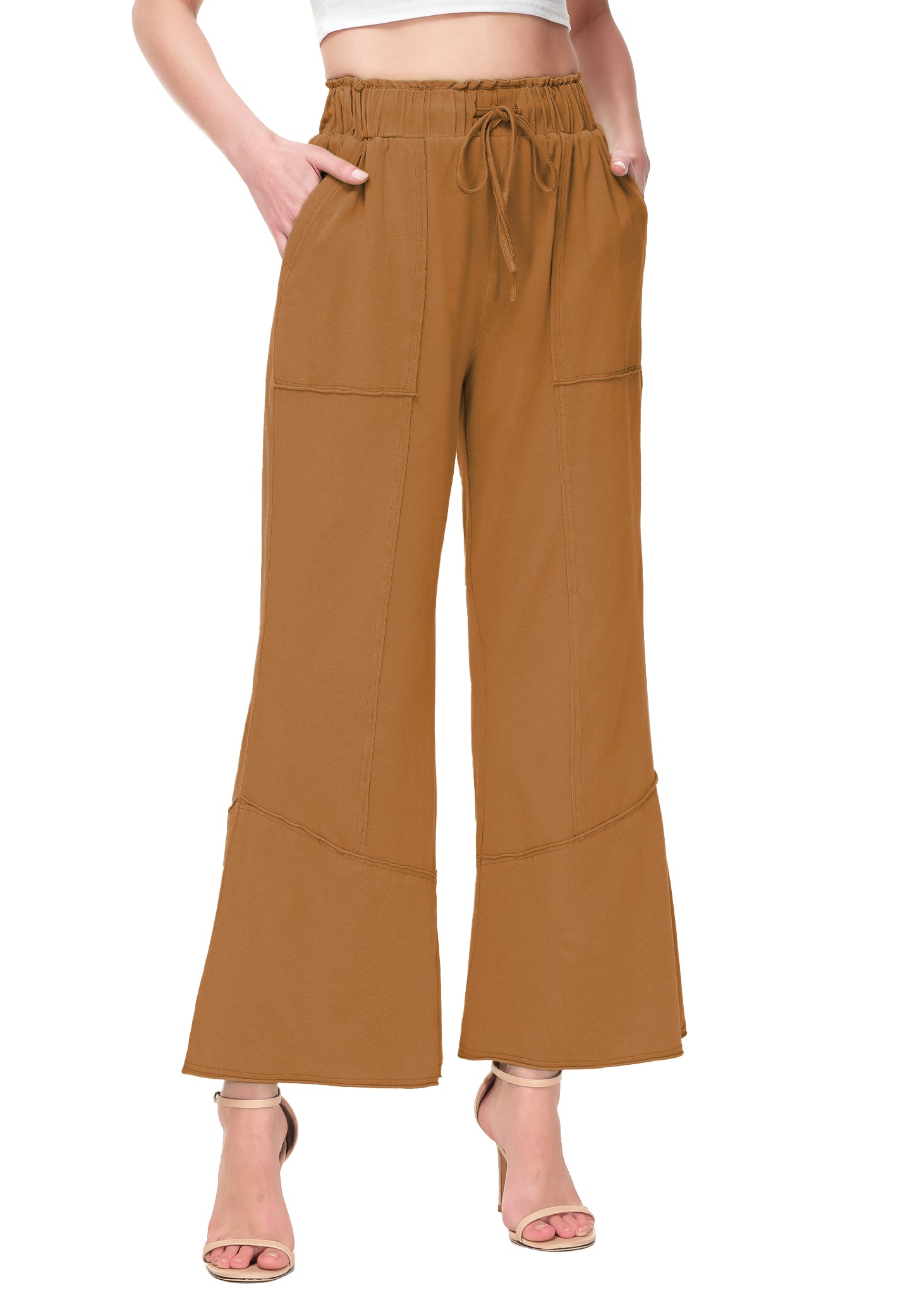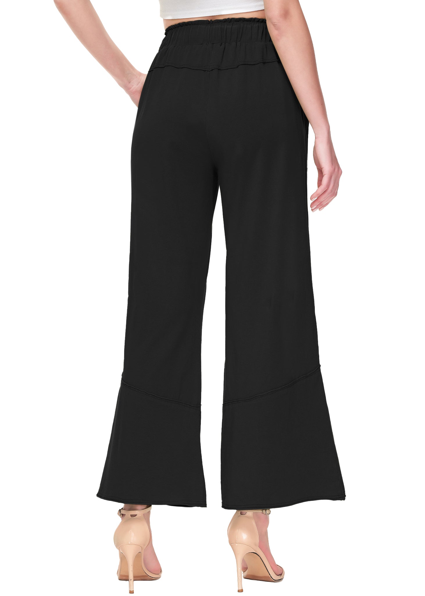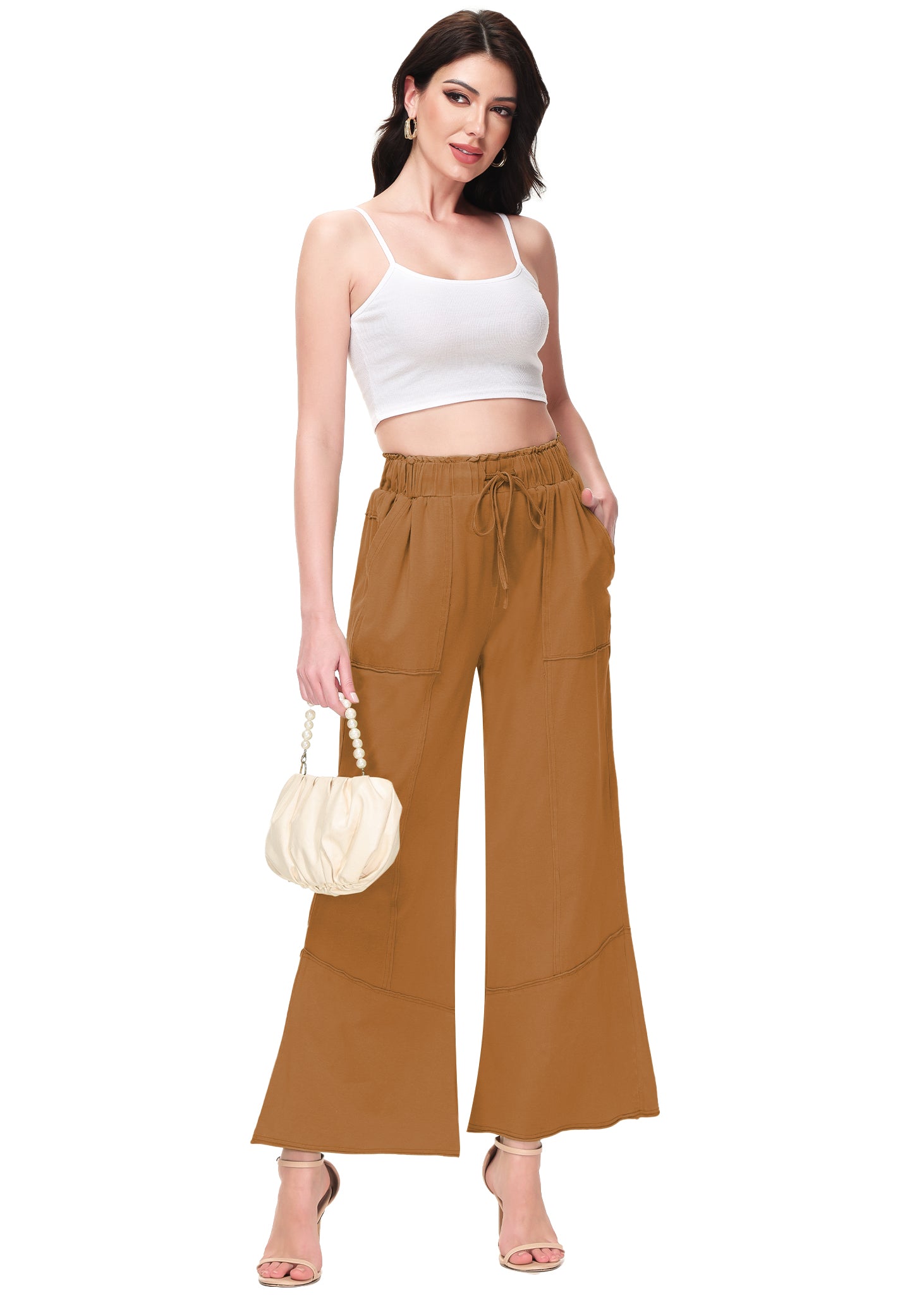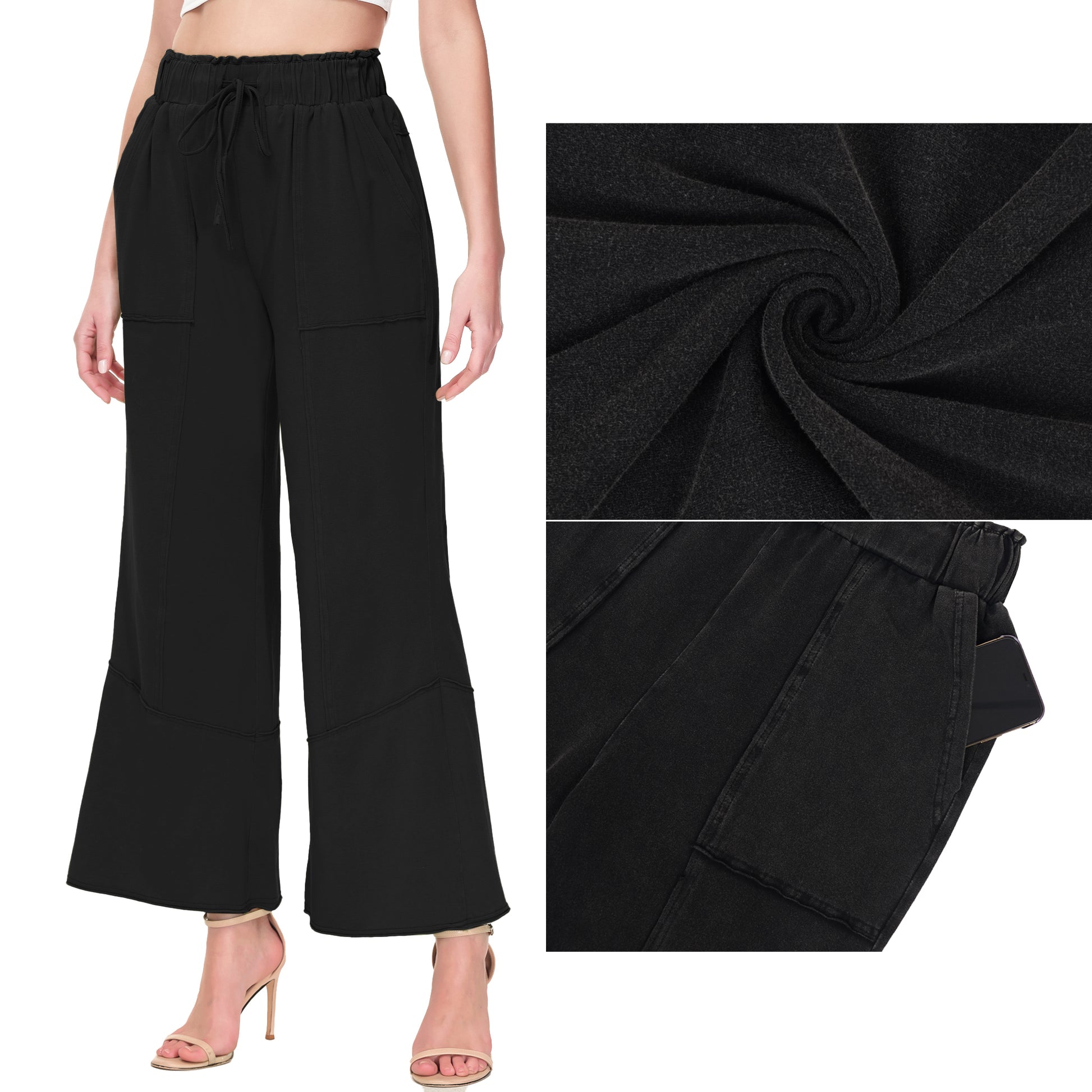 - Feature: Wide leg, high-rise, drawstring, elastic waistband, oversized, side pockets, loose fit pants, solid color, bohemia, flowy dressy pants comfy and chic. Raw and exposed seam detailing throughout for added boho style.