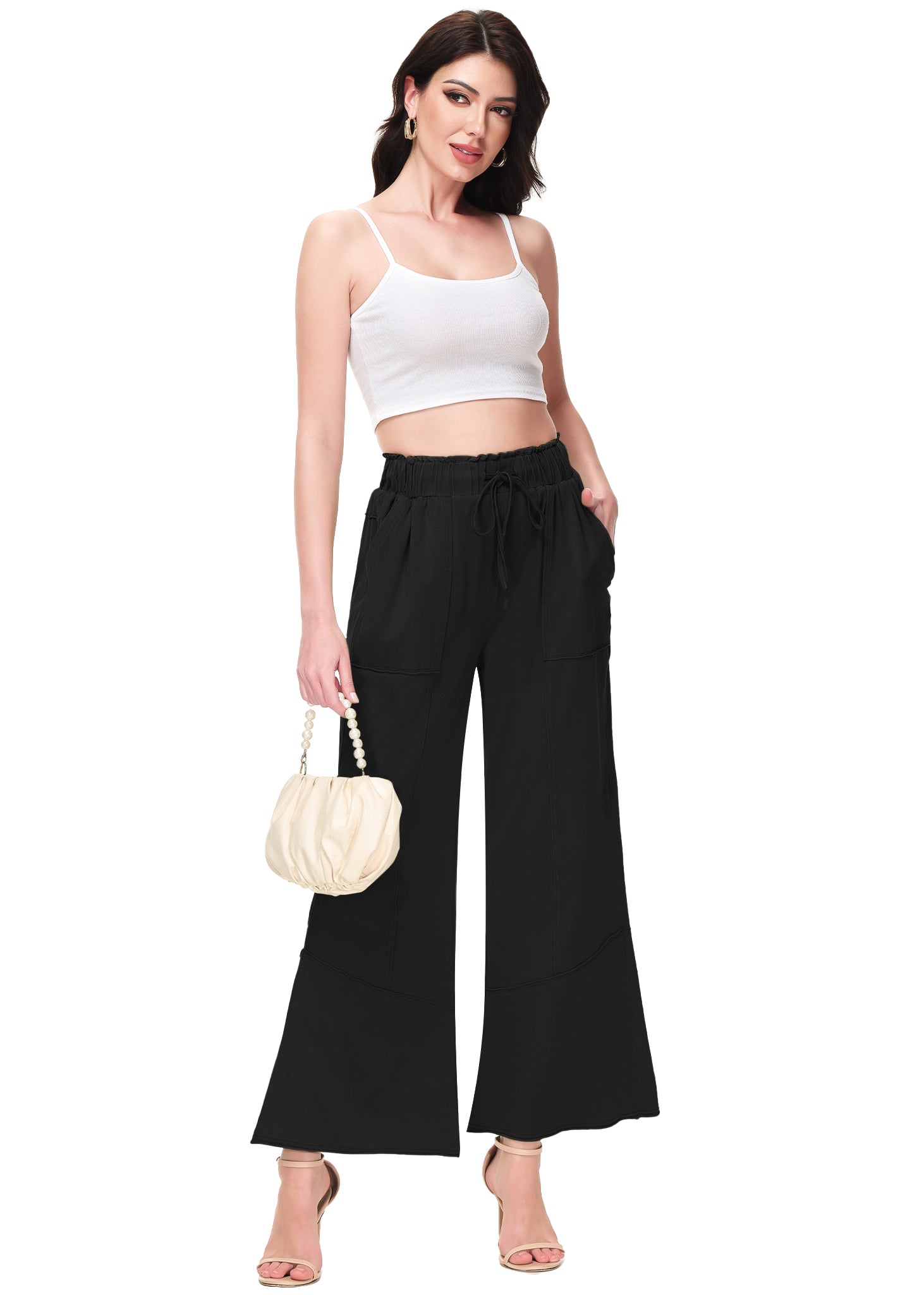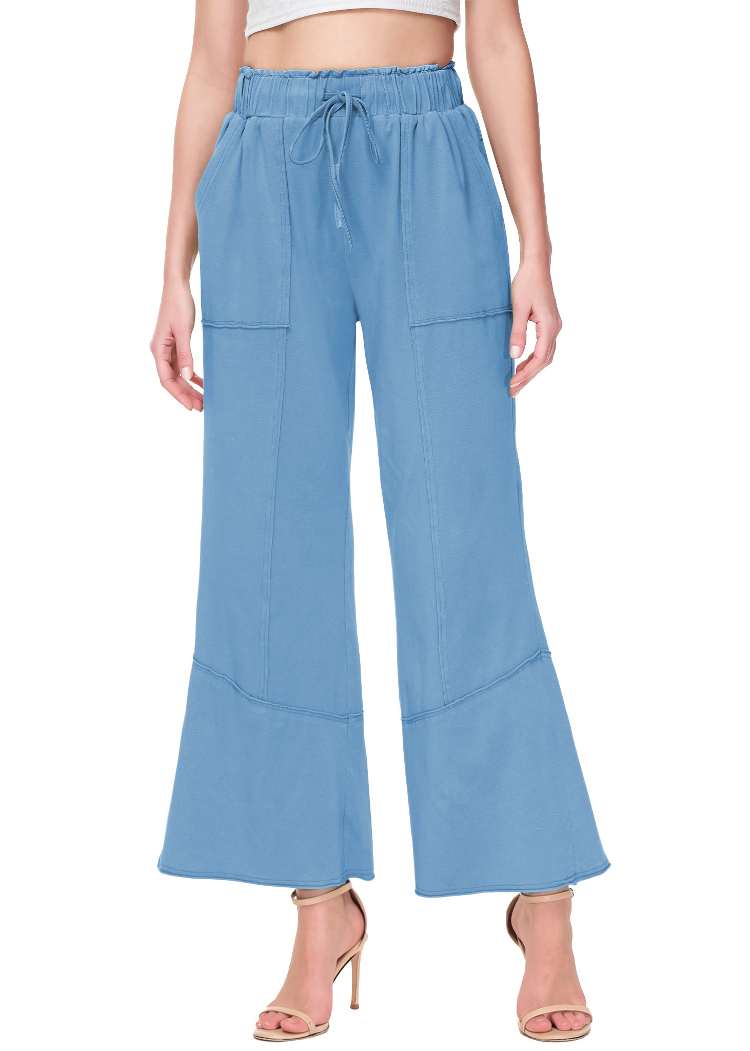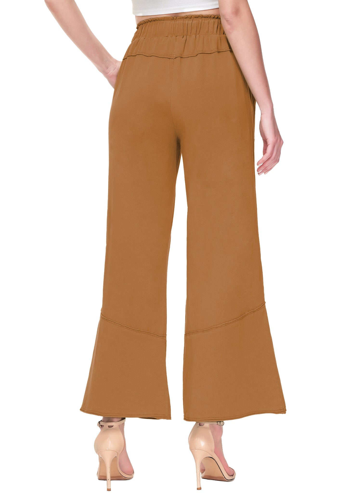 - Feature: Wide leg, high-rise, drawstring, elastic waistband, oversized, side pockets, loose fit pants, solid color, bohemia, flowy dressy pants comfy and chic. Raw and exposed seam detailing throughout for added boho style.