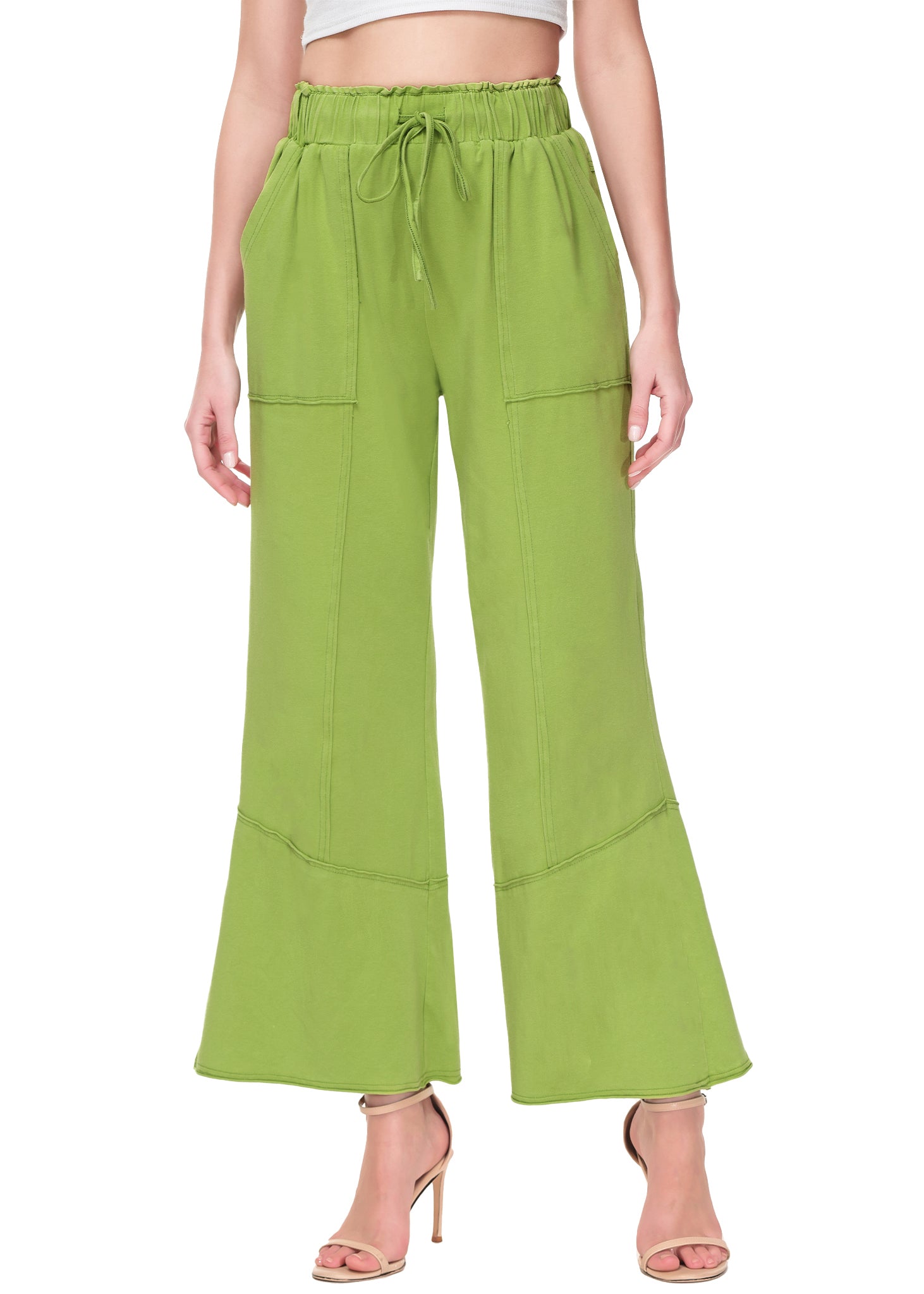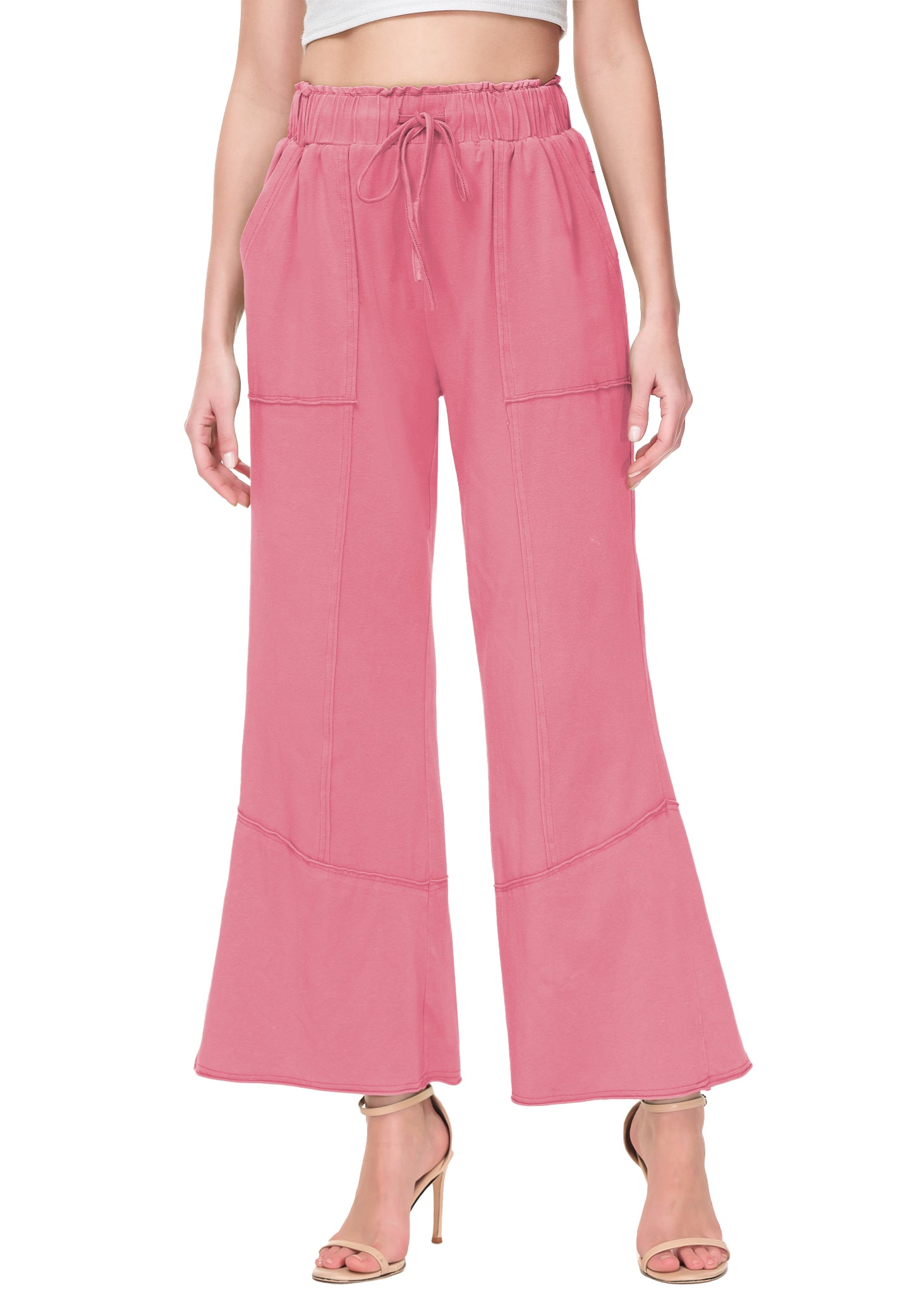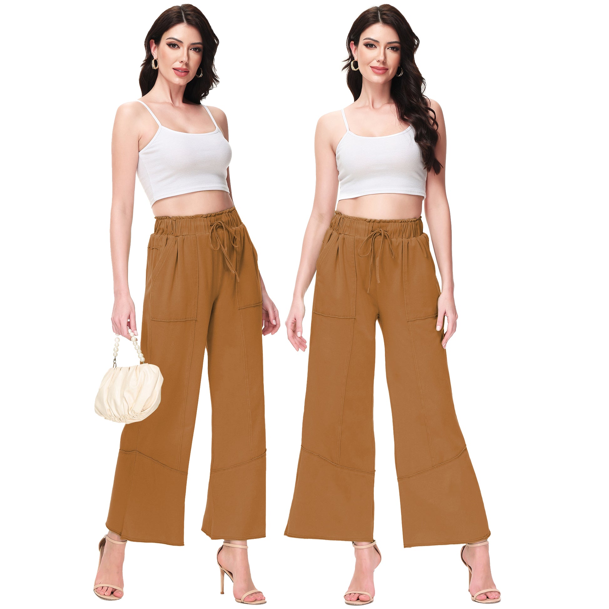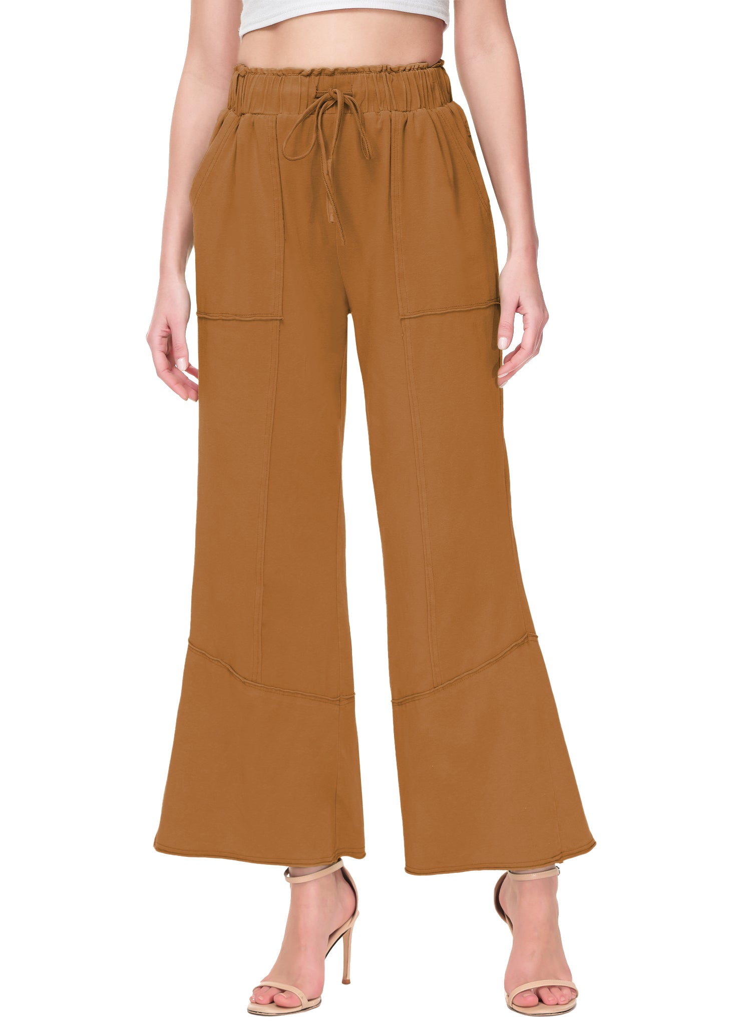 - Feature: Wide leg, high-rise, drawstring, elastic waistband, oversized, side pockets, loose fit pants, solid color, bohemia, flowy dressy pants comfy and chic. Raw and exposed seam detailing throughout for added boho style.