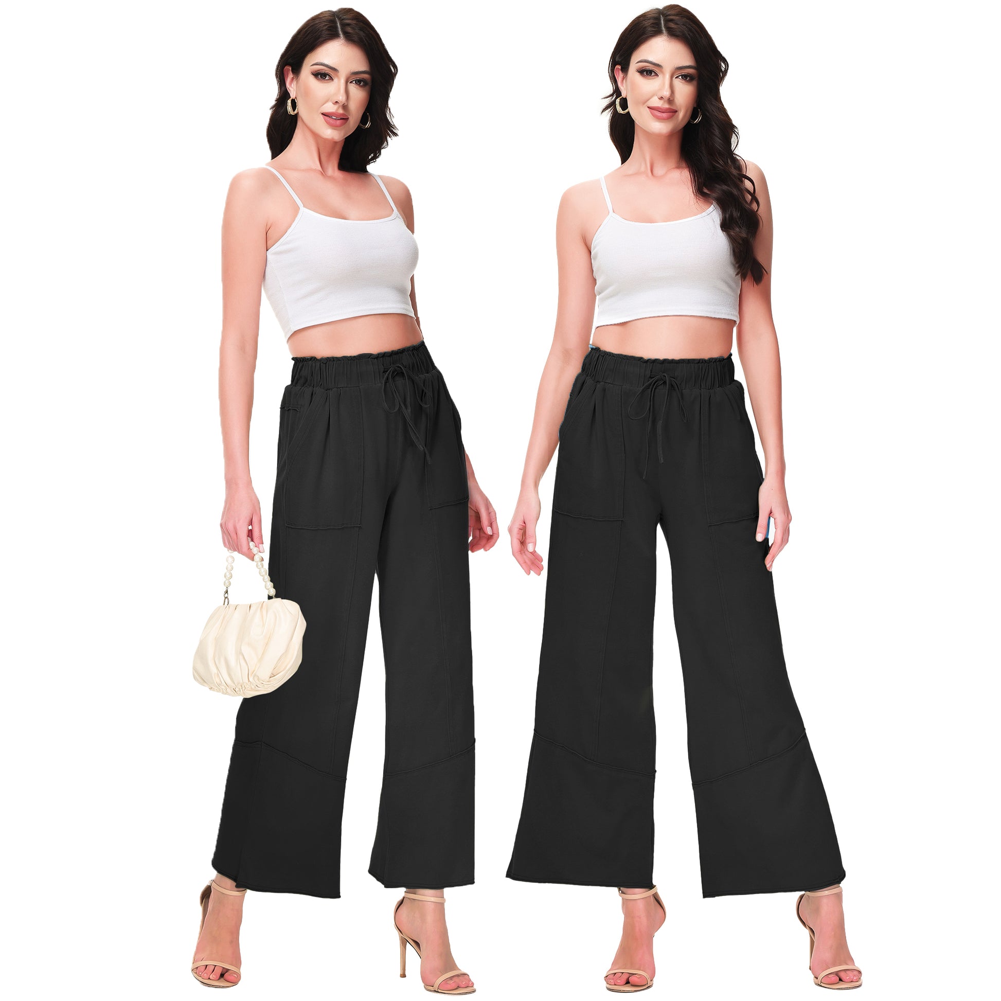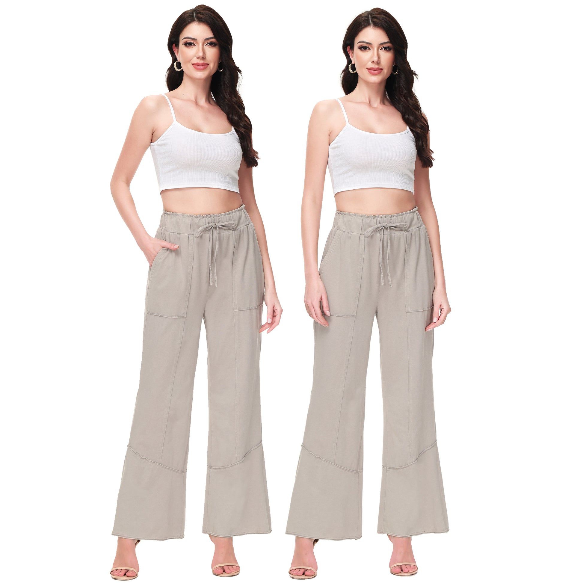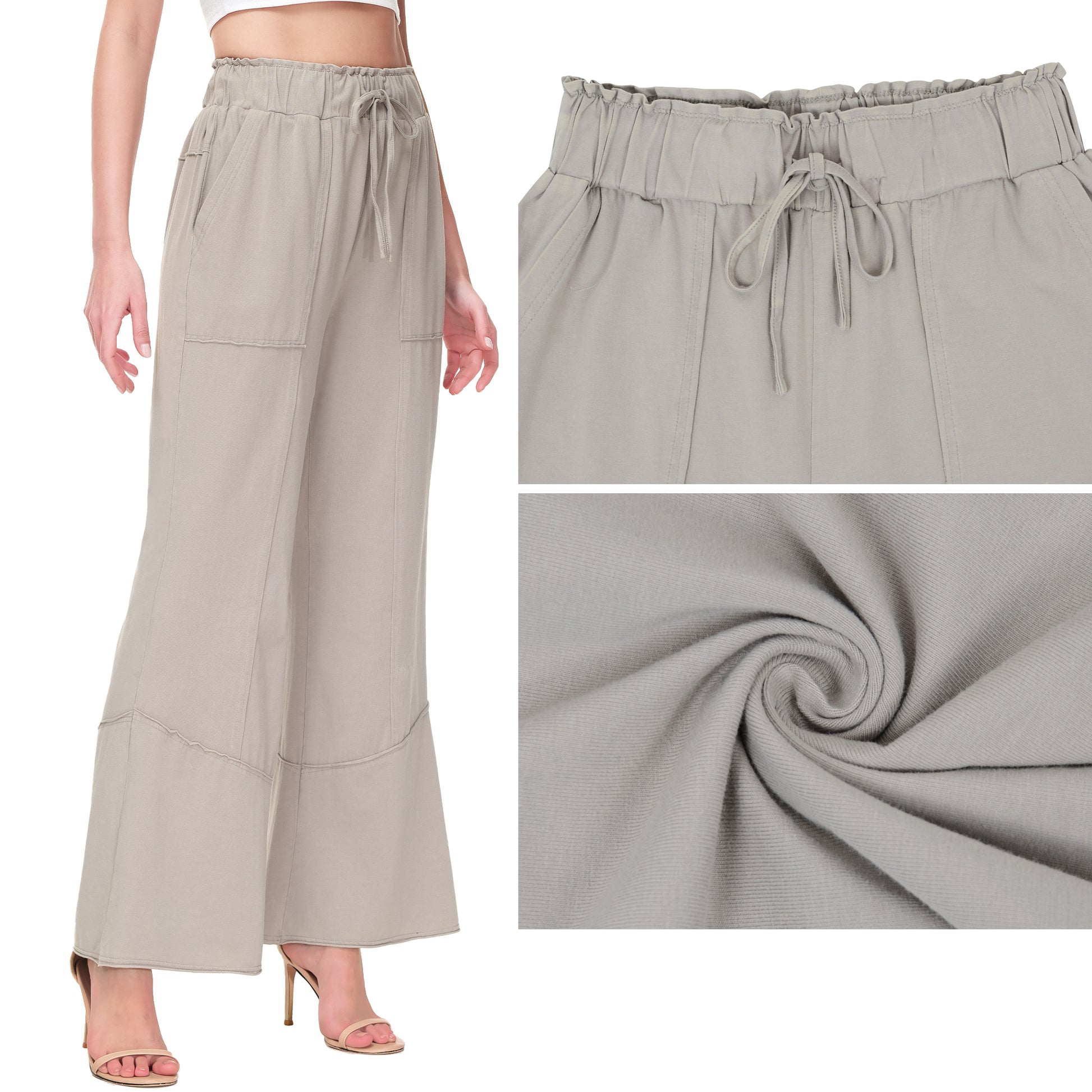 Anna-Kaci Womens High Waist Drawstring Wide Leg Long Pants Casual Loose Soft Ladies Pants with Pockets