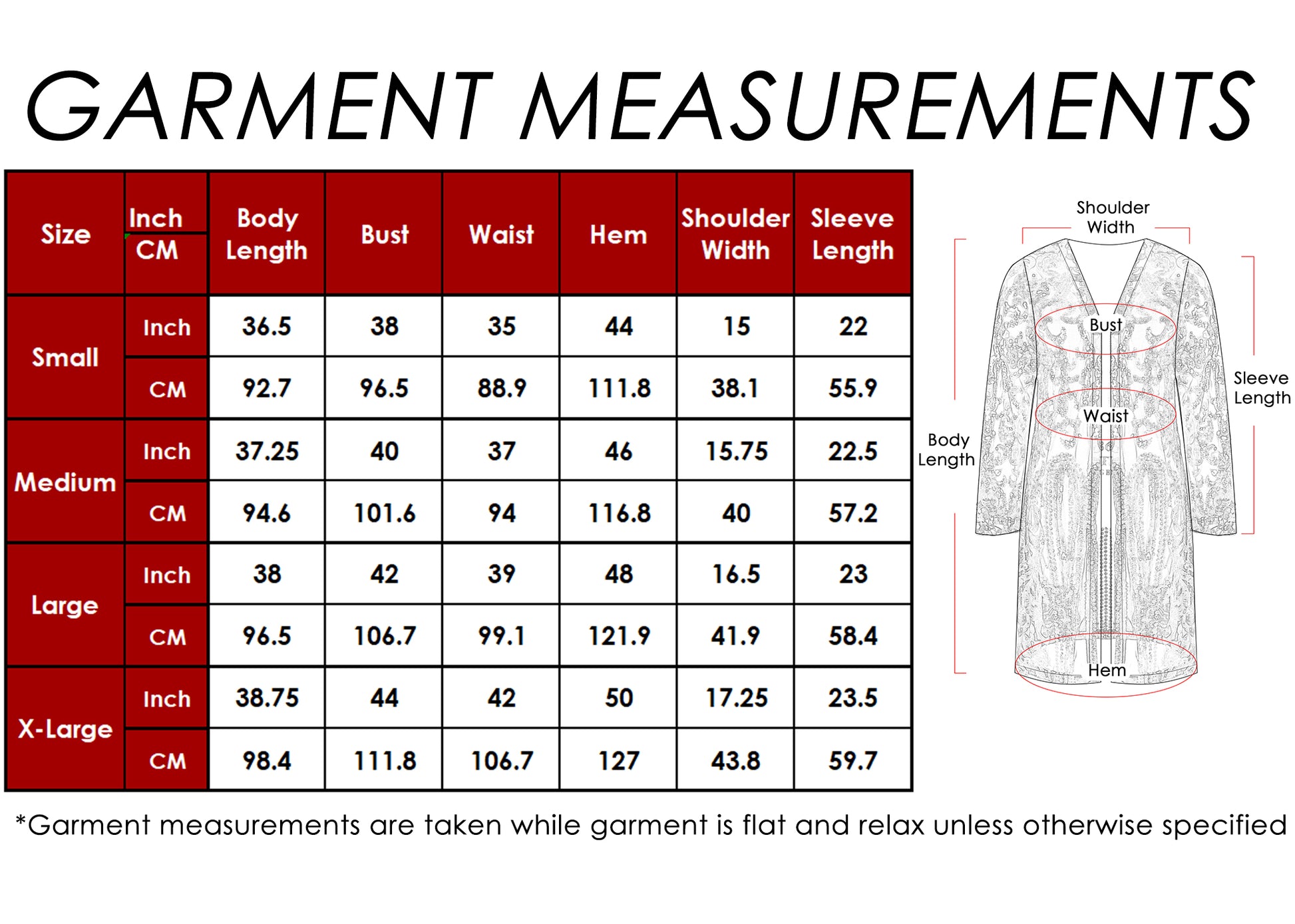 Please refer to the size chart in the images or in the description. Scroll through the images to view the size chart. If you do not see a size chart or measurement guide, please quickly contact us or send us an email at support@anna-kaci.com.