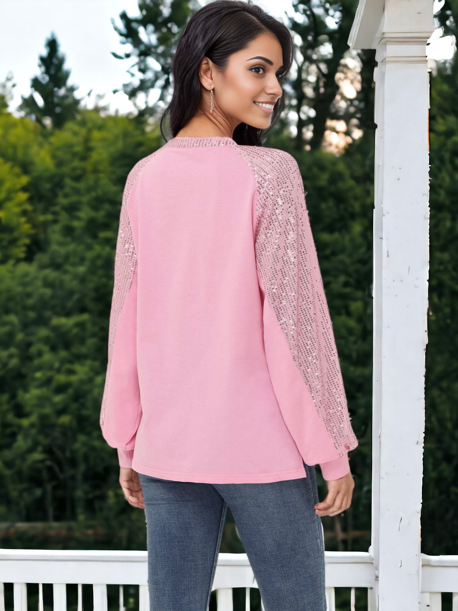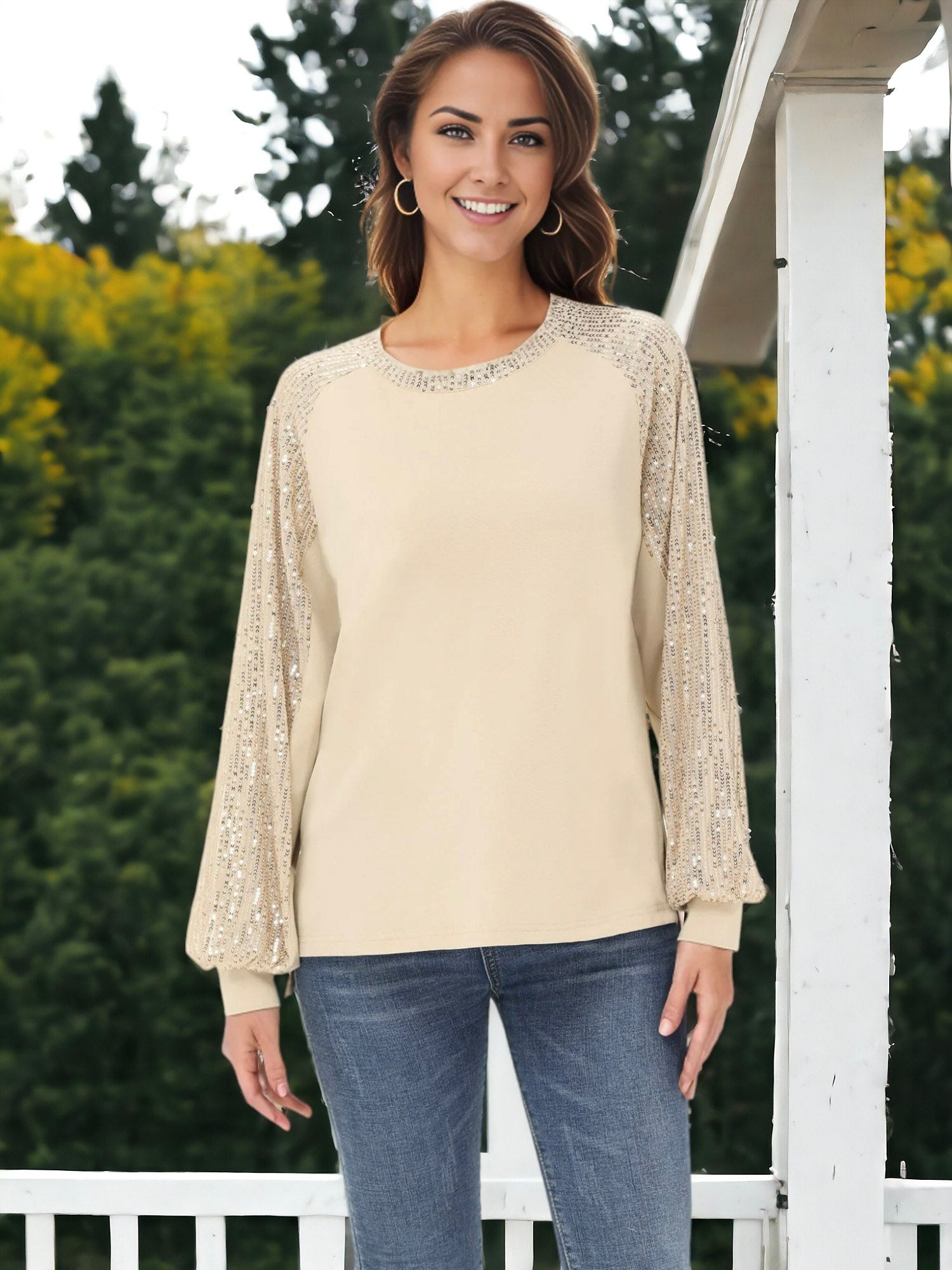 Anna-Kaci Women's Casual Sequin Ballon Long Sleeve Blouse Loose Round Neck Matching Top Party