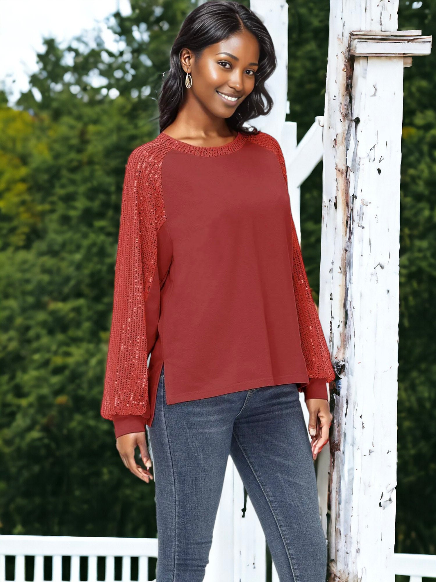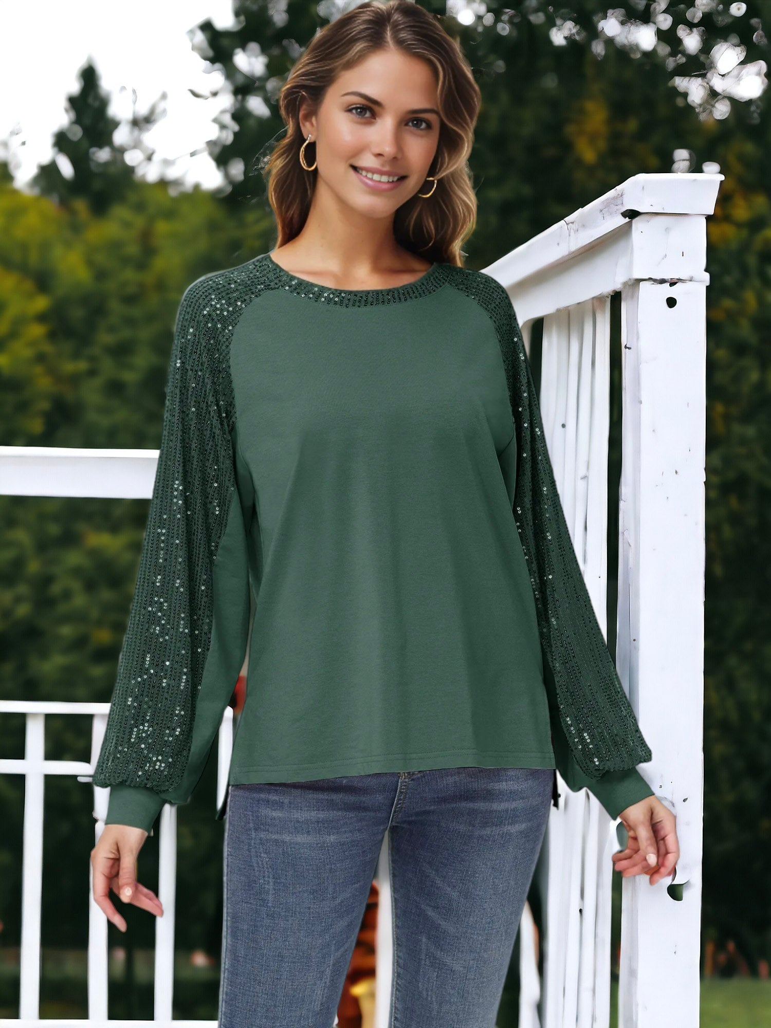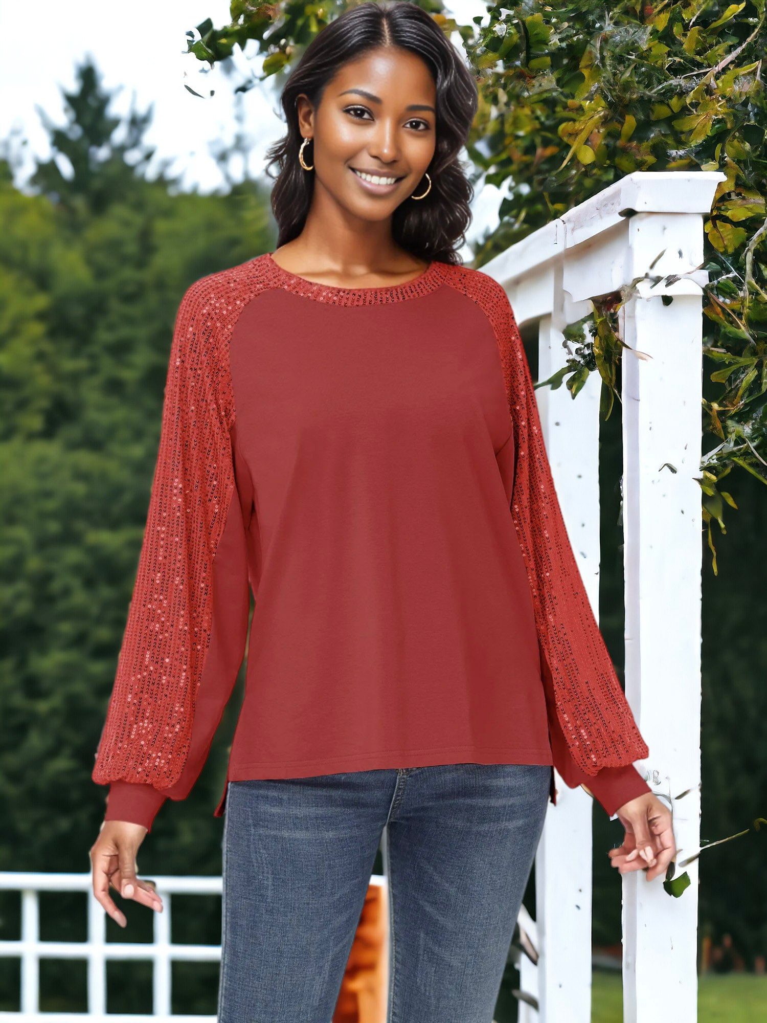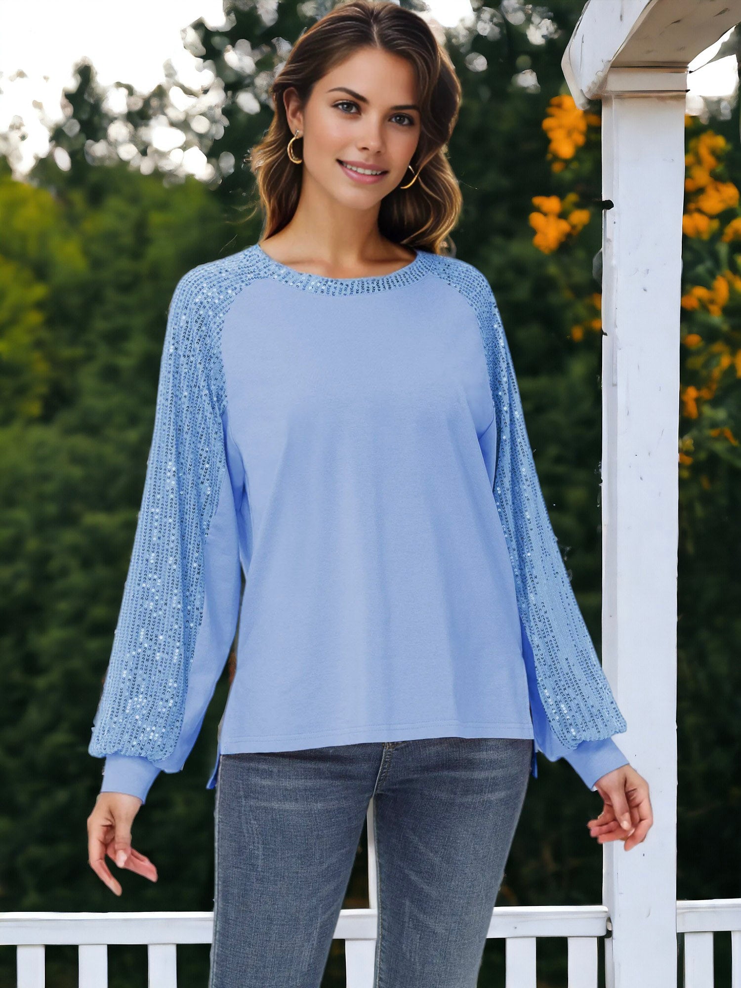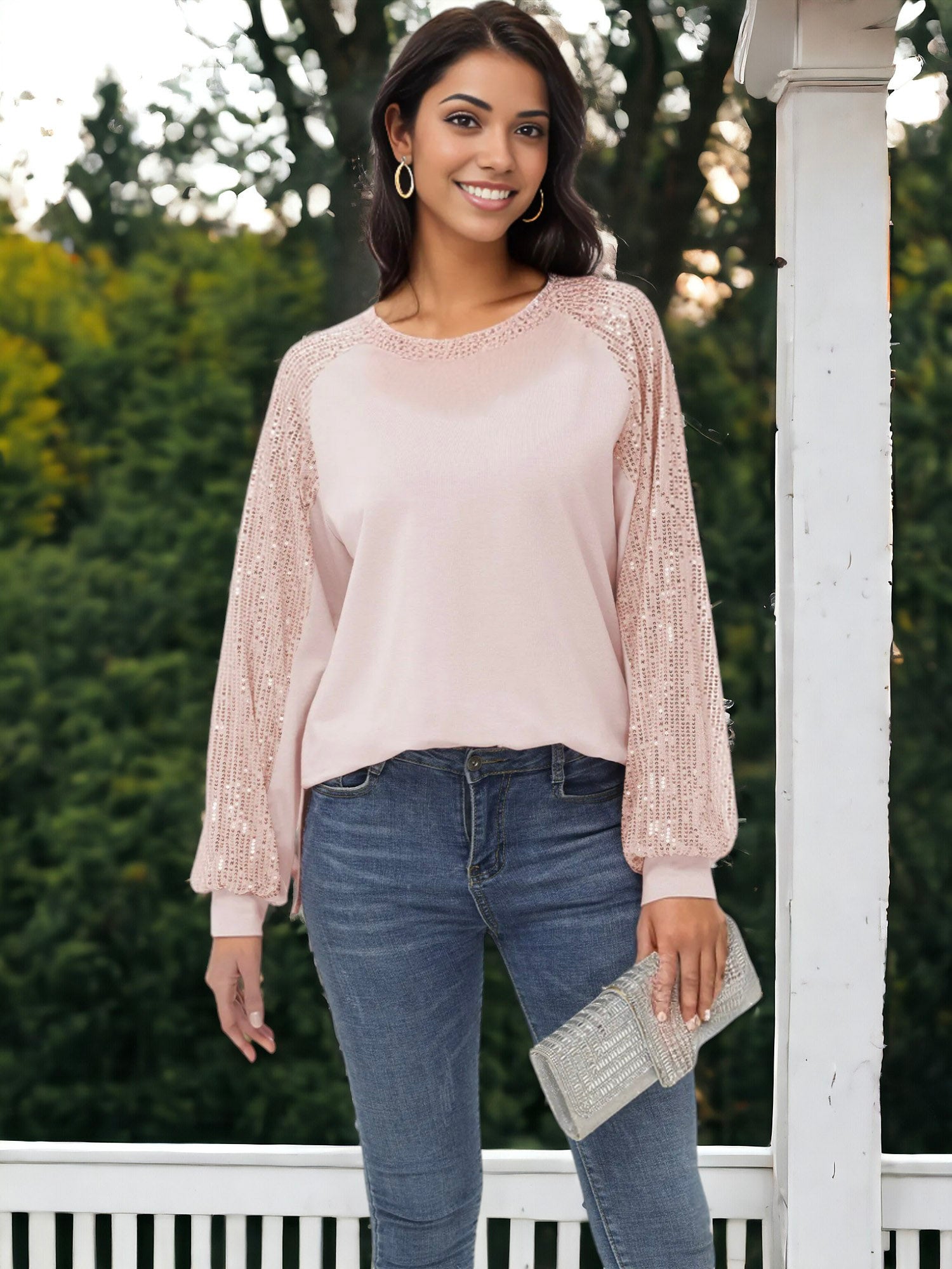 - Features: Long sleeve with sequins, lantern sleeve, sequin shiny crew neck, patchwork, solid color, casual and loose fit, sparkly tops long sleeve shirts.