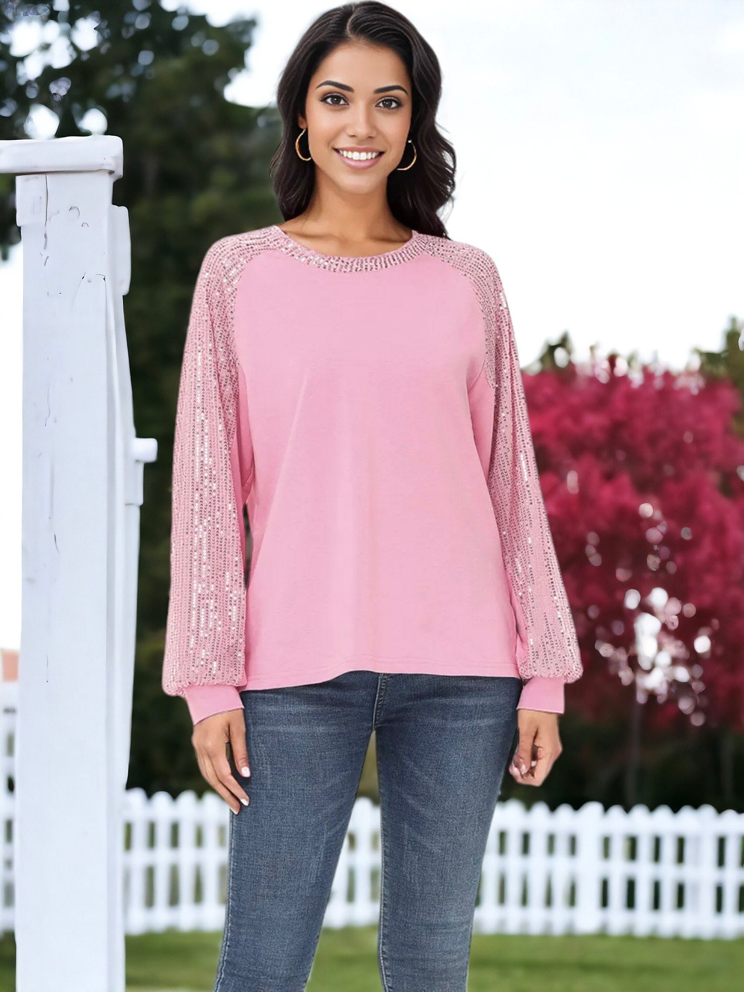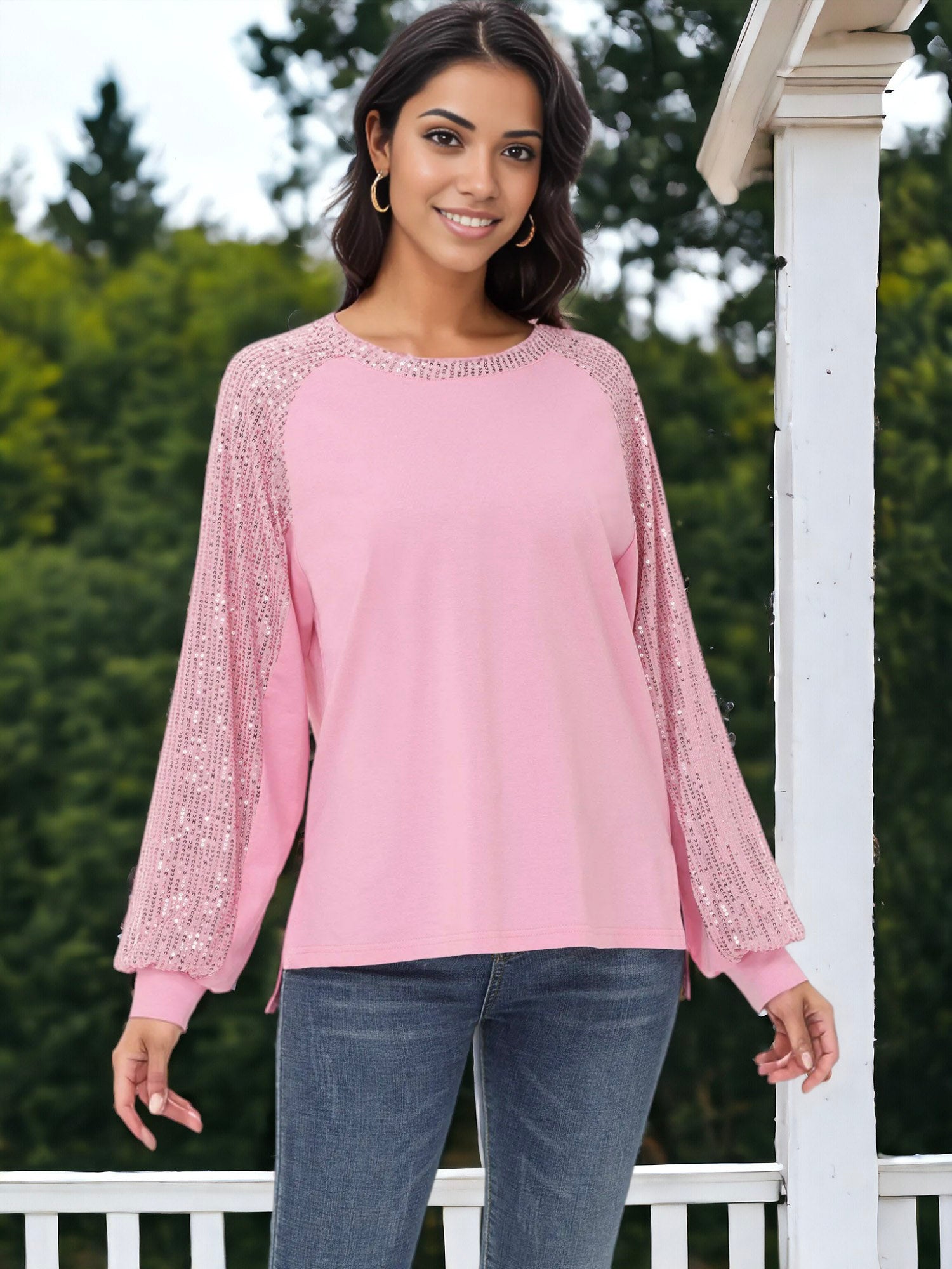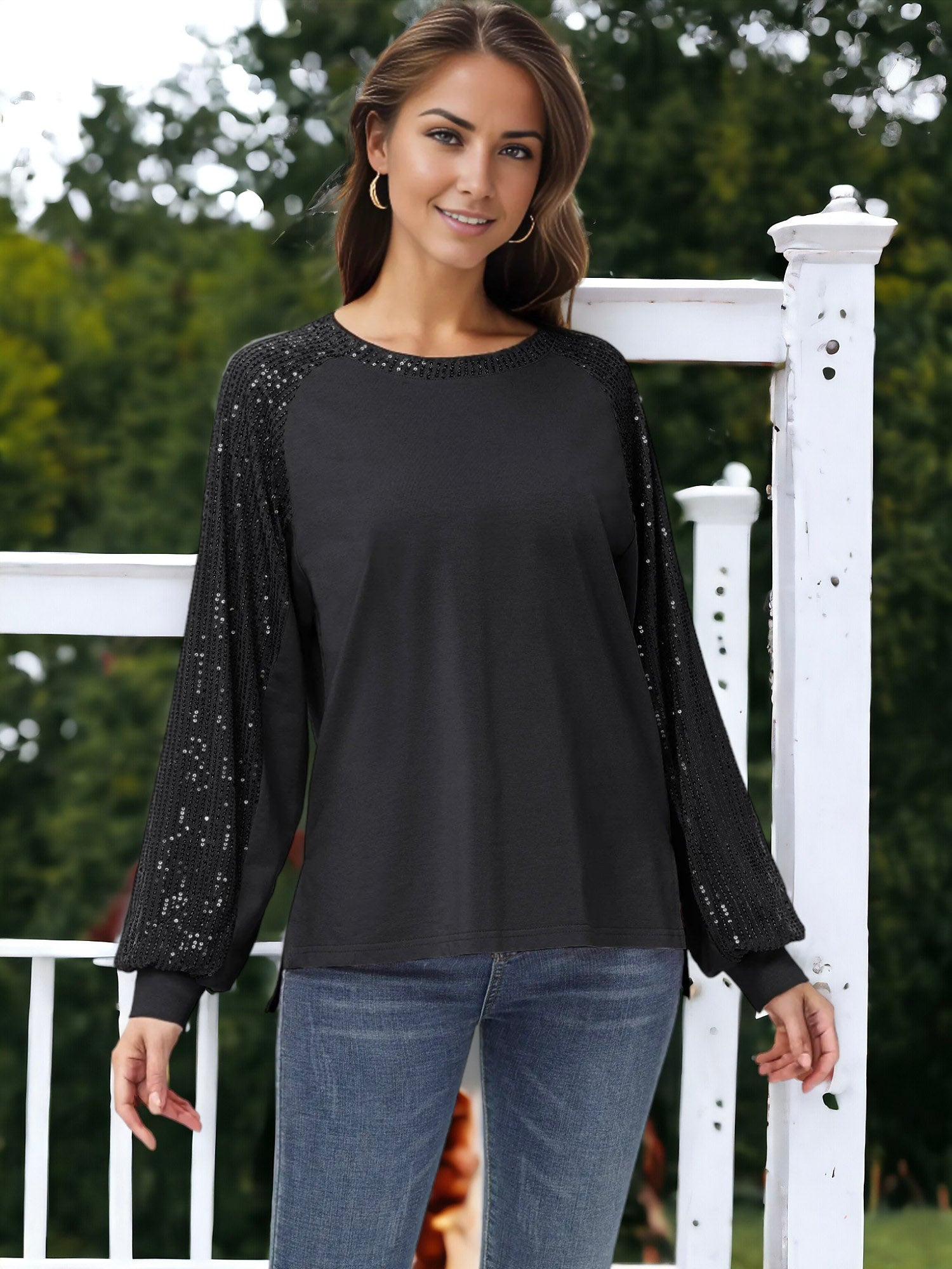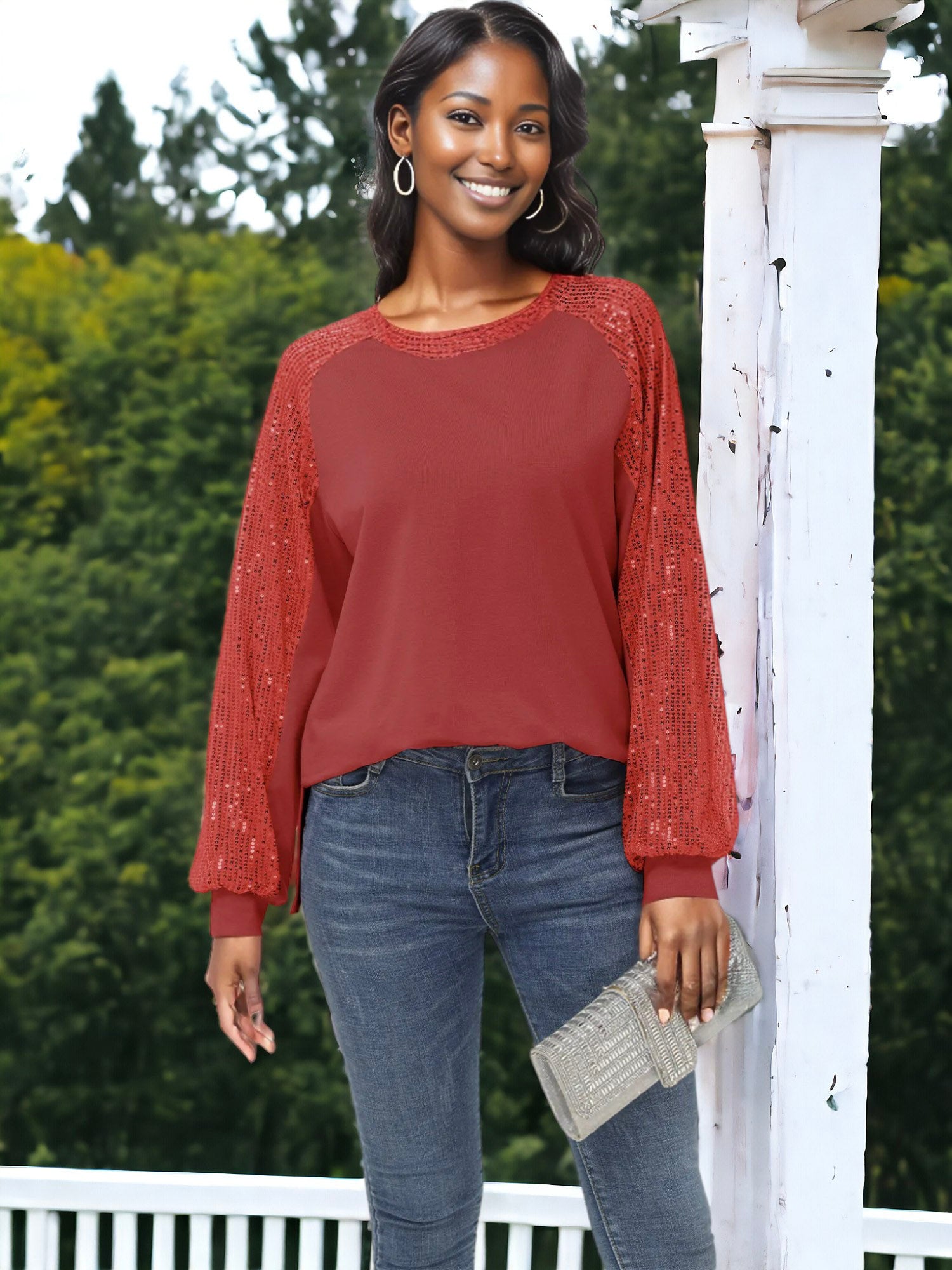 - Features: Long sleeve with sequins, lantern sleeve, sequin shiny crew neck, patchwork, solid color, casual and loose fit, sparkly tops long sleeve shirts.