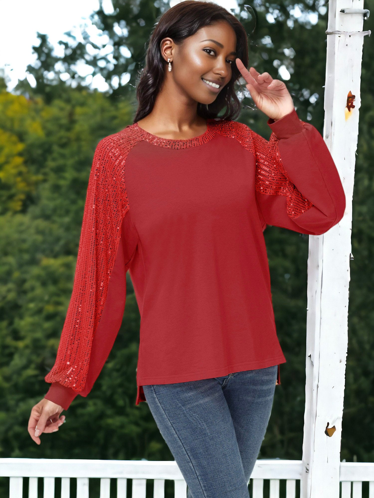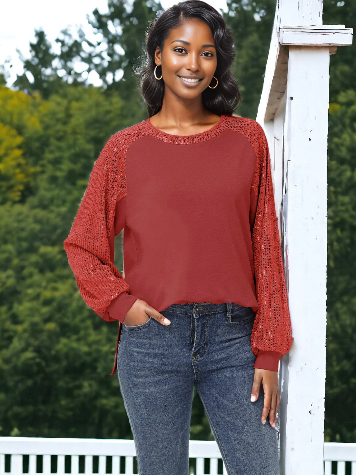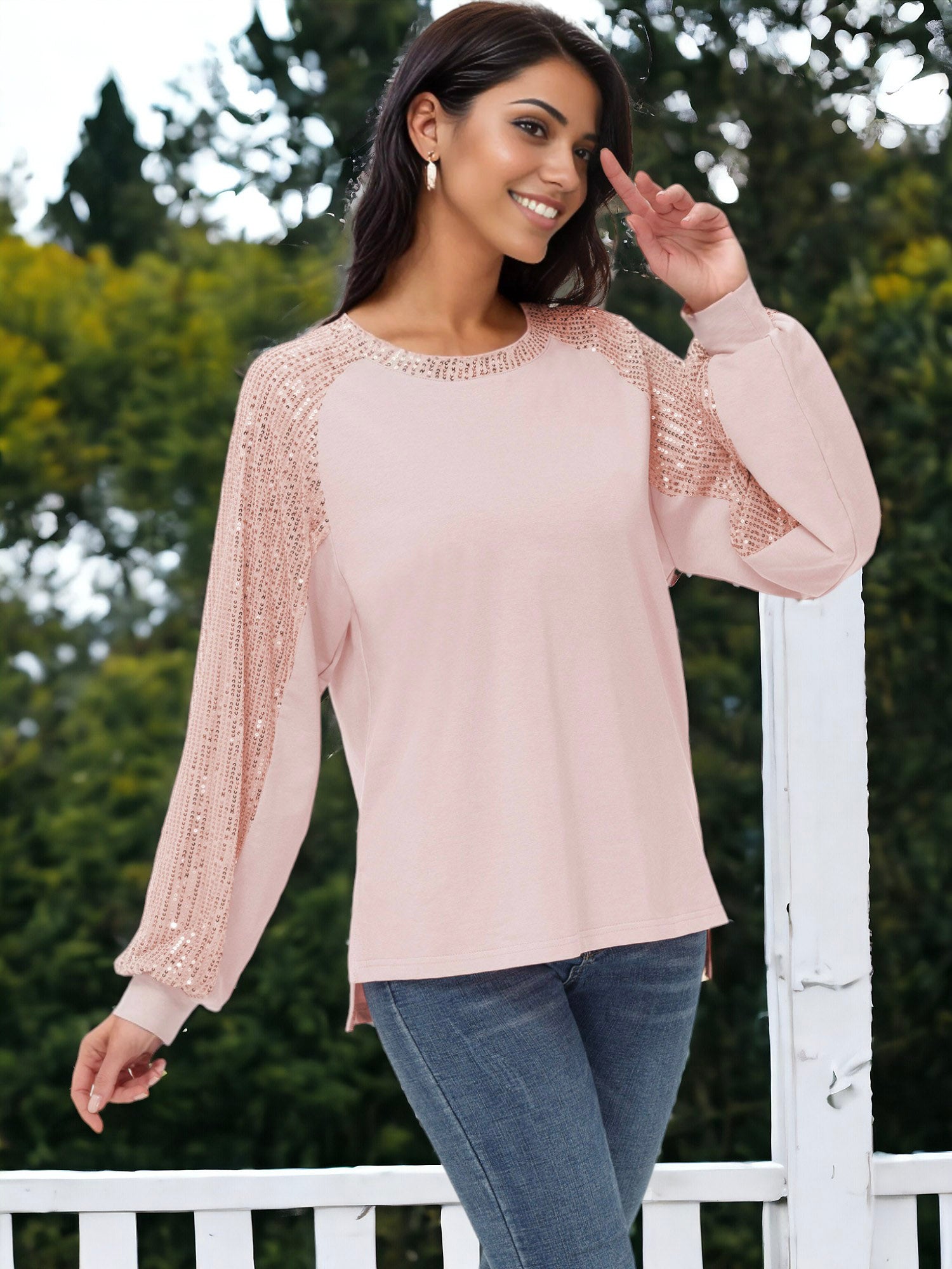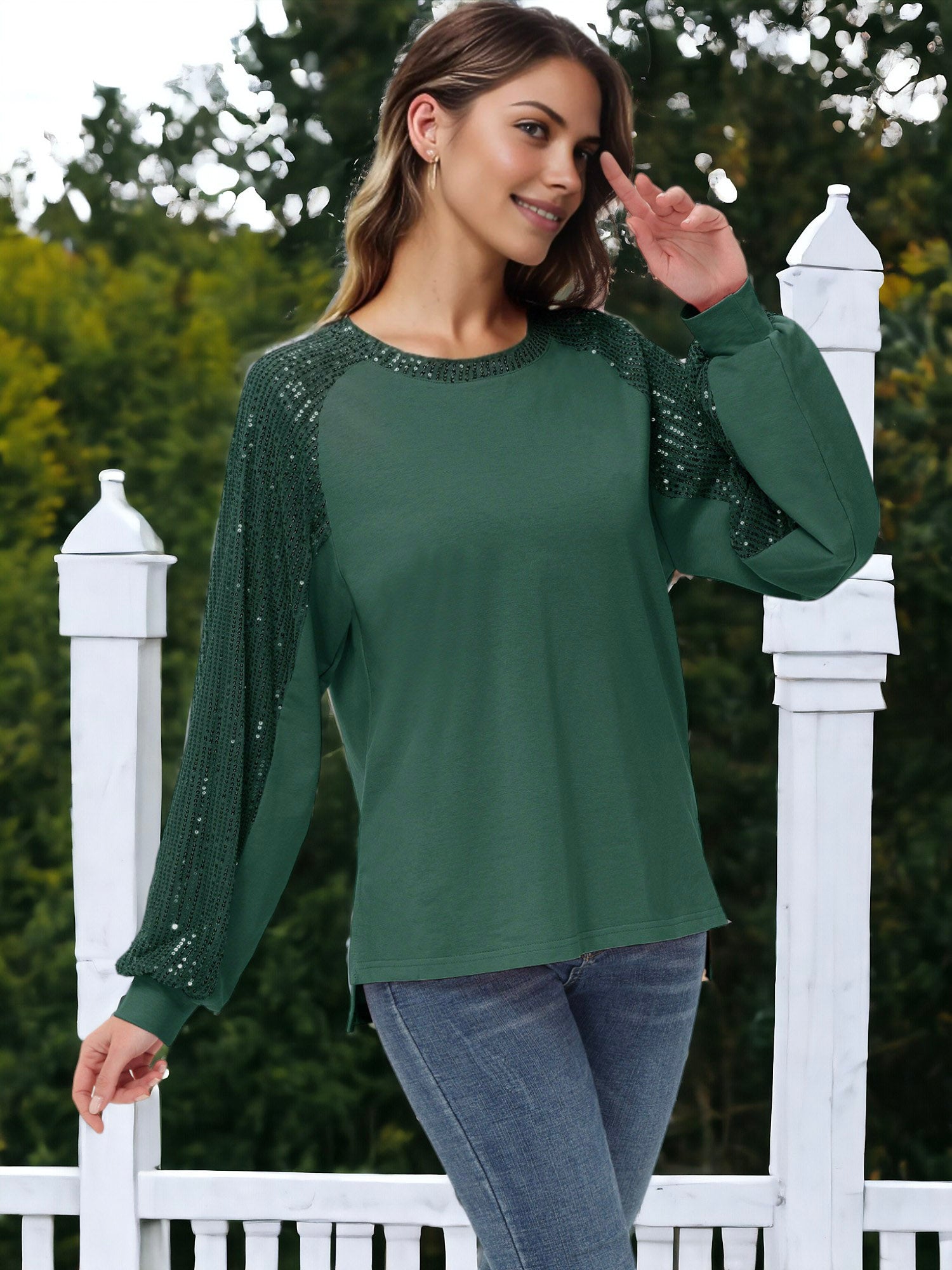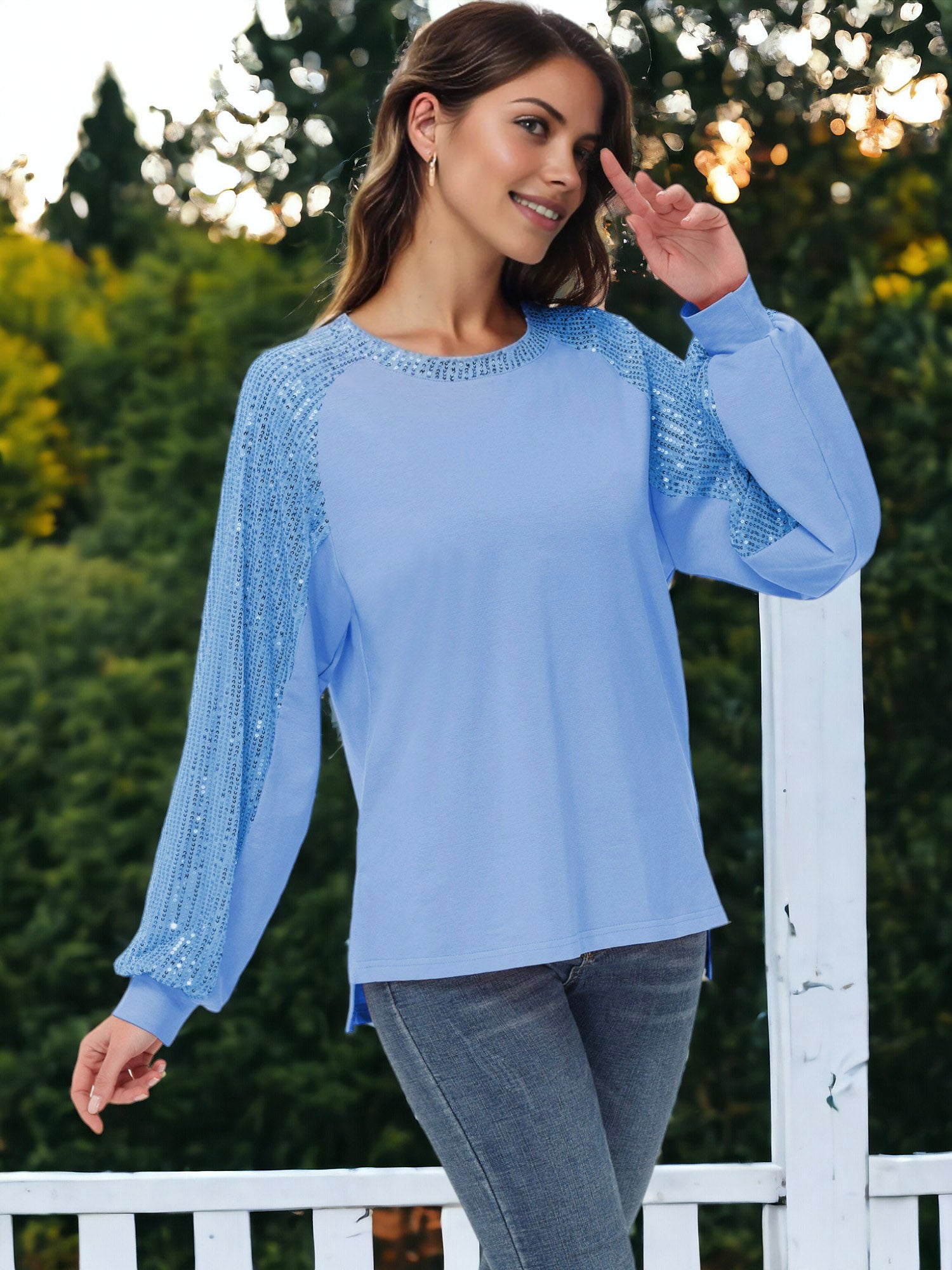 - Features: Long sleeve with sequins, lantern sleeve, sequin shiny crew neck, patchwork, solid color, casual and loose fit, sparkly tops long sleeve shirts.