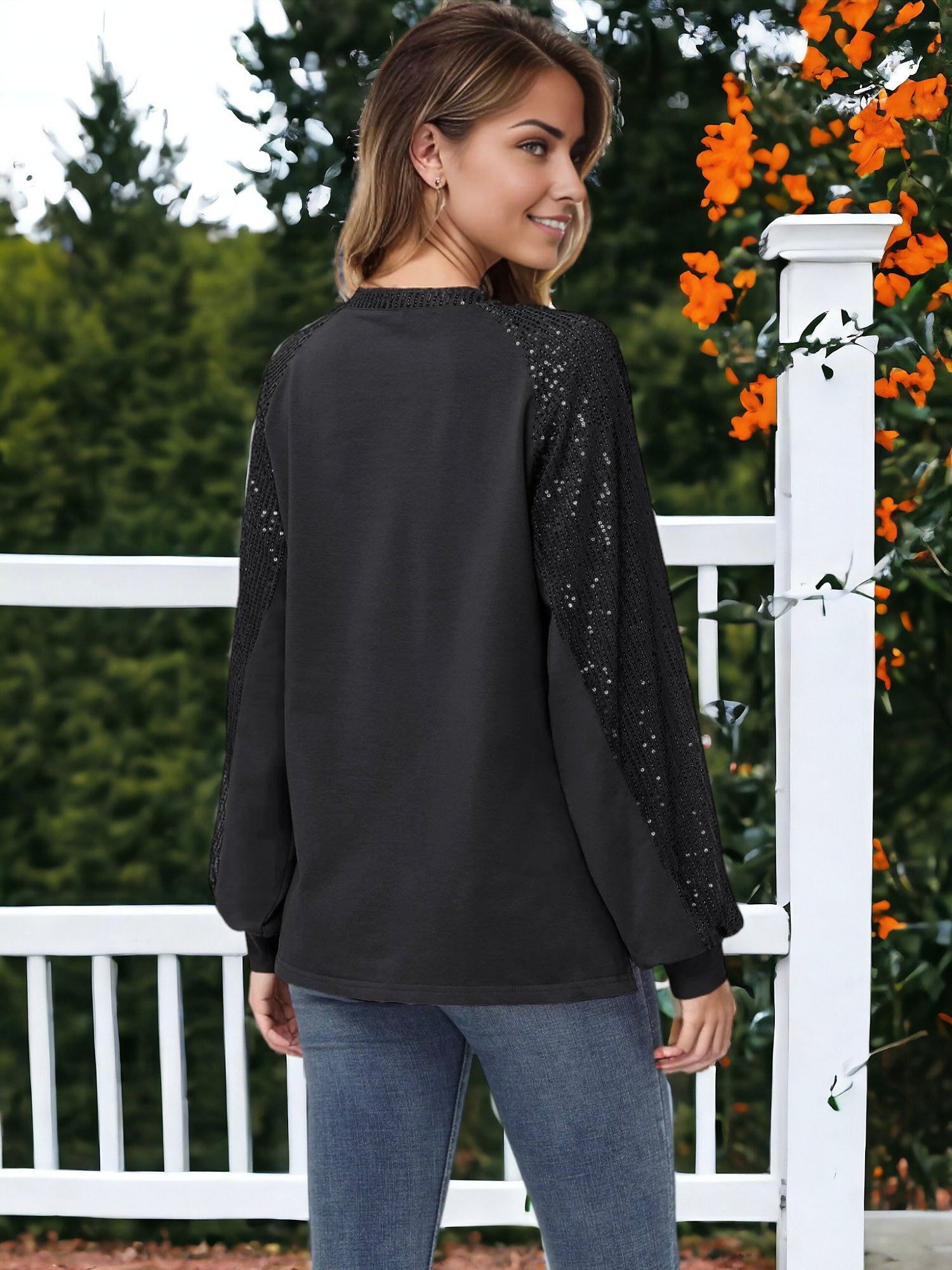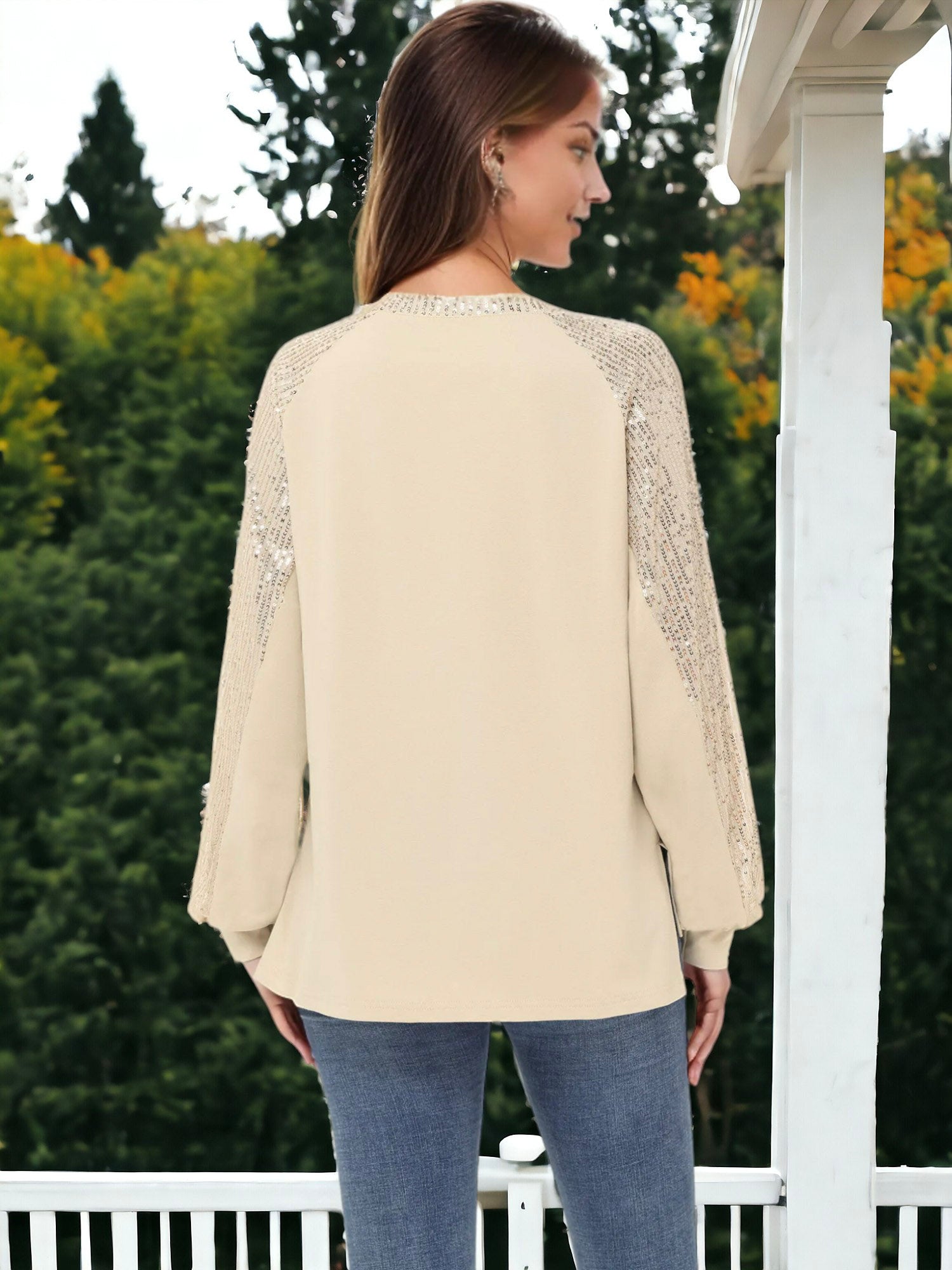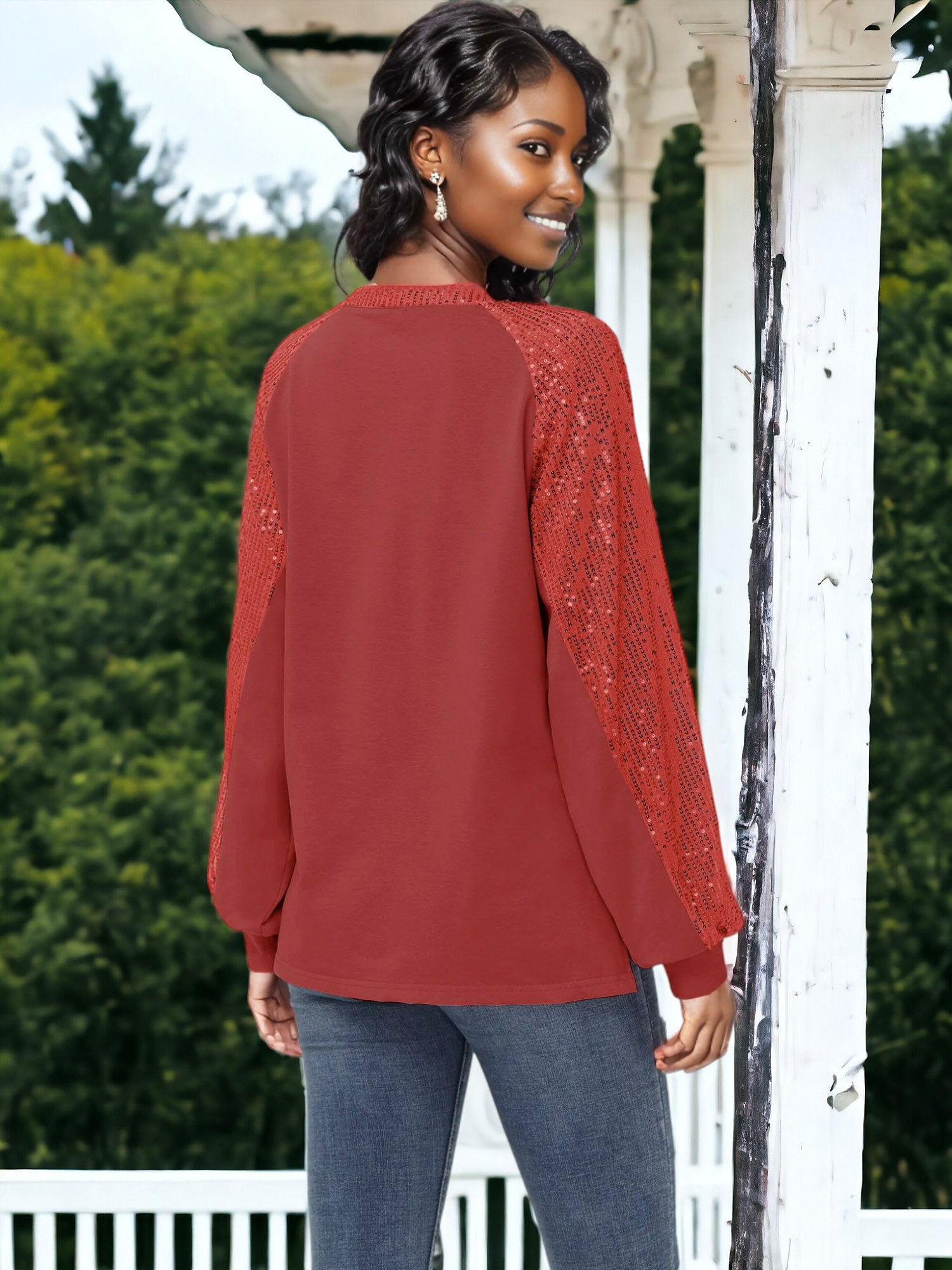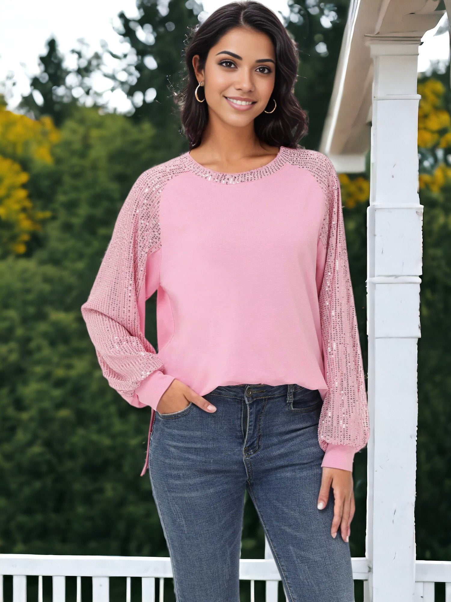 - Features: Long sleeve with sequins, lantern sleeve, sequin shiny crew neck, patchwork, solid color, casual and loose fit, sparkly tops long sleeve shirts.