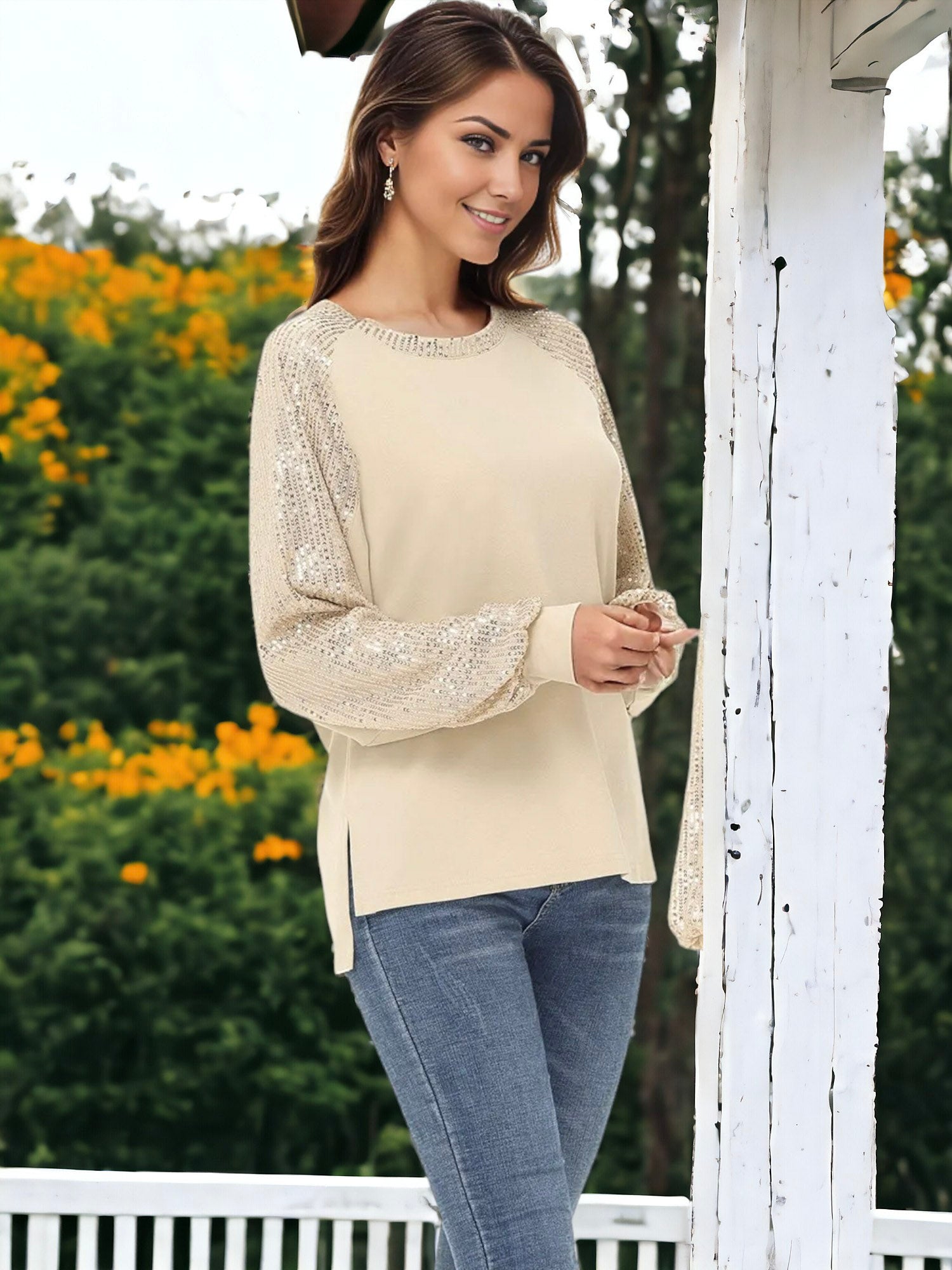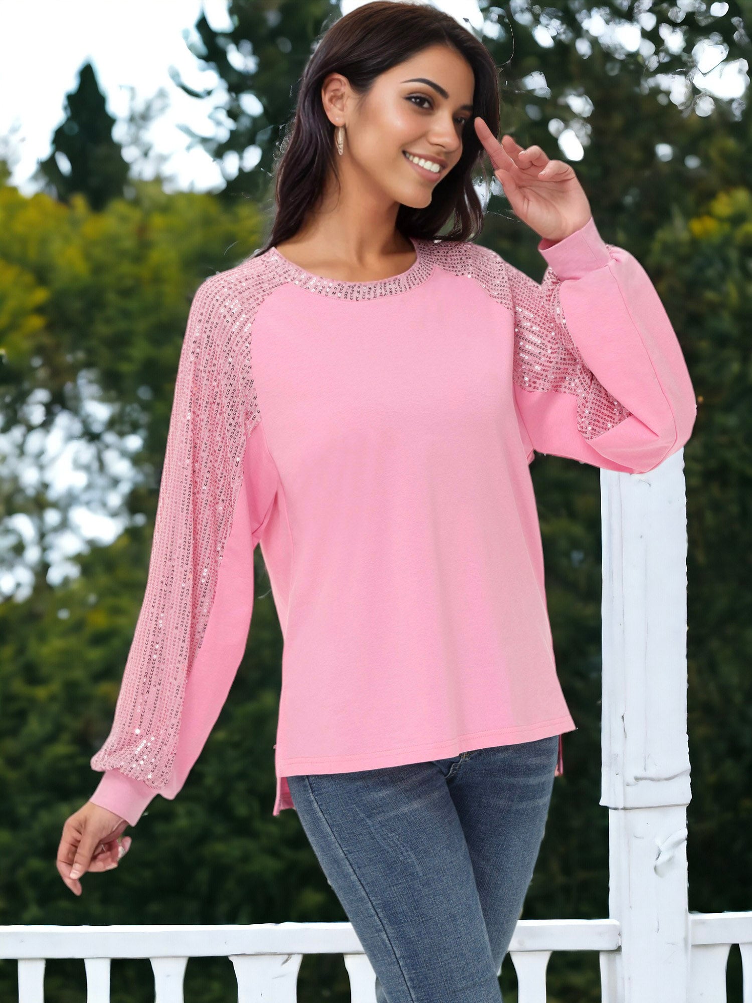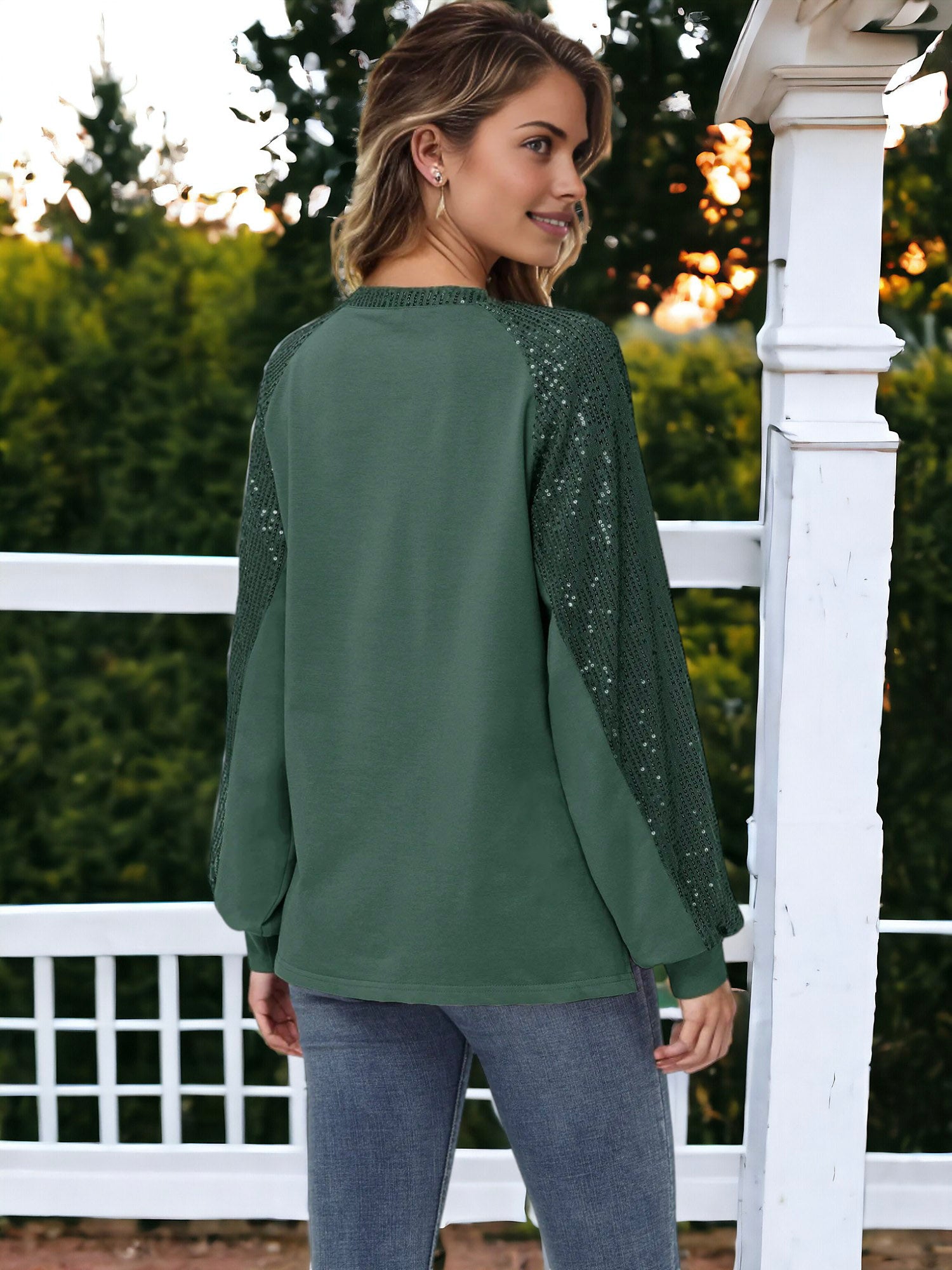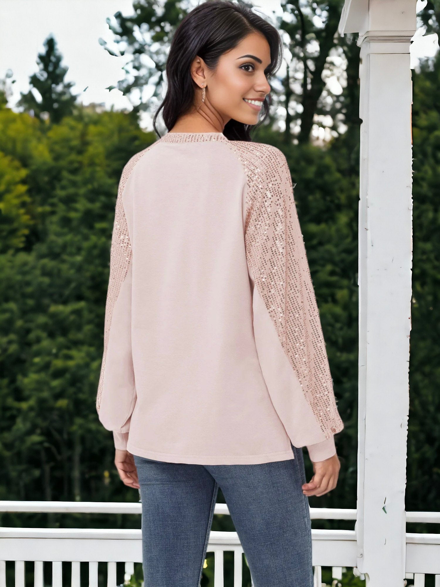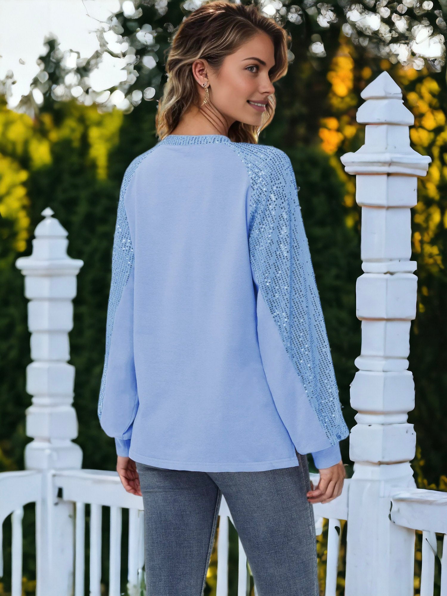 - Features: Long sleeve with sequins, lantern sleeve, sequin shiny crew neck, patchwork, solid color, casual and loose fit, sparkly tops long sleeve shirts.