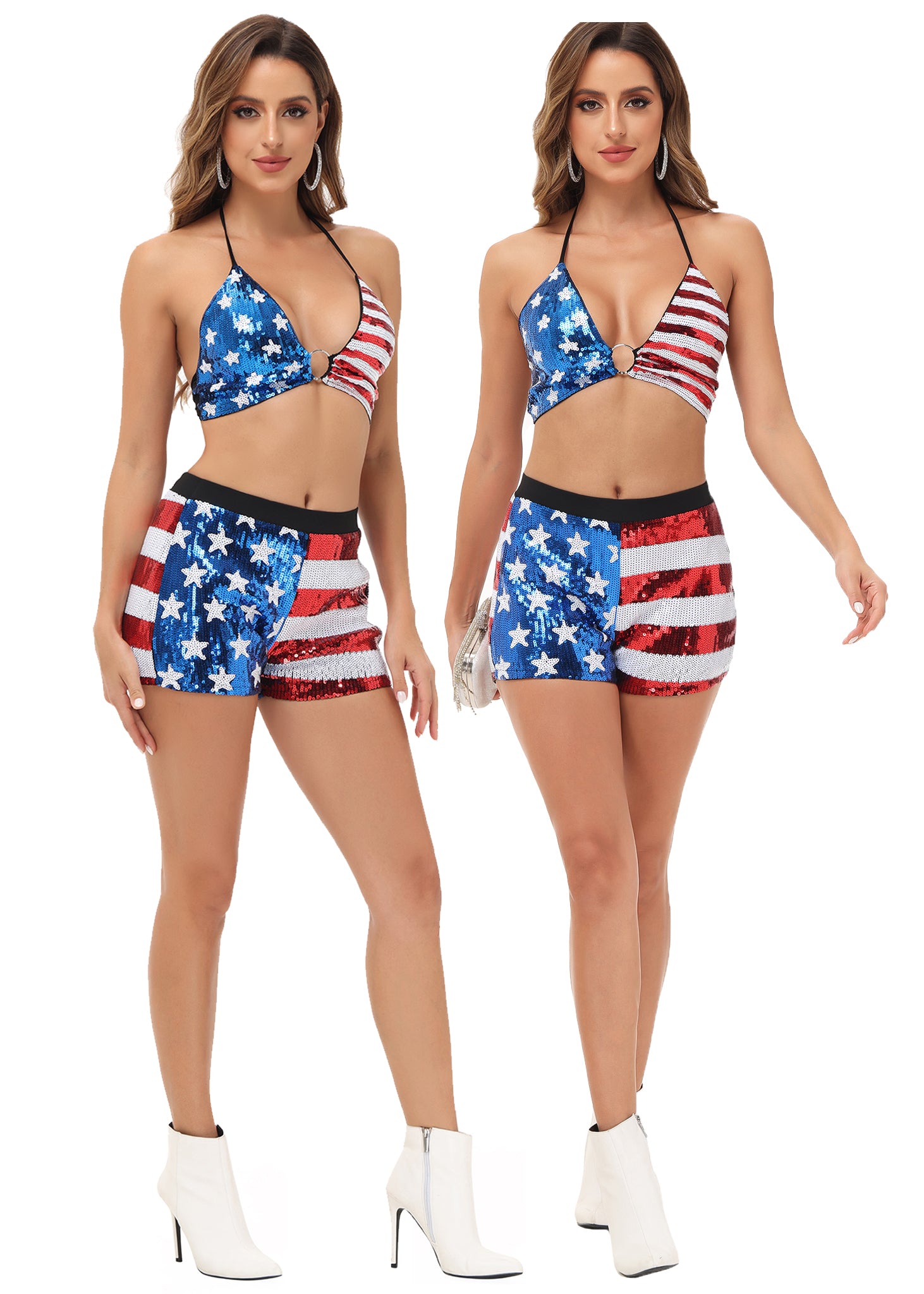 - Eye-Catching Sequins: Sparkling sequin embellishments on this camisole crop top. Unique patchwork design, this camisole combines the iconic stars and stripes of the American flag with a modern twist. Stay fashionable while expressing your love for the USA.