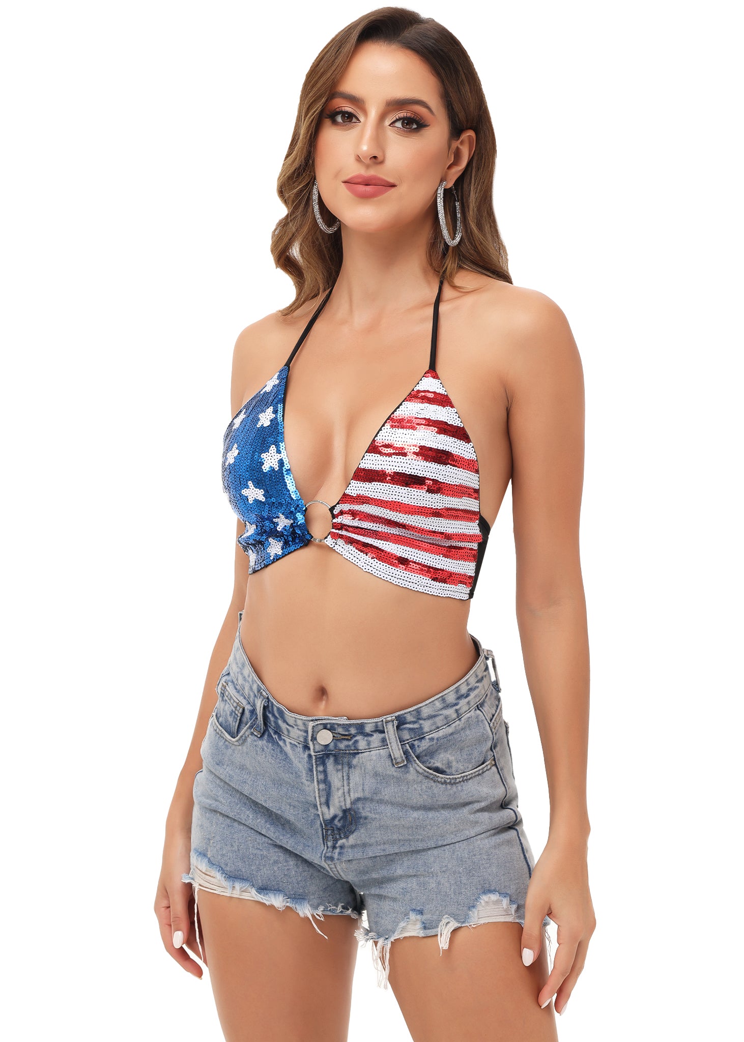 - Independence Day Fashion: Show off your patriotic spirit with this trendy USA Flag Halter Backless Camisole. Perfect for celebrating Independence Day, Memorial Day, or any American-themed event.