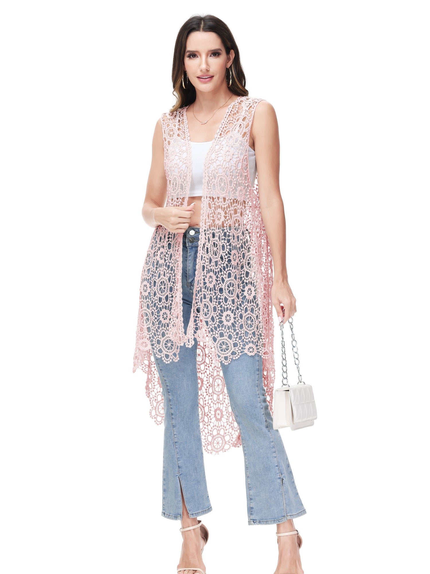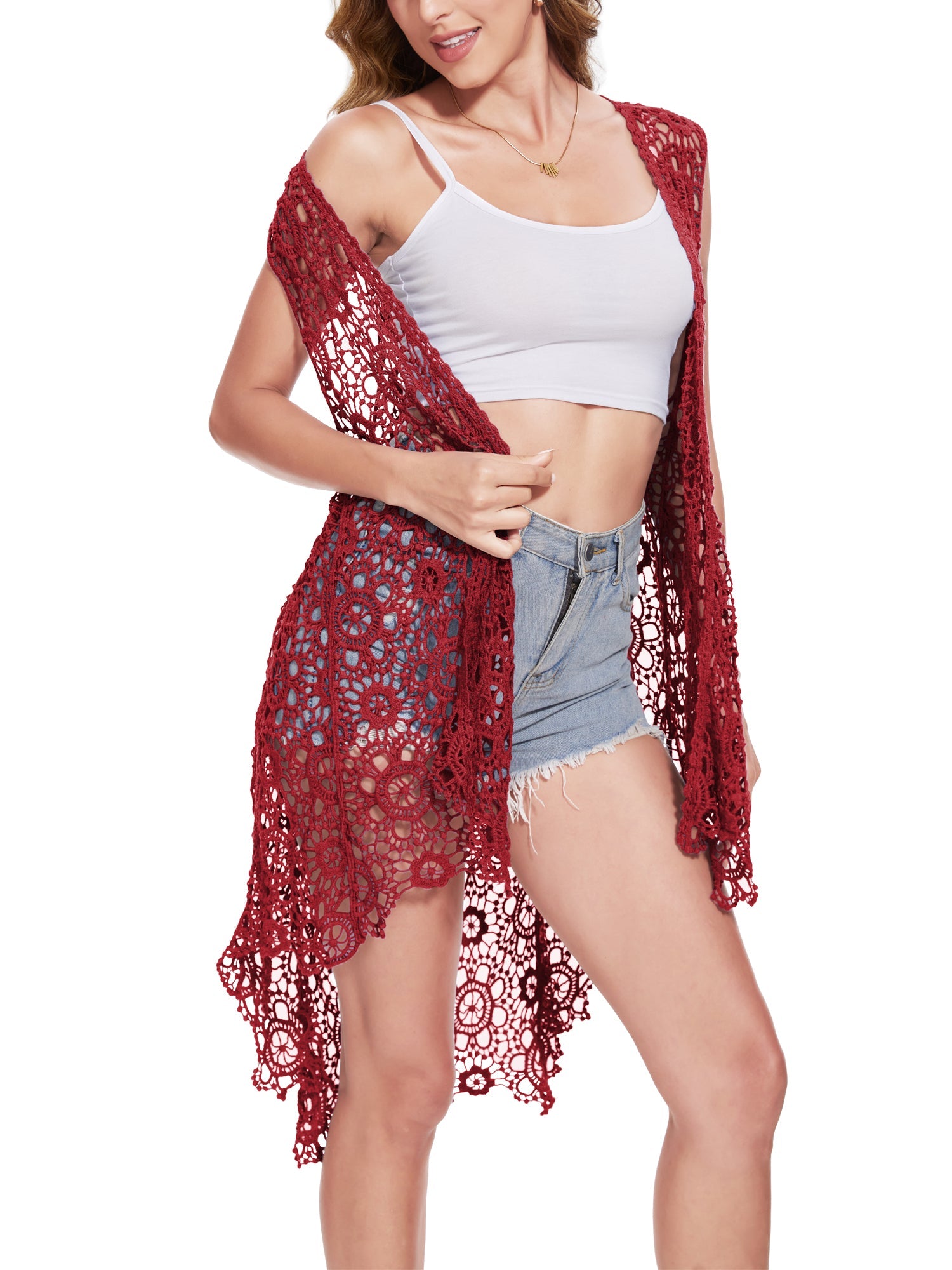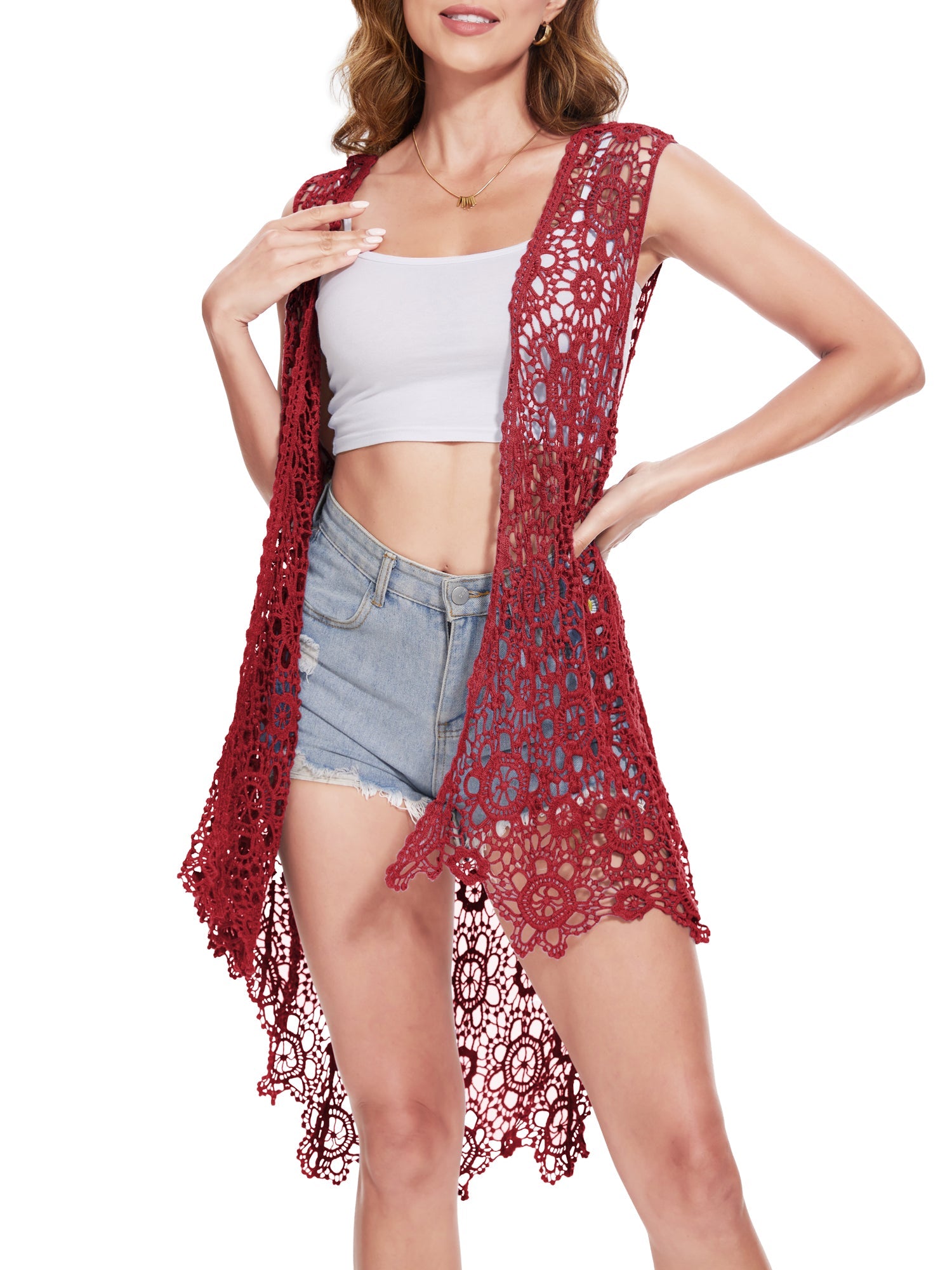 - boho cover up for women / long crochet cardigan / crochet tops for women / lace duster for women / sleeveless cardigans for women / crochet vest / women's hollow out floral lace vest / crochet jacket / women's sleeveless kimono / summer vest for women