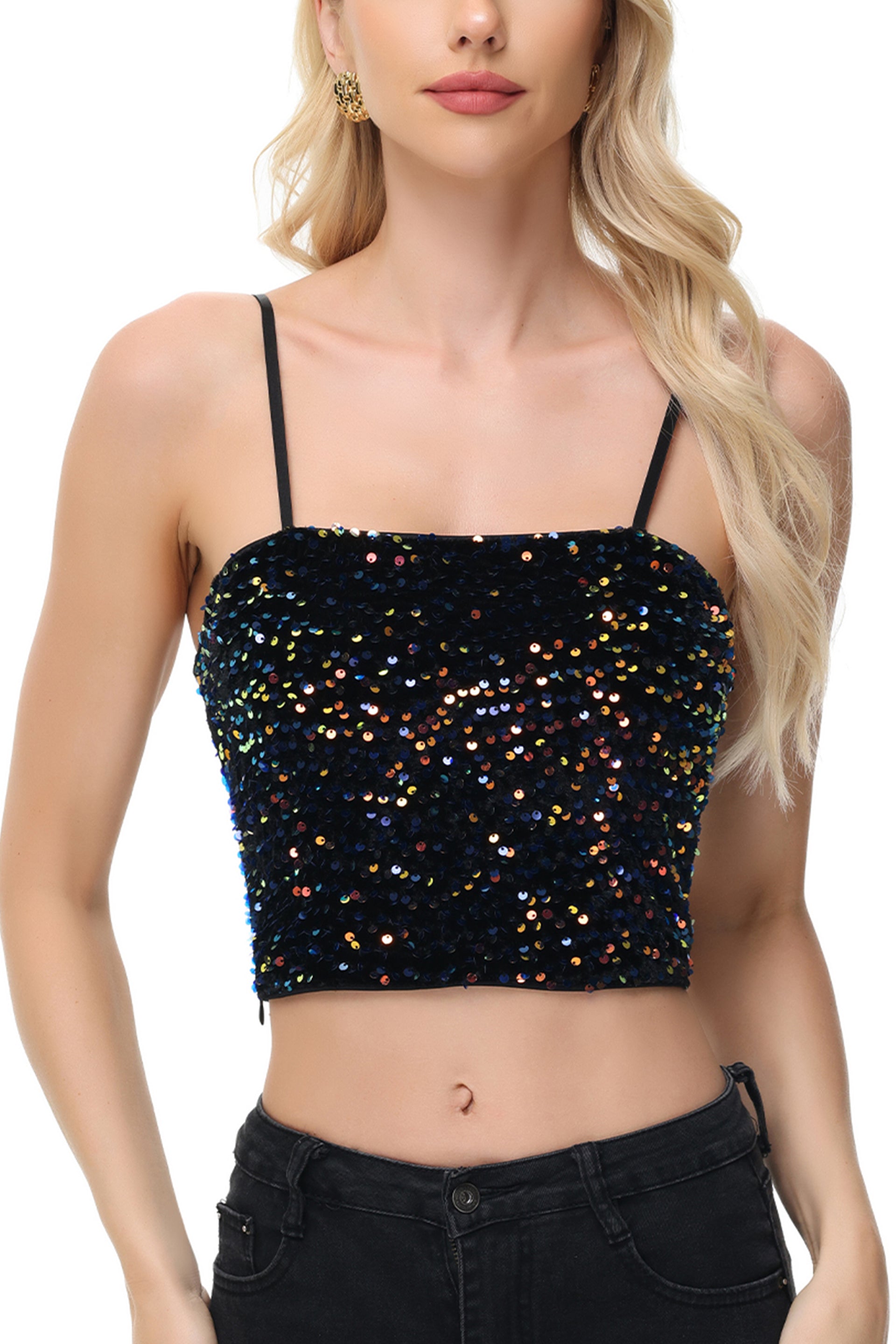 Shimmering Outfit: This shiny camisole top is adorned with dazzling sequins, making it a great choice for adding a touch of sparkle to any outfit, making you the center of attention wherever you go