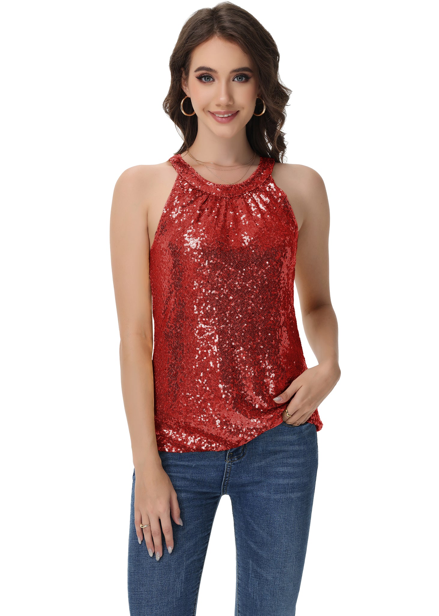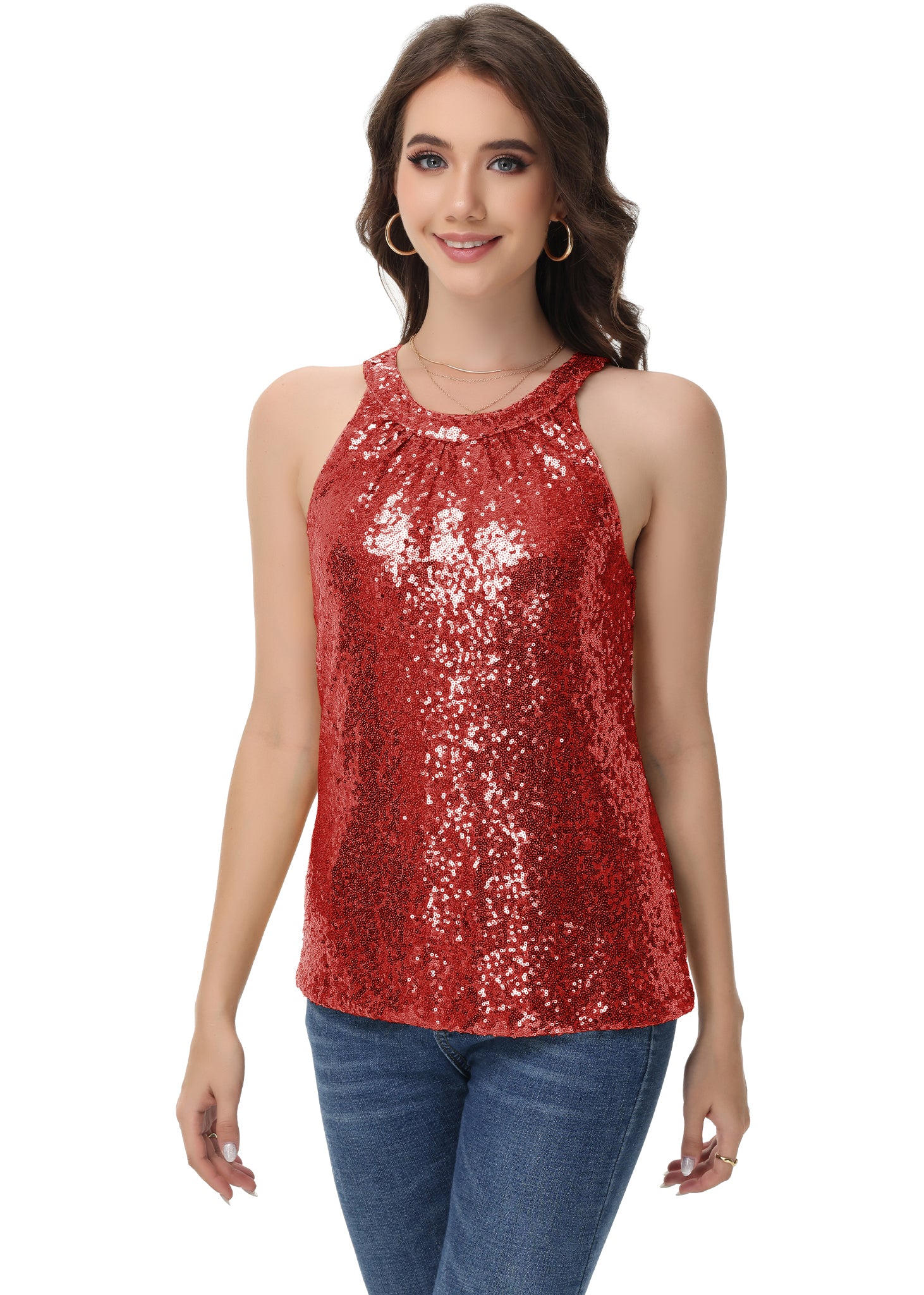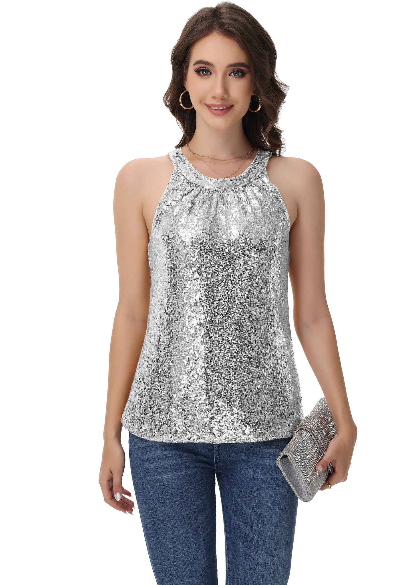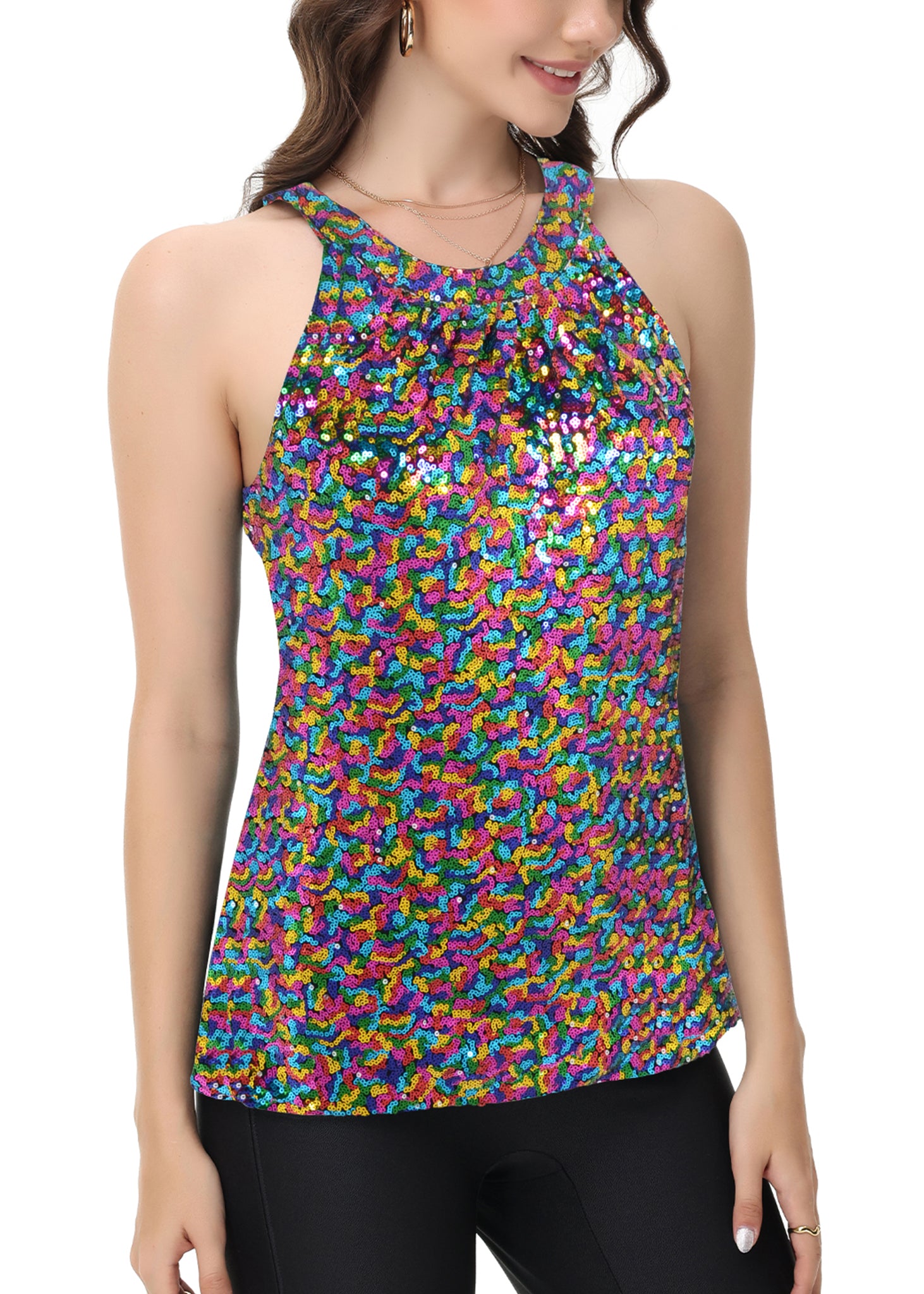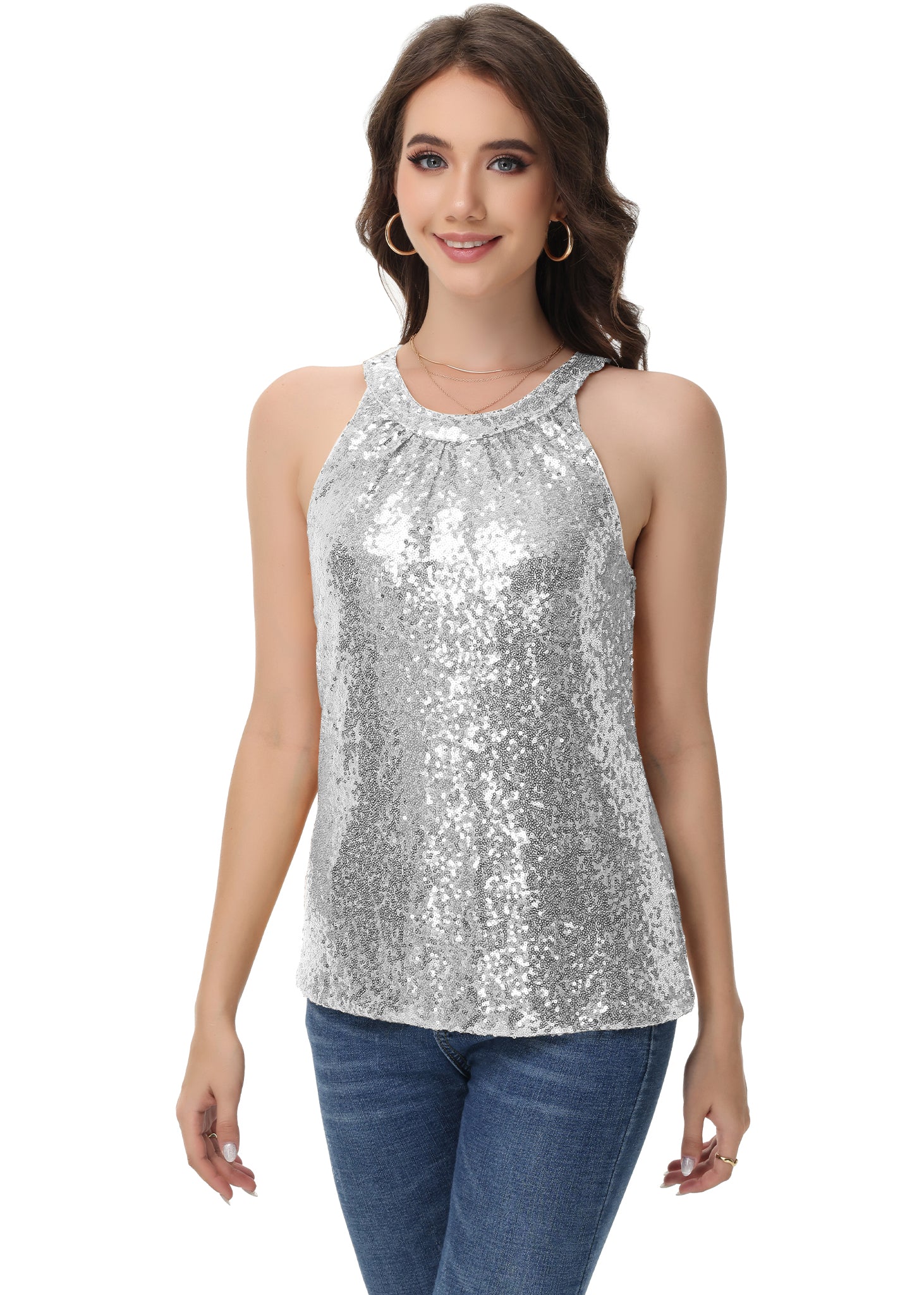 Sequin Halter Tops: Sequin tank tops for women are ideal for parties, clubs, evening events, disco, cocktail, prom, evening, event, christmas, art deco party, makeup costume, homecoming, garden reception, dancing, concert, date, shows, performances, wedding, makeup costume, homecoming or any occasion where you want to add some sparkle to your look