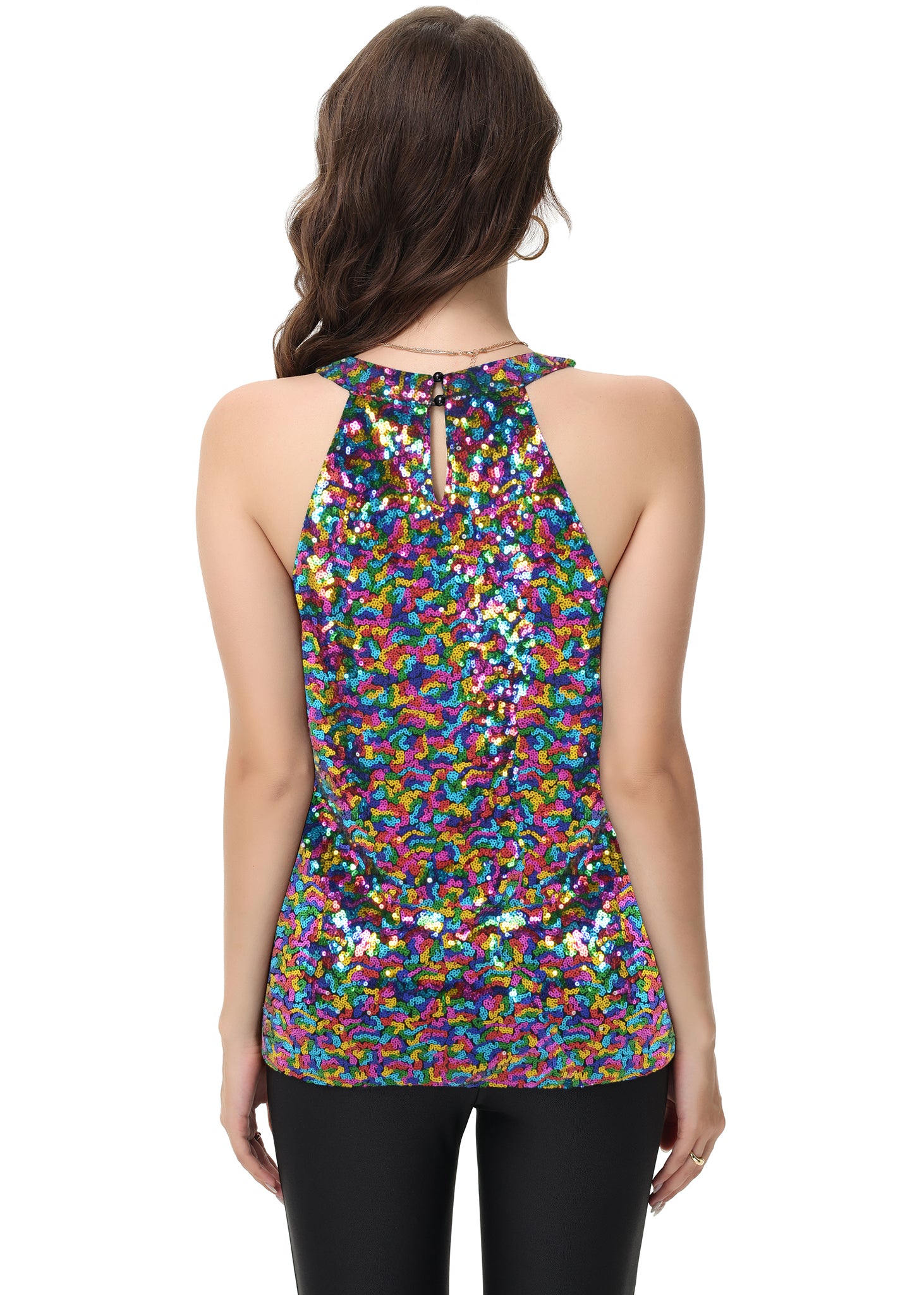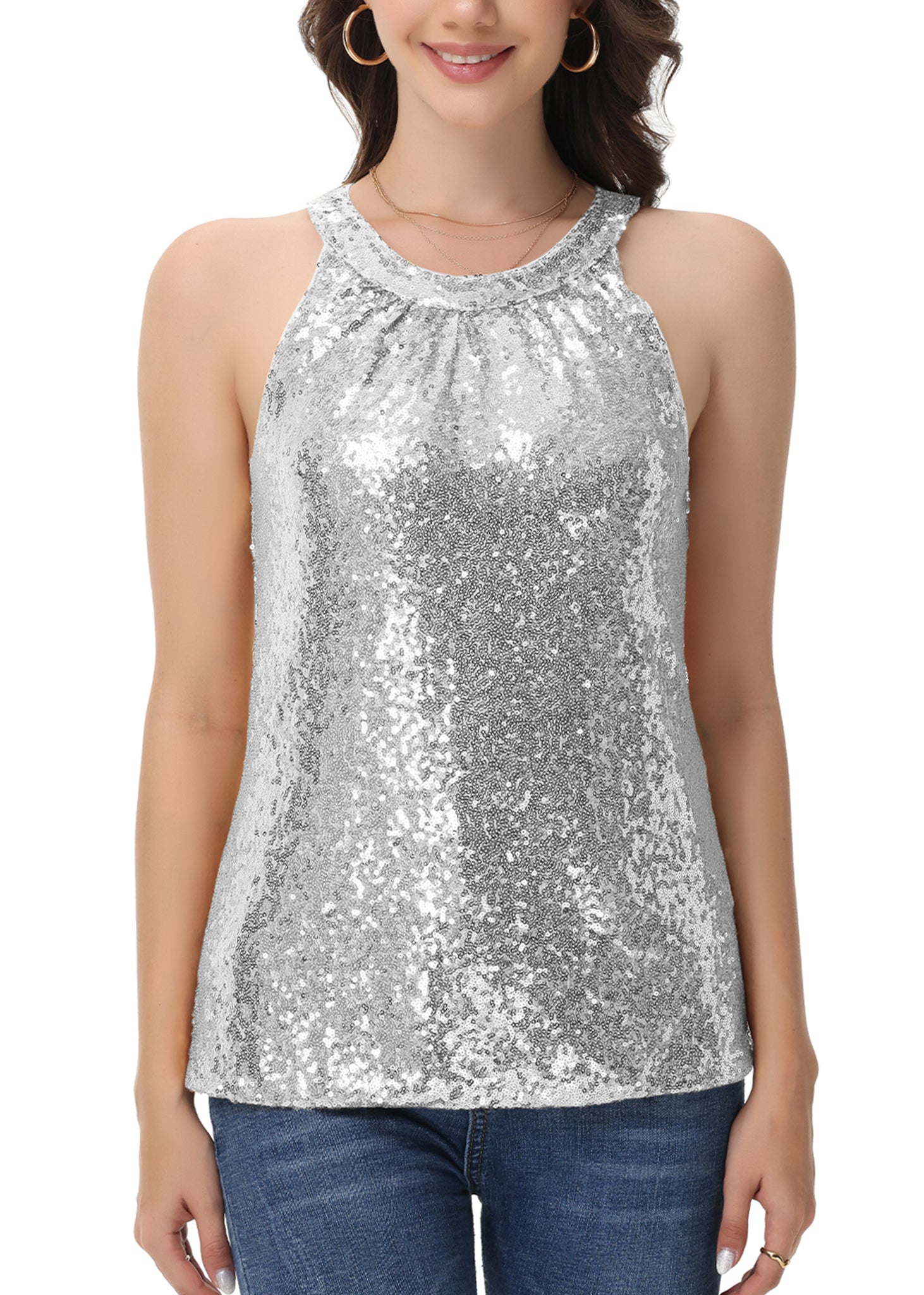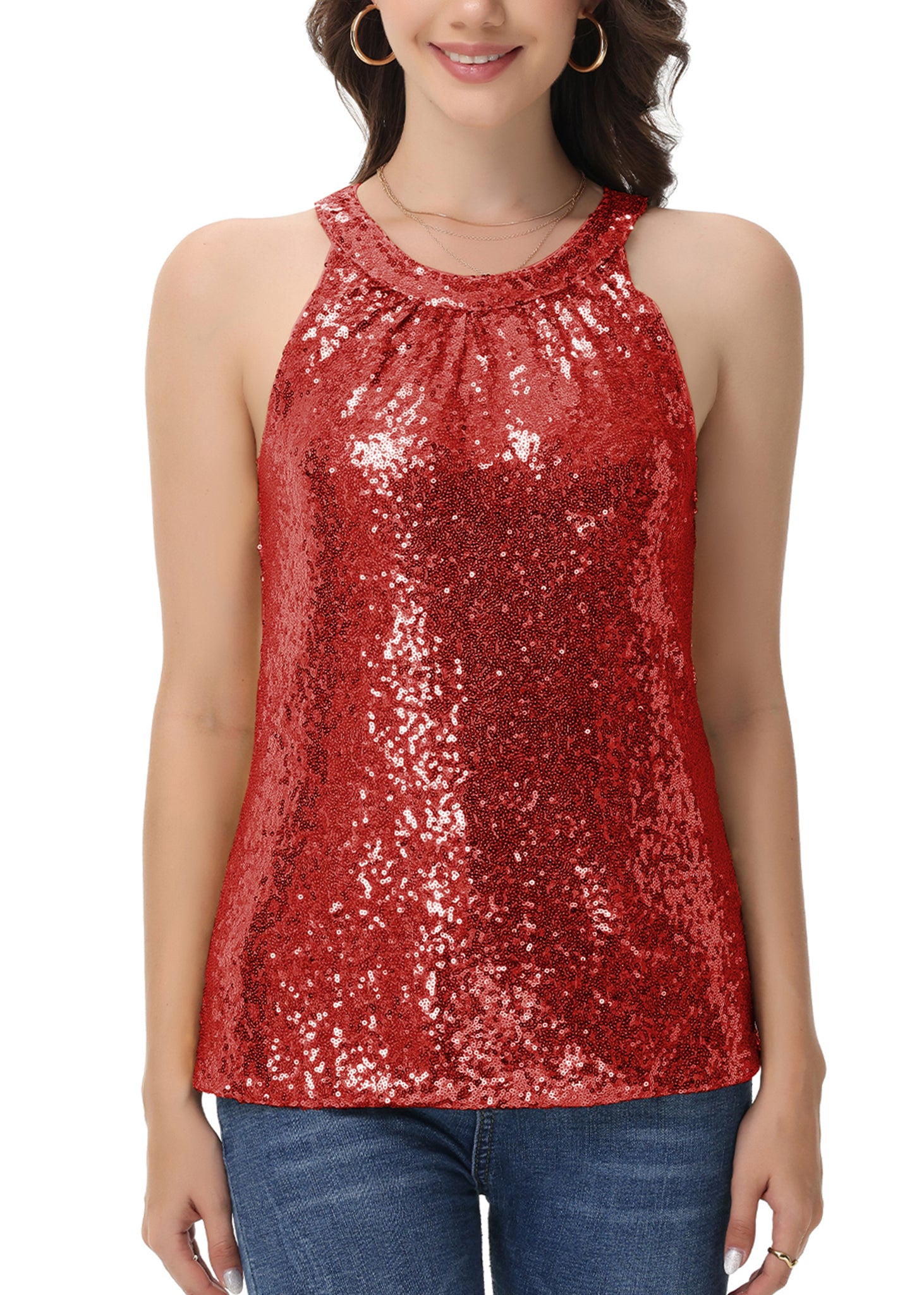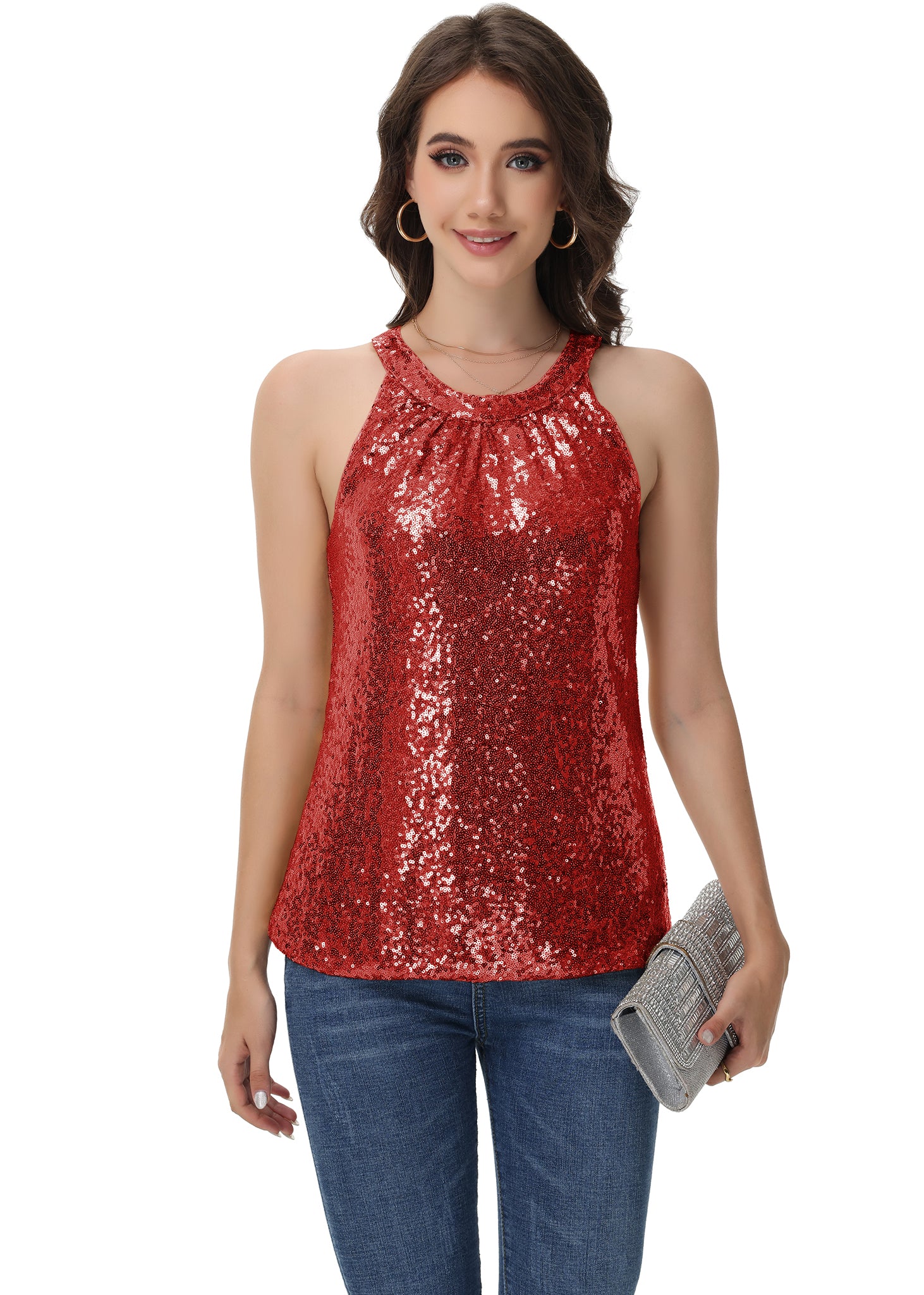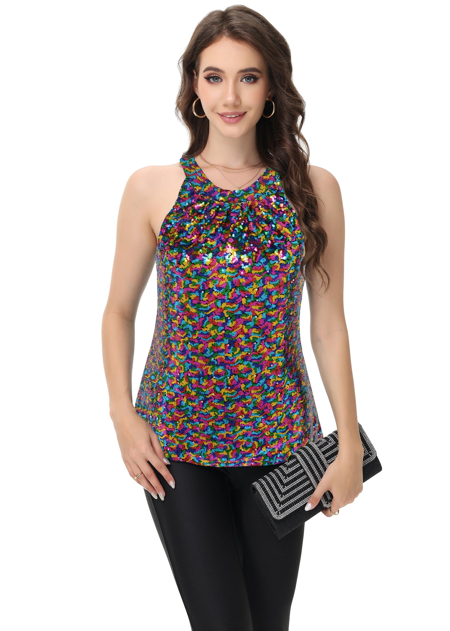Sequin Halter Tops: Sequin tank tops for women are ideal for parties, clubs, evening events, disco, cocktail, prom, evening, event, christmas, art deco party, makeup costume, homecoming, garden reception, dancing, concert, date, shows, performances, wedding, makeup costume, homecoming or any occasion where you want to add some sparkle to your look