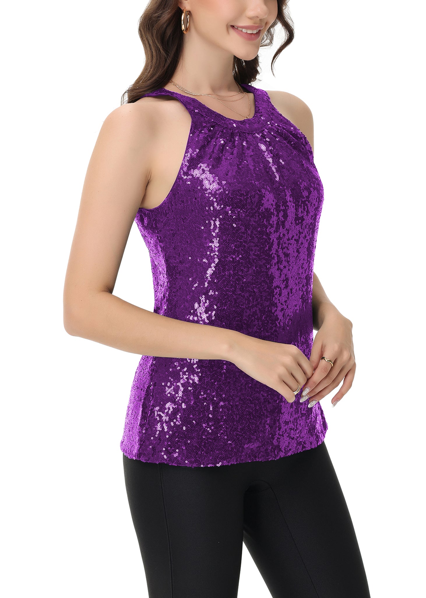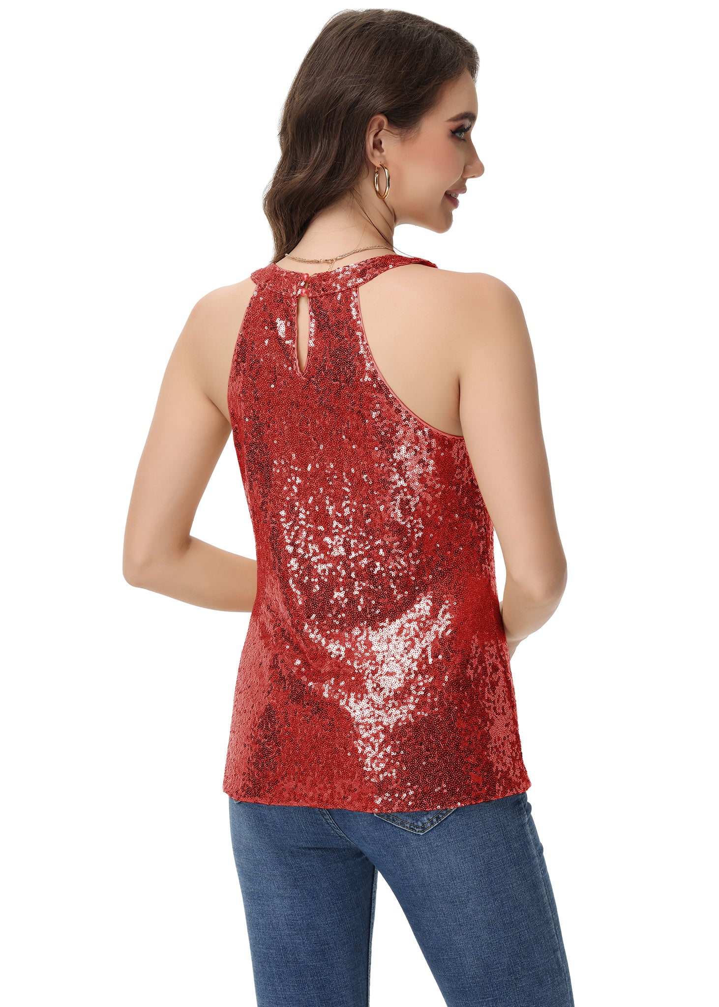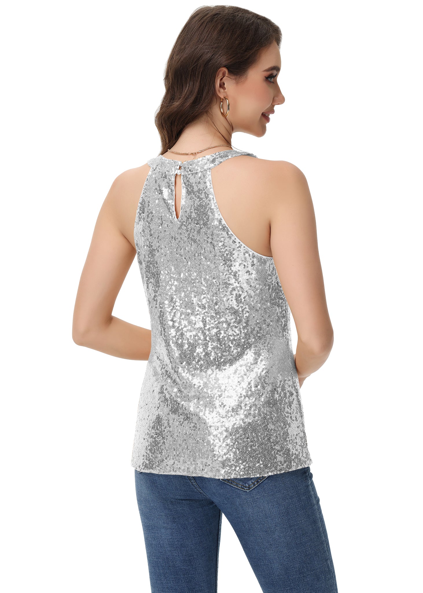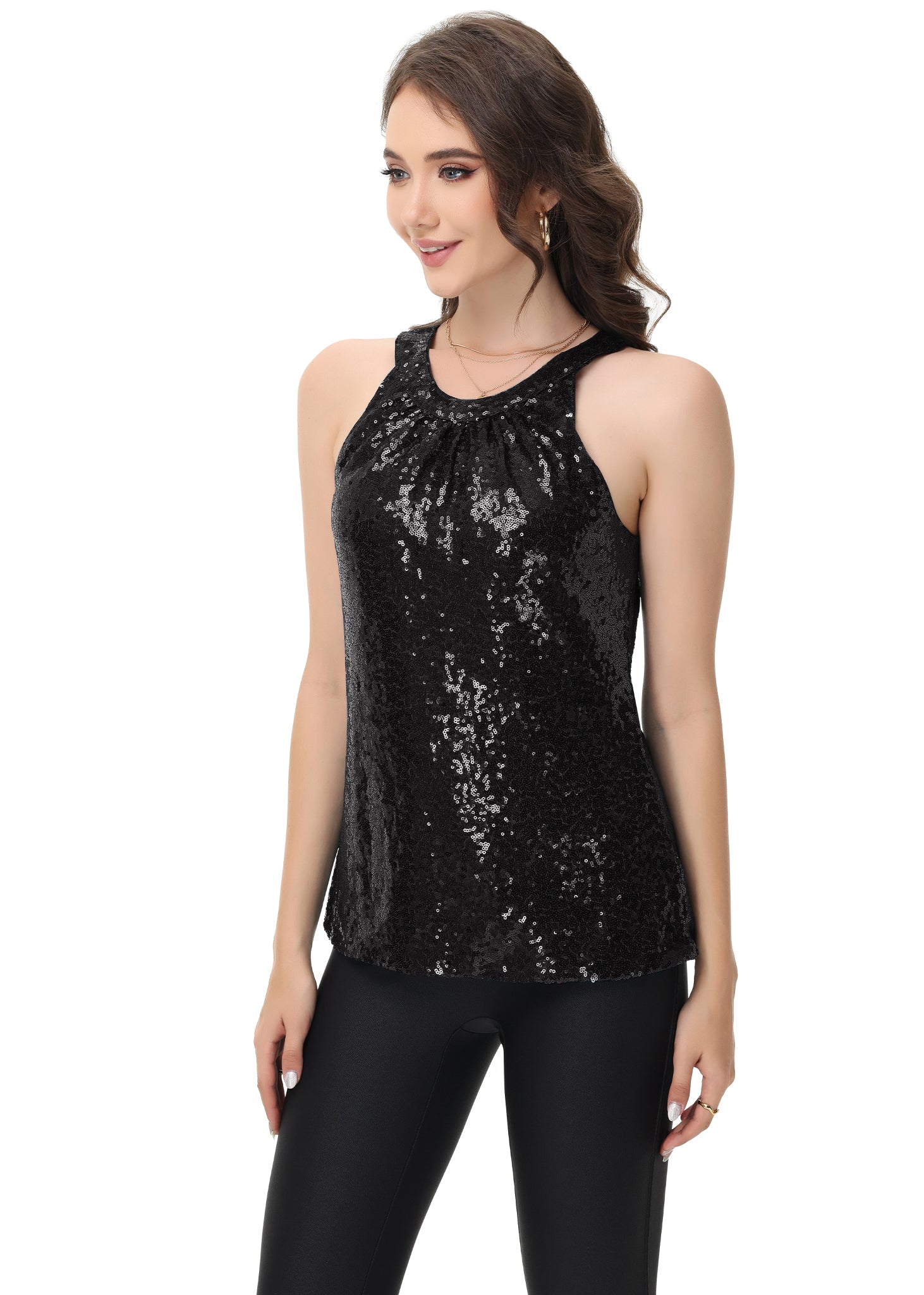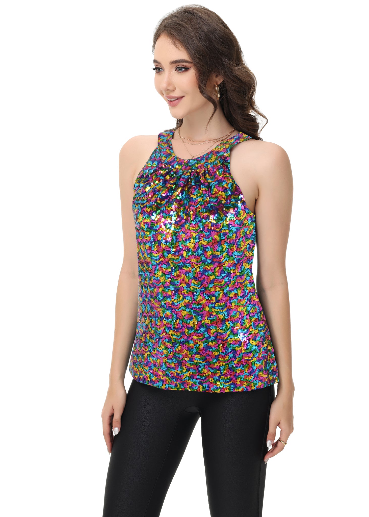 Sequin Halter Tops: Sequin tank tops for women are ideal for parties, clubs, evening events, disco, cocktail, prom, evening, event, christmas, art deco party, makeup costume, homecoming, garden reception, dancing, concert, date, shows, performances, wedding, makeup costume, homecoming or any occasion where you want to add some sparkle to your look