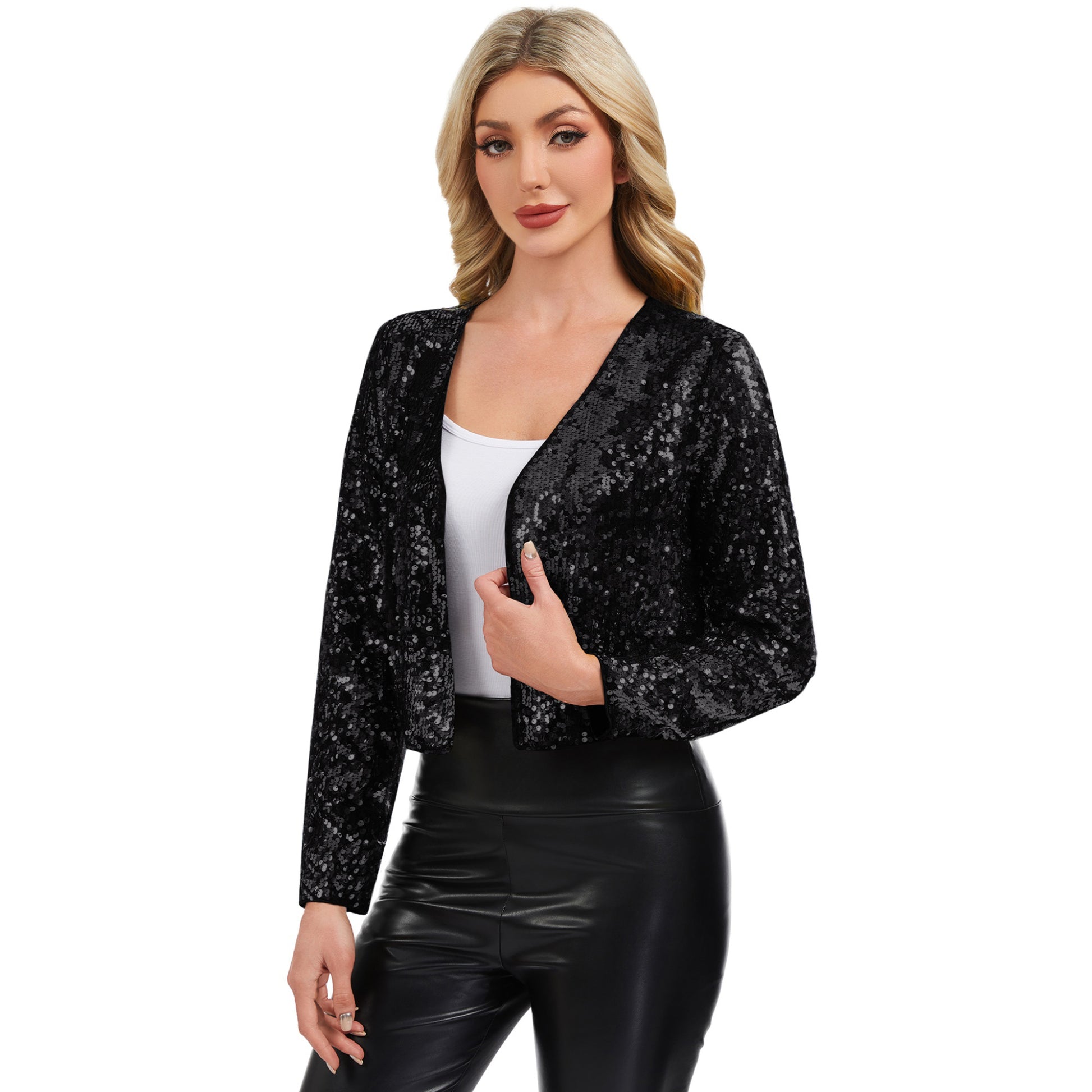 Anna-Kaci Women's Sequin Open Front Cardigan with Long Sleeves and Cropped Fit