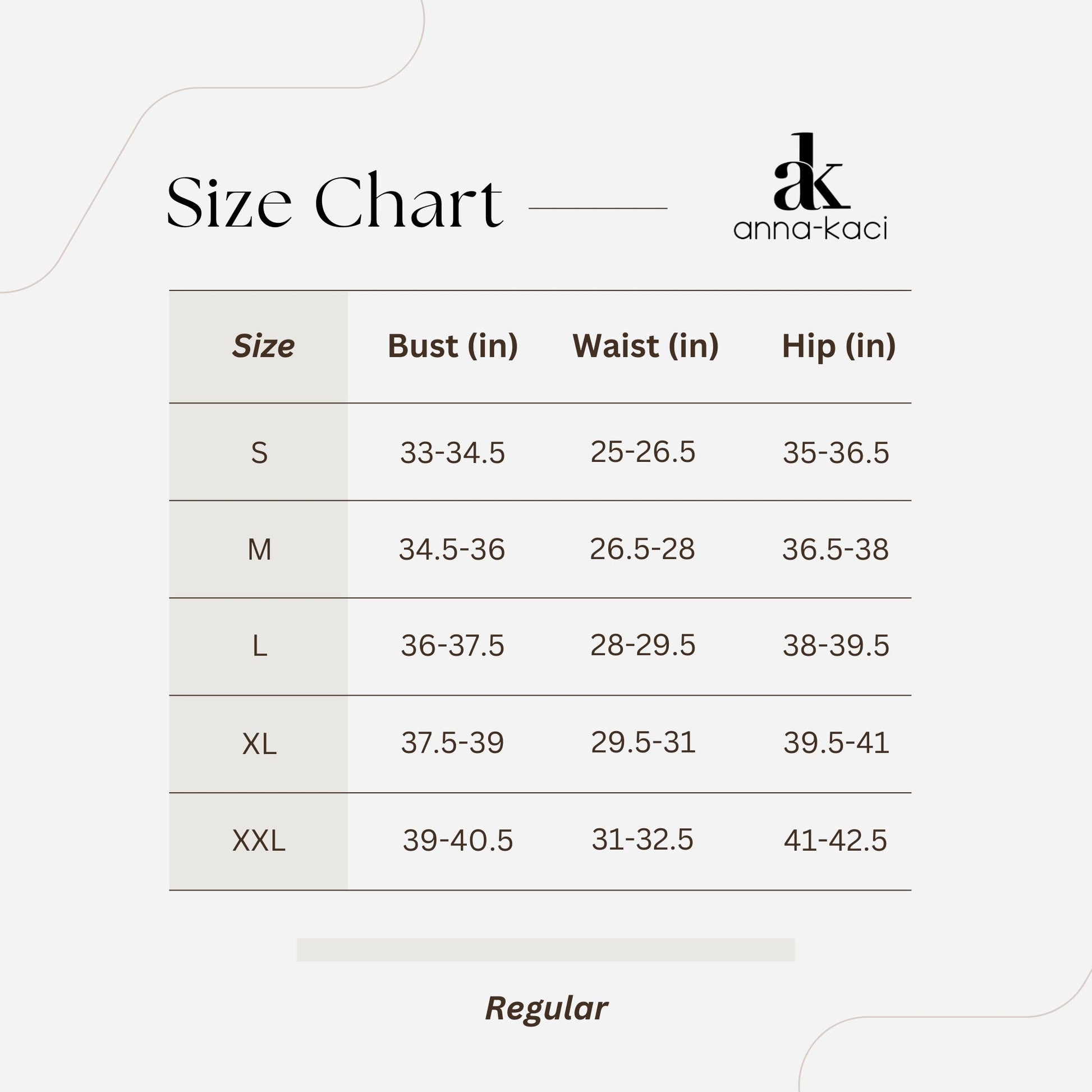 Please refer to the size chart in the images or in the description. Scroll through the images to view the size chart. If you do not see a size chart or measurement guide, please quickly contact us or send us an email at support@anna-kaci.com.