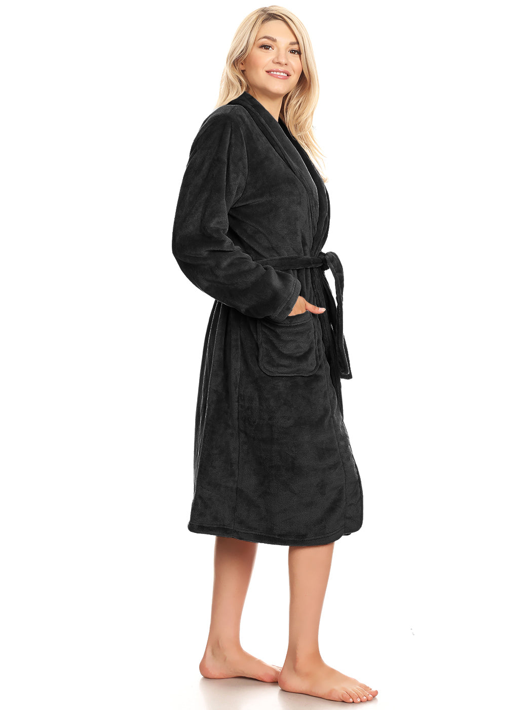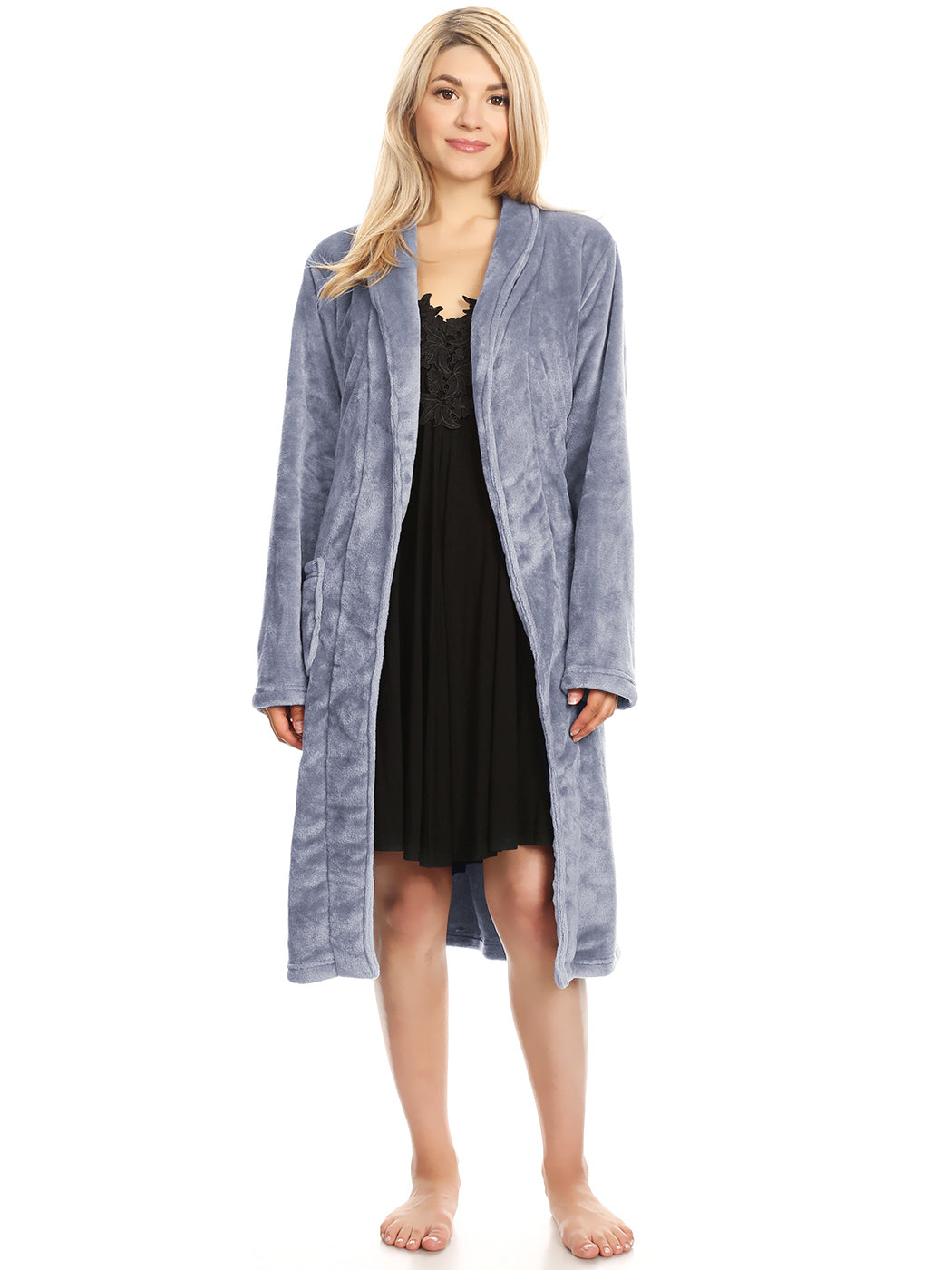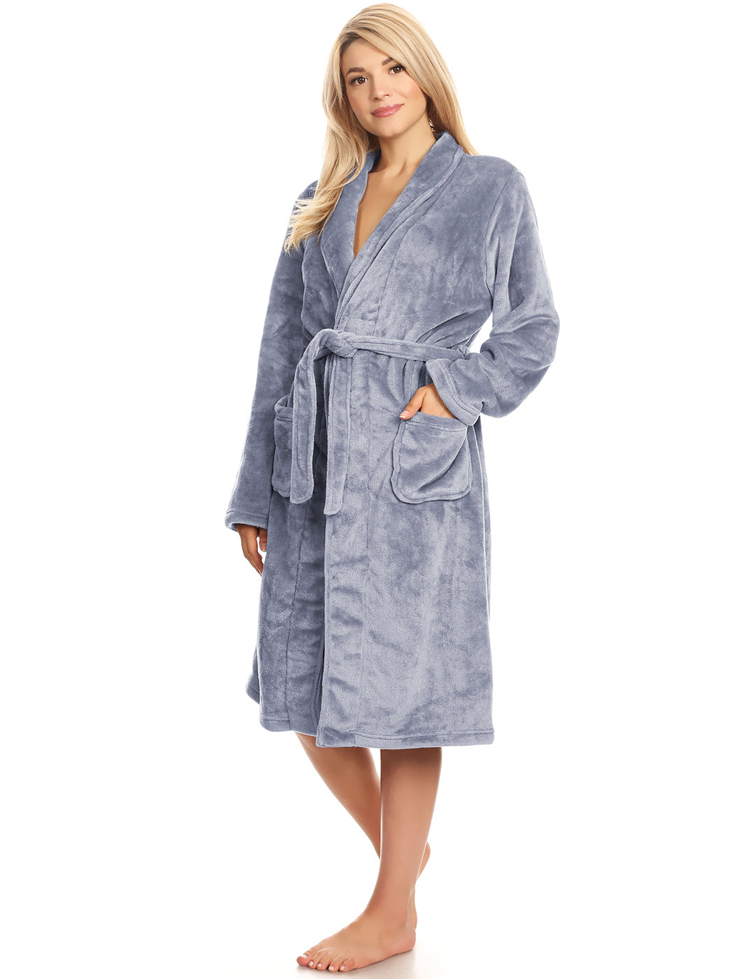 Anna-Kaci Unisex Soft Shawl Collar Long Fleece Bathrobe, Grey, Small/Medium
