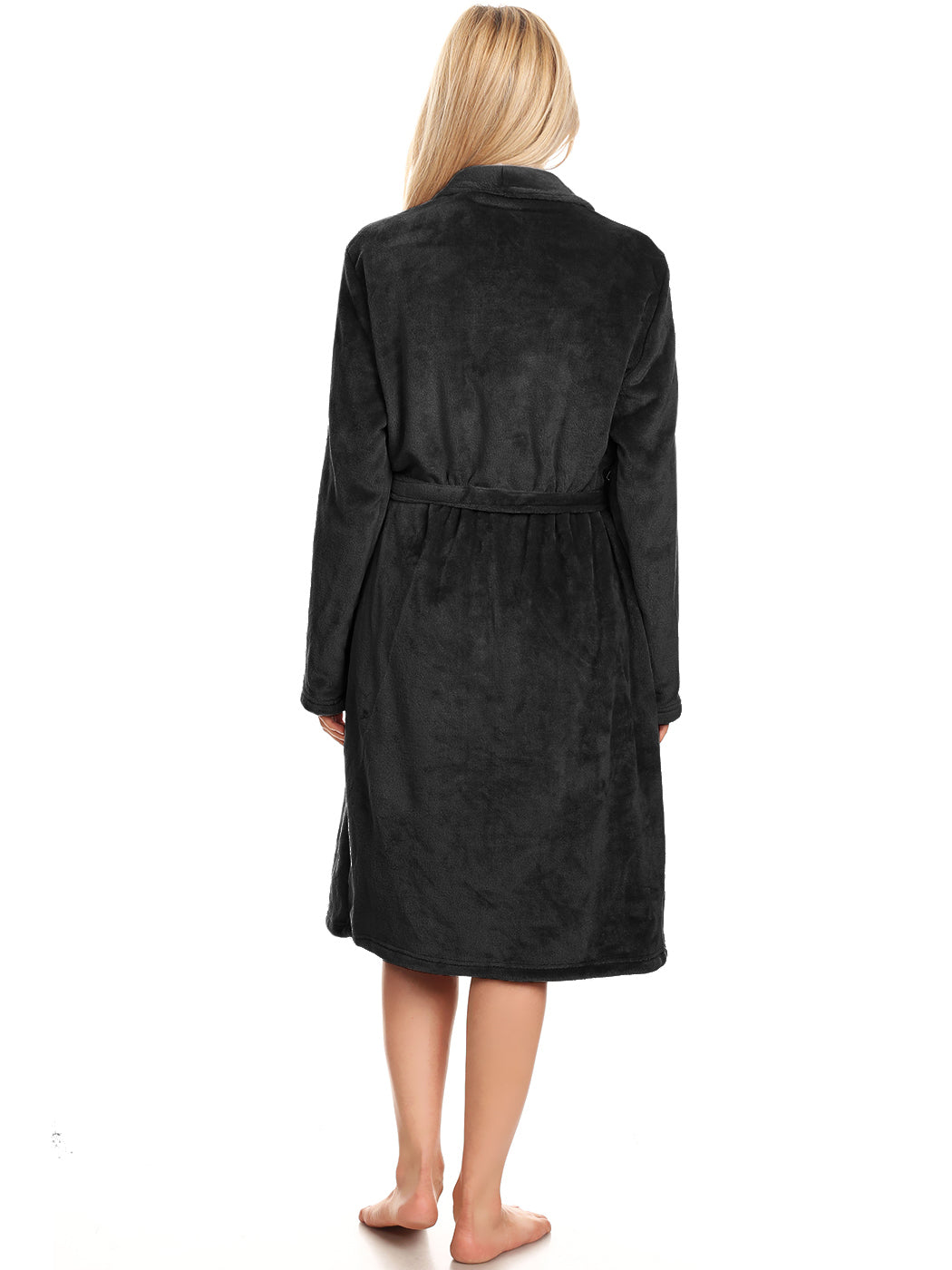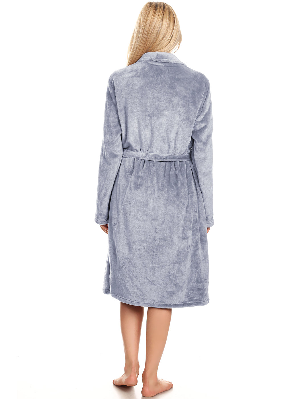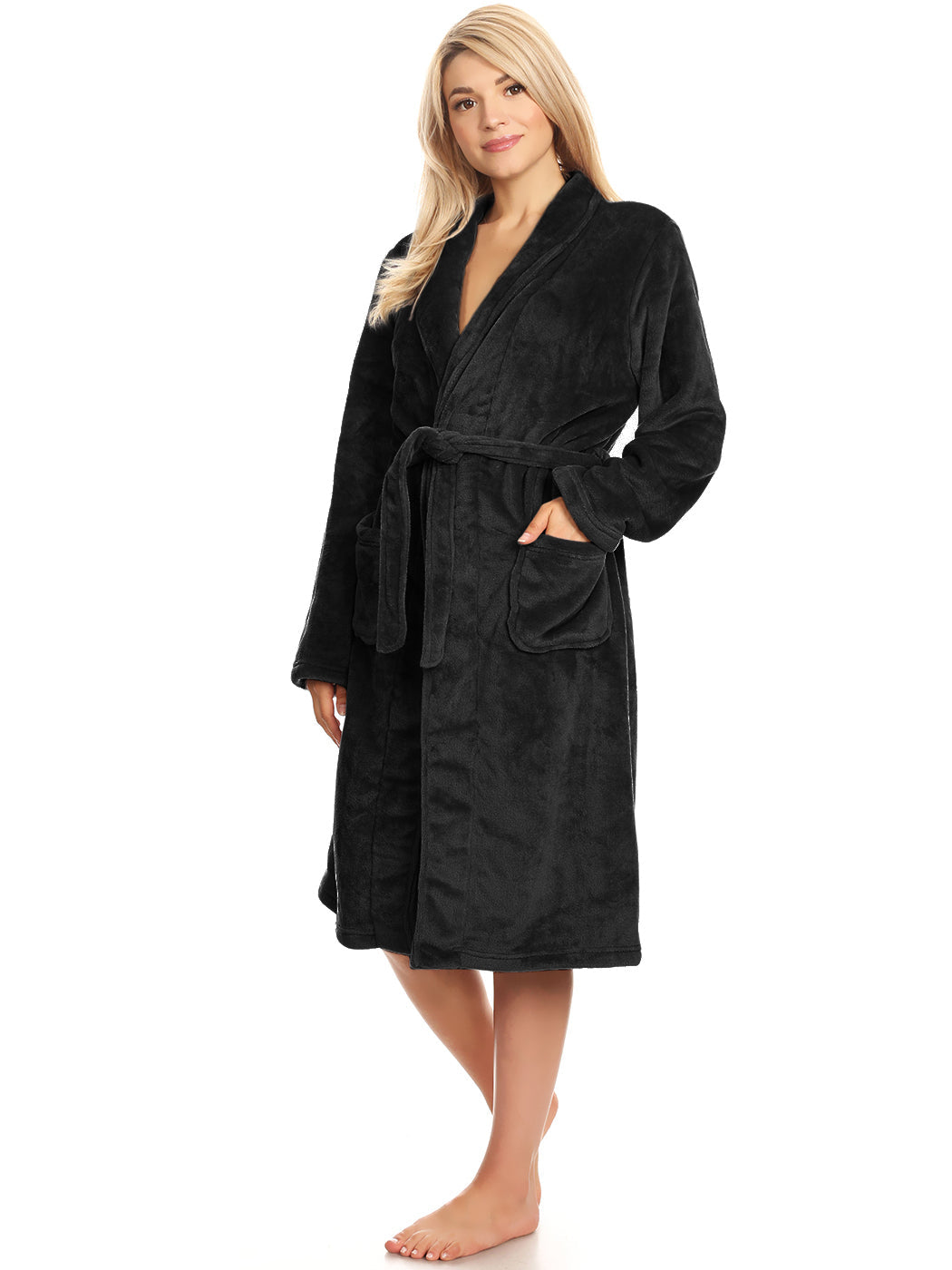Anna-Kaci Unisex Soft Shawl Collar Long Fleece Bathrobe, Grey, Small/Medium